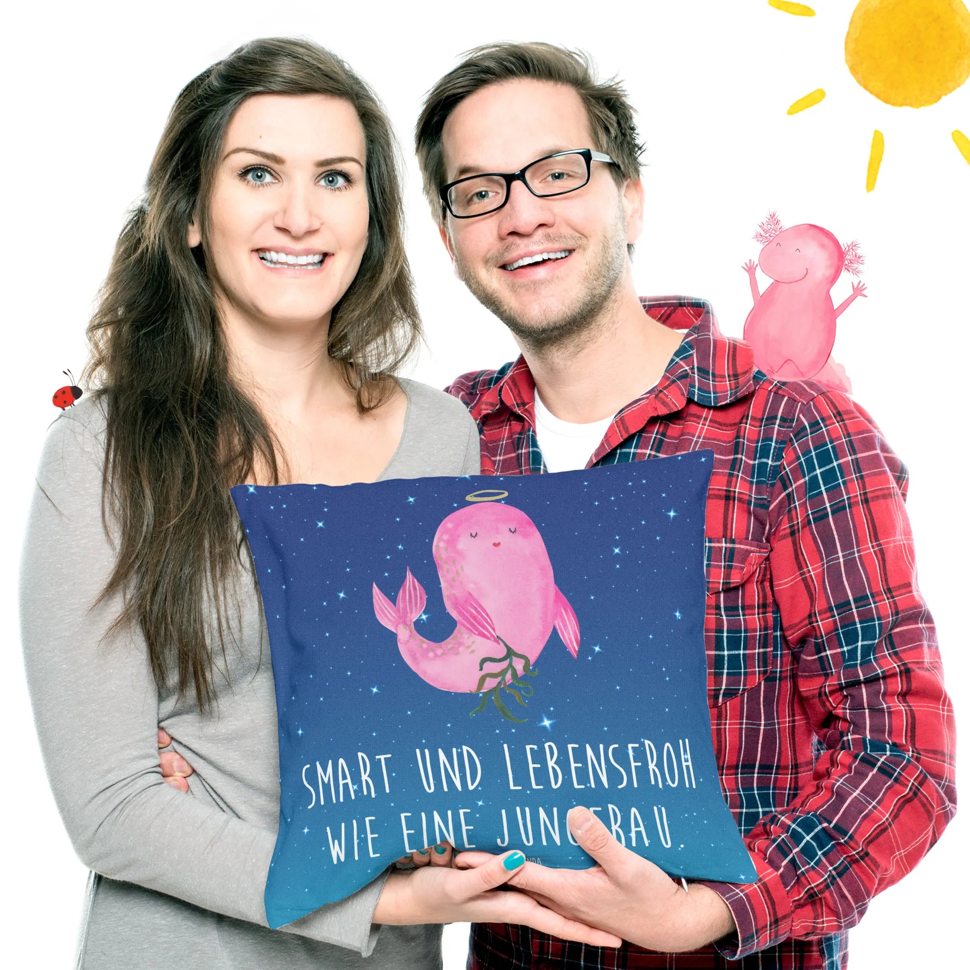 Step into the wonderful world of Virgos with our beautiful motif, showcasing a mermaid that perfectly encapsulates the balance of grace and intelligence that characterizes this sign. The saying, 'Smart und lebensfroh wie eine Jungfrau,' truly reflects the vibrance of those born in August and September. This motif is a fantastic gift choice, ideal for birthdays or simply as a reminder of how remarkable Virgos are in our lives. Each element of this enchanting design radiates positivity and warmth—perfect for anyone who appreciates the characteristics of the Virgo spirit.