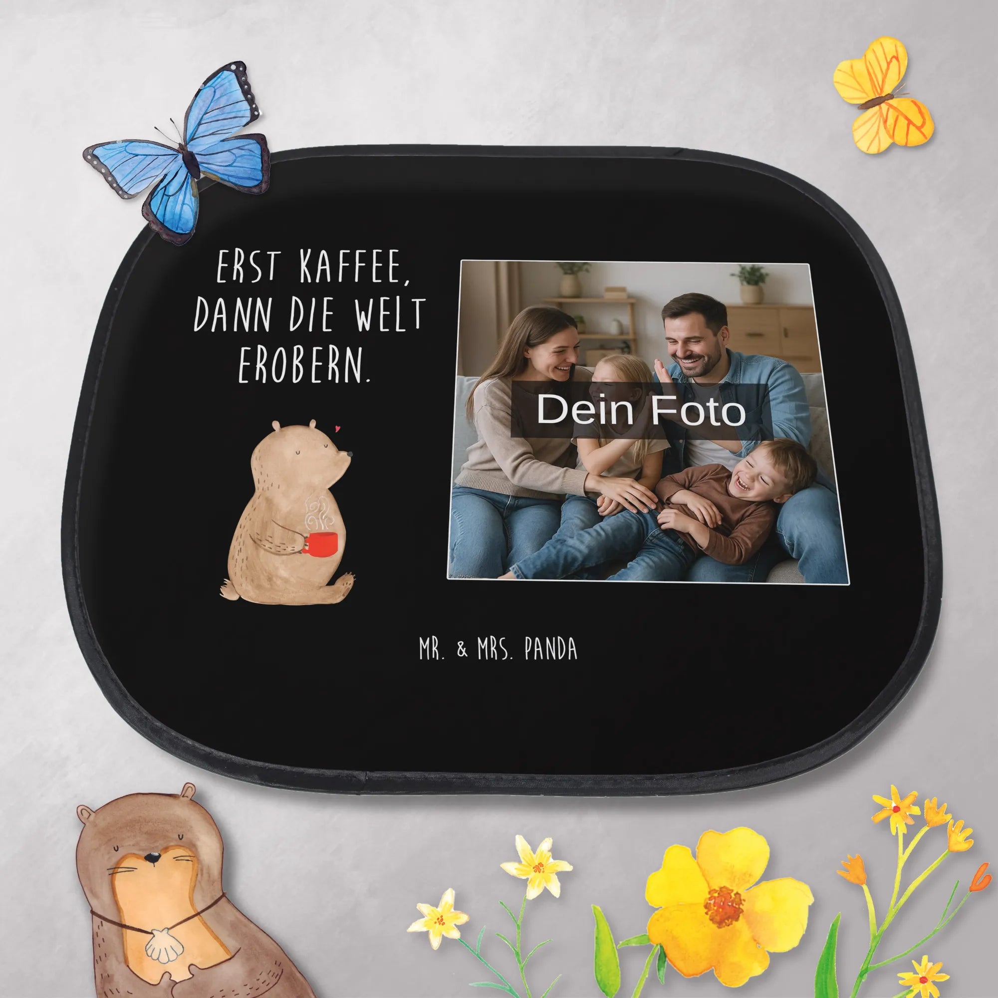 🐼 AUTO SUNSHADE: Upload a photo for a cheerful, protective sunshade with Mr. & Mrs. Panda art.