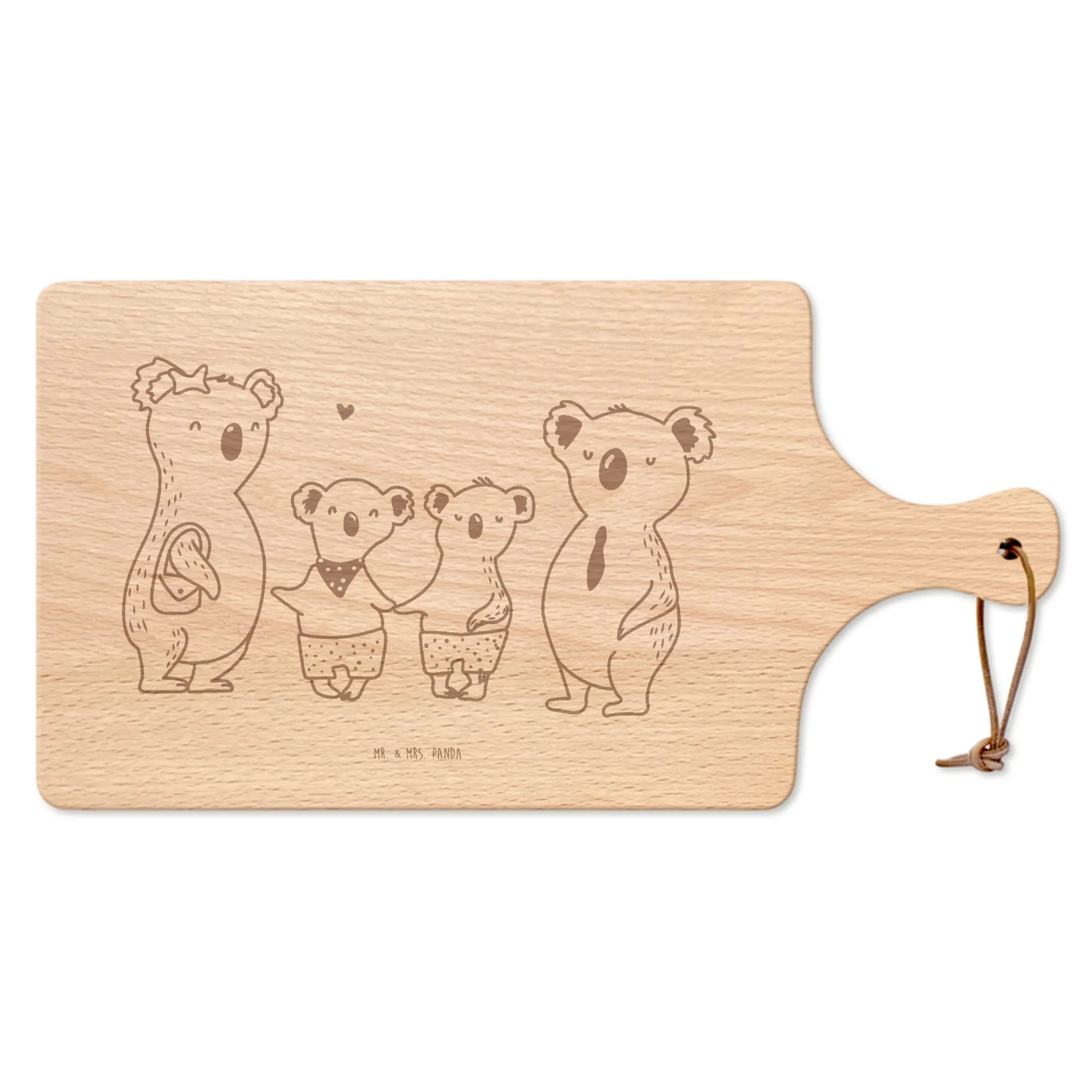 Cutting board with handle Koala family with two kids - with saying