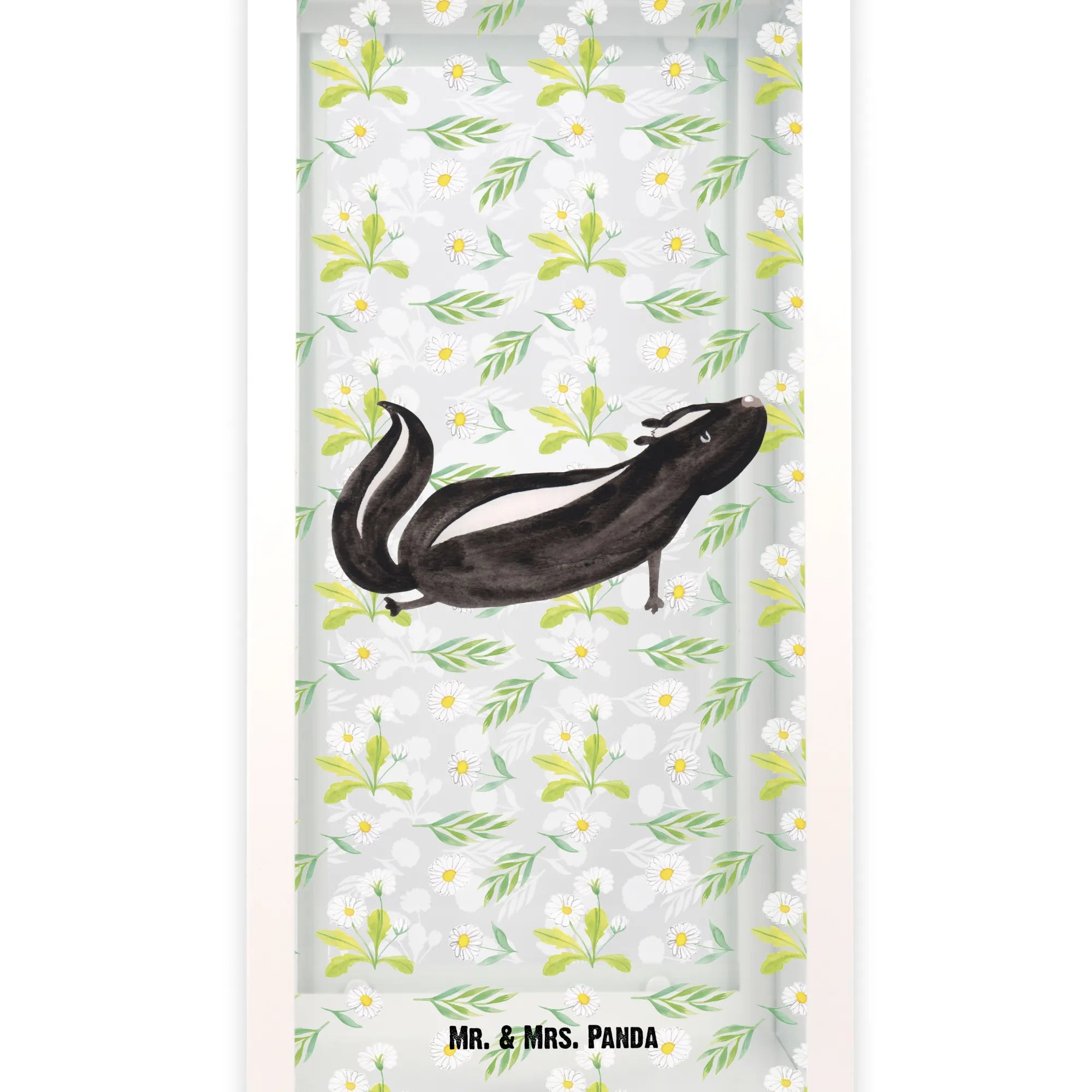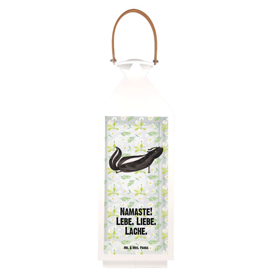 Perfect for garden decoration, it radiates positivity with its eye-catching design, showcasing a cute skunk practicing yoga surrounded by beautiful watercolor details. This unique lantern is perfect for those who appreciate wild animals and the beauty of nature, making it an ideal gift for nature lovers, animal enthusiasts, or anyone who enjoys a clever touch of humor in their decor.