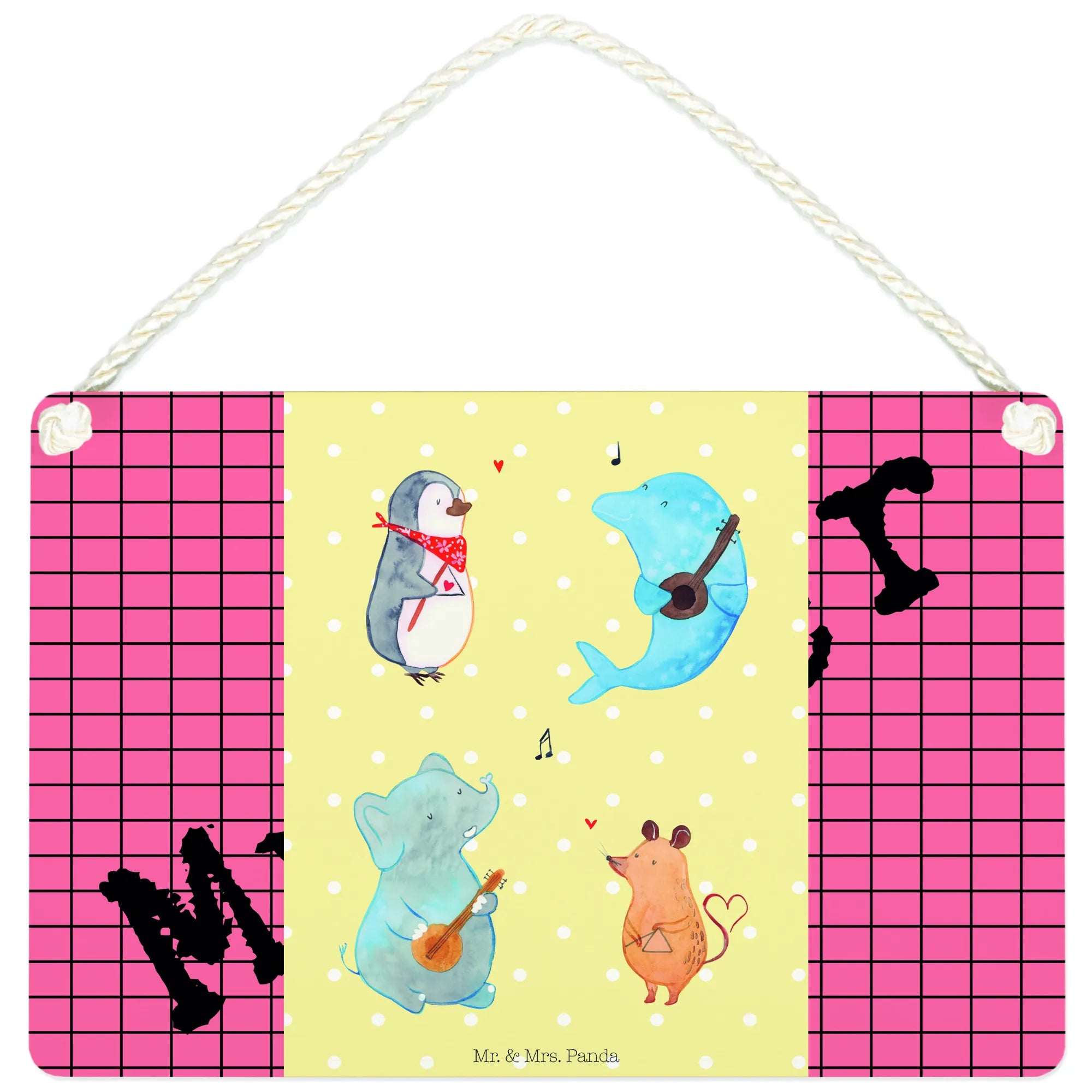 Looking for a delightful gift that brings joy to animal lovers and music enthusiasts alike? Look no further than the charming Decorative Sign featuring the delightful "Big Band" motif from the Small World collection by Mr. & Mrs. Panda! This wonderfully whimsical piece of decor showcases an adorable ensemble of a penguin, a mouse, a dolphin, and an elephant, all donned in their jazzy outfits, ready to play their hearts out and fill your space with rhythm and cheer.