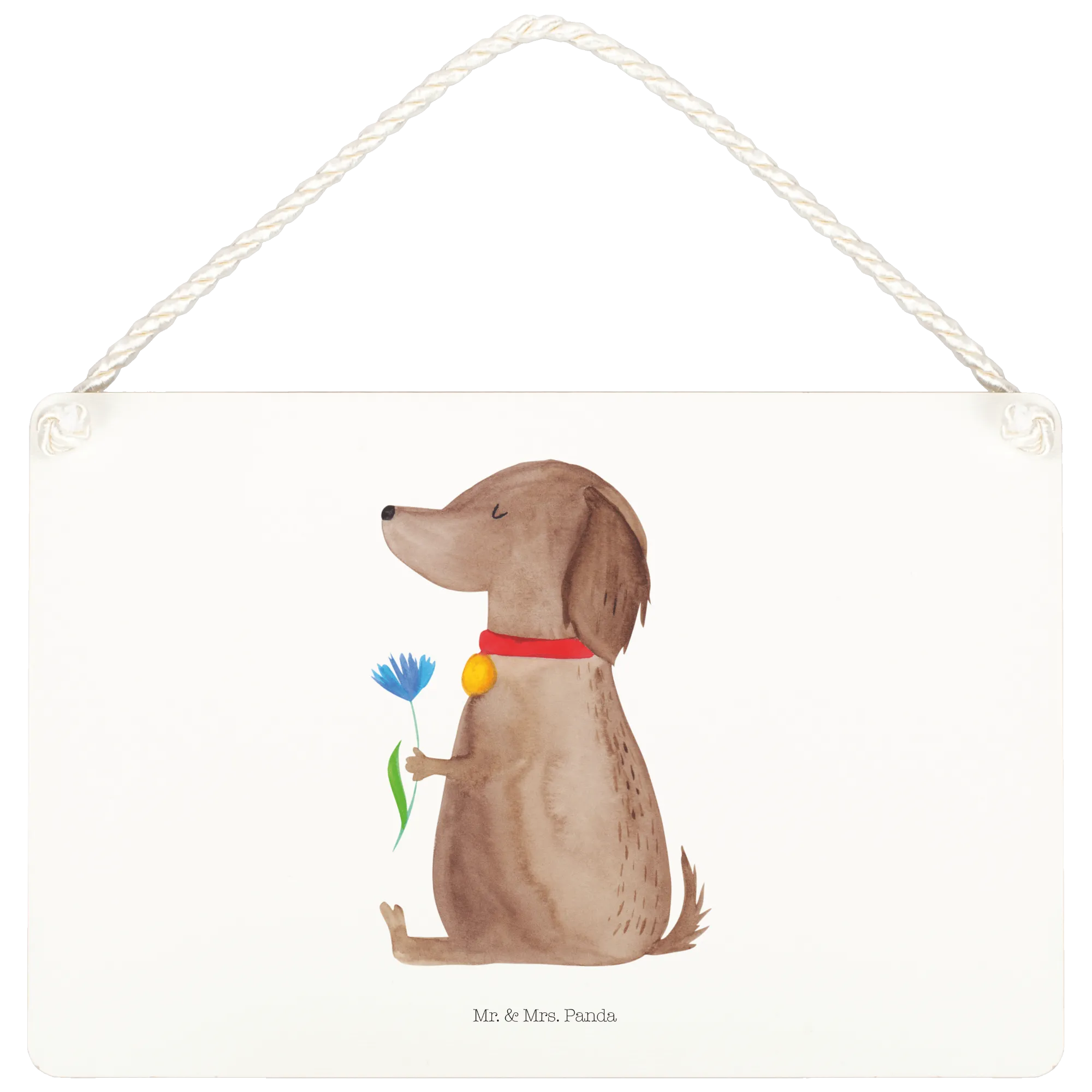 Decorative sign Dog flower - DIN A5 - with saying - White