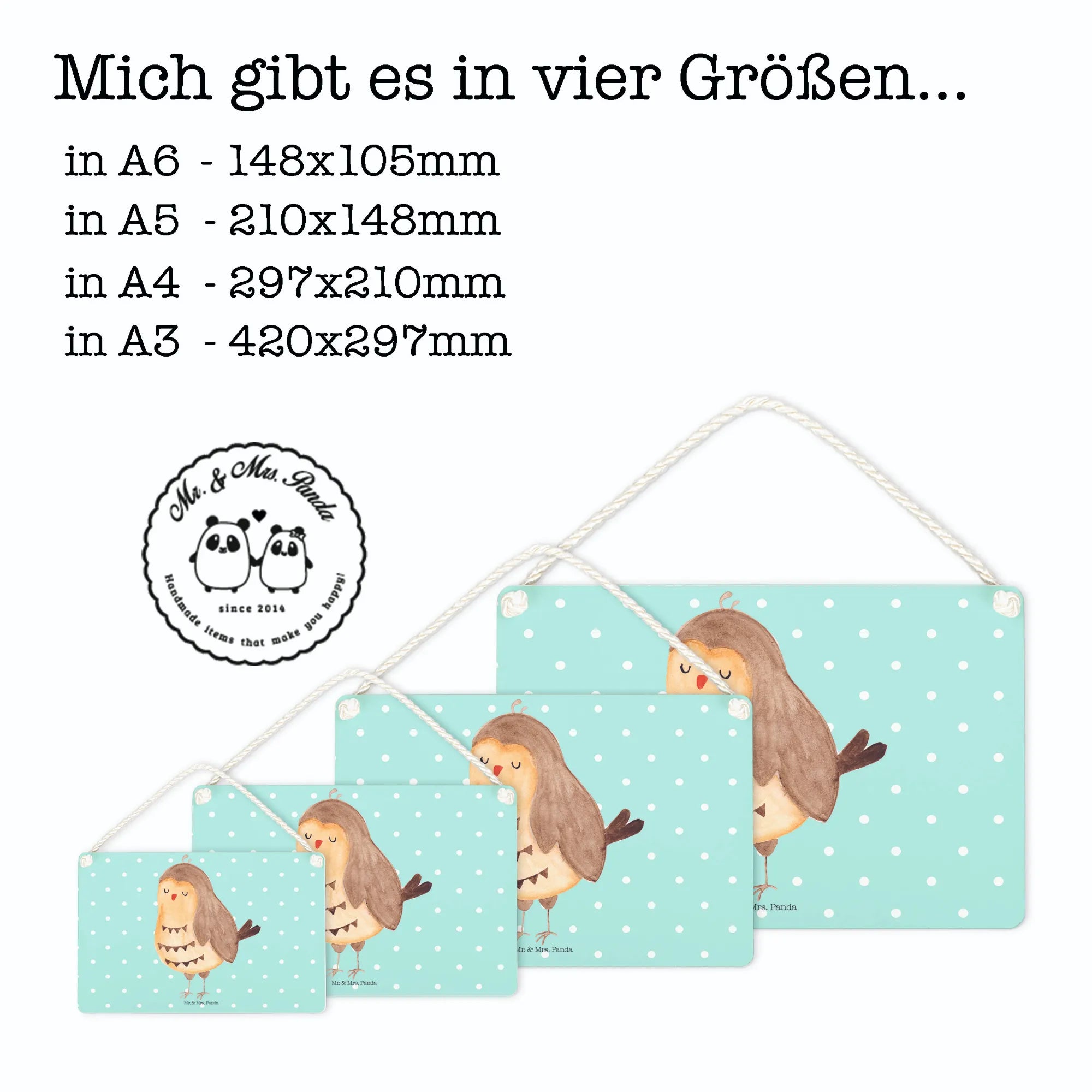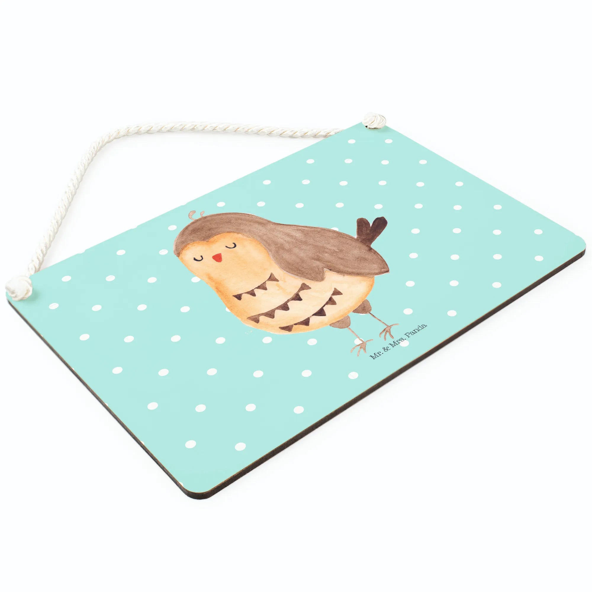 Decorative sign Owl Satisfied - with saying - Turquoise Pastel