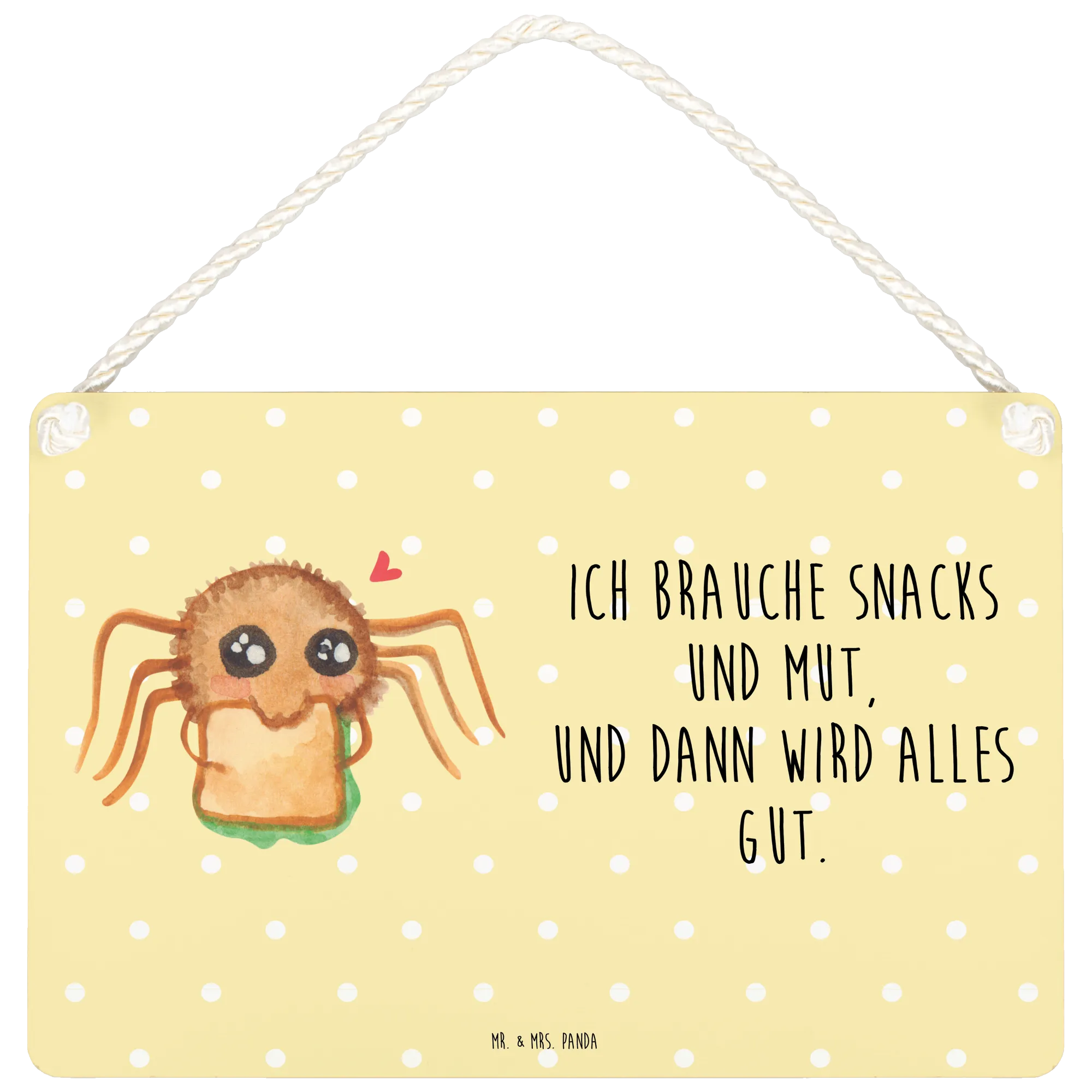If you're searching for that perfect gift that radiates warmth, happiness, and a sprinkle of humor, look no further than our enchanting Decorative Sign featuring the adorable "Spider Agathe Sandwich" from the beloved Mr. & Mrs. Panda collection!