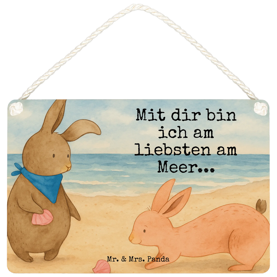 Deko Schild Hasen Muschel Design - DIN A6 - mit Spruch