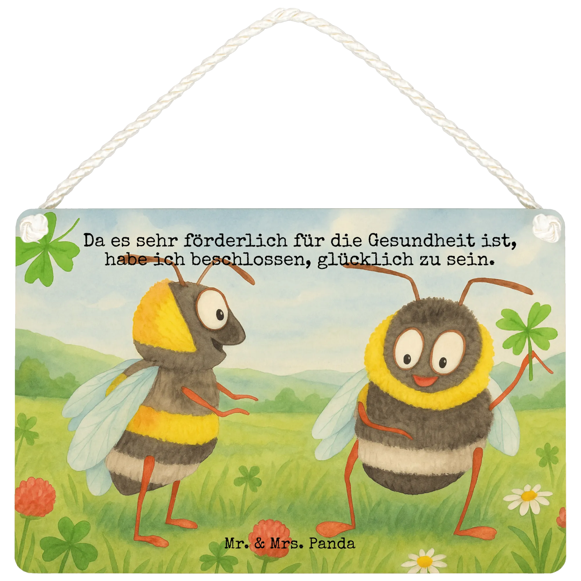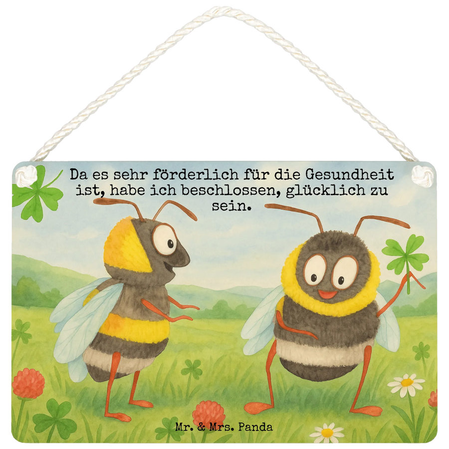 Glücklich werden mit Mr. & Mrs. Panda | Hummeln & Kleeblatt - Spruch fröhlich & Biene Deko