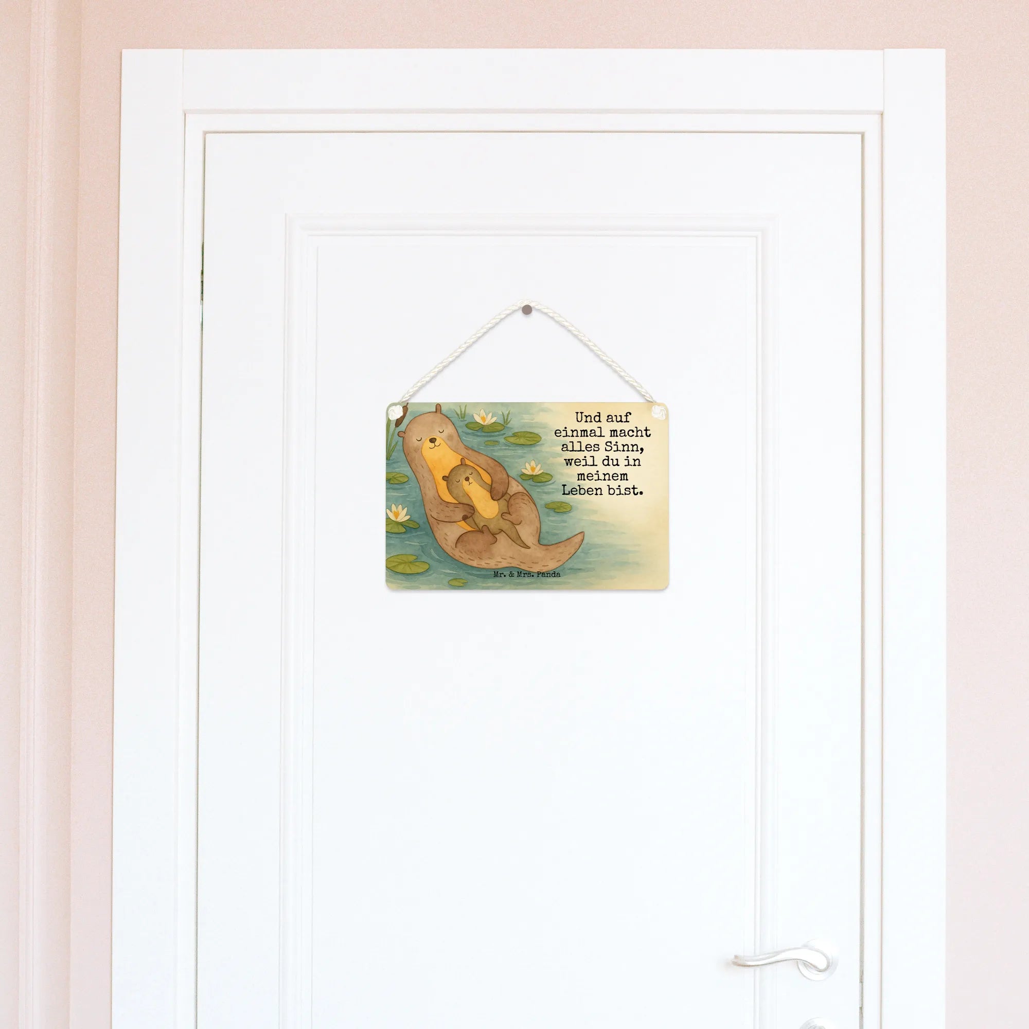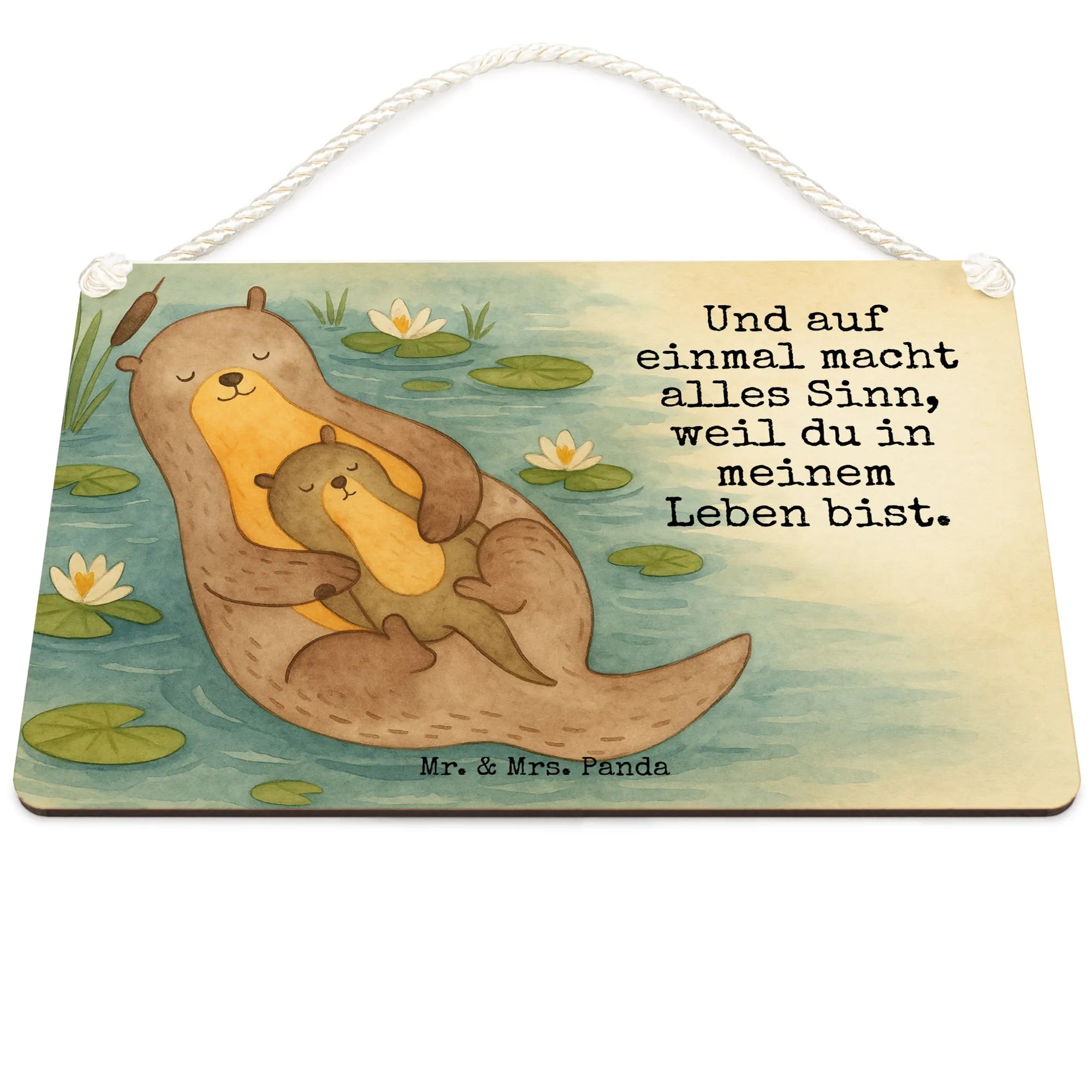Das beruhigende Bild eines Otters, der liebevoll sein Kind in den Armen hält, begleitet von dem Spruch 'Und auf einmal macht alles Sinn, weil du in meinem Leben bist', verkörpert die Tiefe elterlicher Liebe. Dieses einfühlsame Motiv von Mr. & Mrs. Panda berührt unsere Herzen, indem es uns daran erinnert, wie wichtig es ist, diejenigen zu schätzen, die unserem Leben Bedeutung verleihen. Es ist eine Hommage an die Schönheit der Natur und die unzerbrechlichen Bande der Familie, und es inspiriert uns, die Kraft der Liebe in unserem eigenen Leben anzuerkennen und zu feiern.