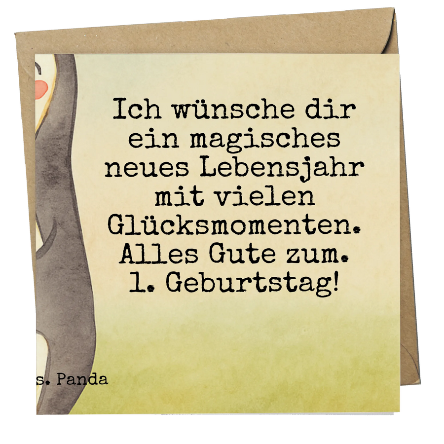 Here's to our adorable party-loving penguin, dressed up in a festive hat and holding a joyous balloon! It’s here to celebrate the 1st birthday, a milestone wrapped in love and laughter. Our sweet slogan, 'Ich wünsche dir ein magisches neues Lebensjahr mit vielen Glücksmomenten. Alles Gute zum 1. Geburtstag!' invites everyone to cherish every magical moment that the next year holds. This motif captures the essence of such a special occasion, reminding us of the joy and excitement that birthdays bring. It transforms a simple birthday gift or party decoration into a heartwarming reminder that every moment is worth celebrating. So let’s raise our balloons and toast to a year bursting with adventure, happiness, and countless smiles!