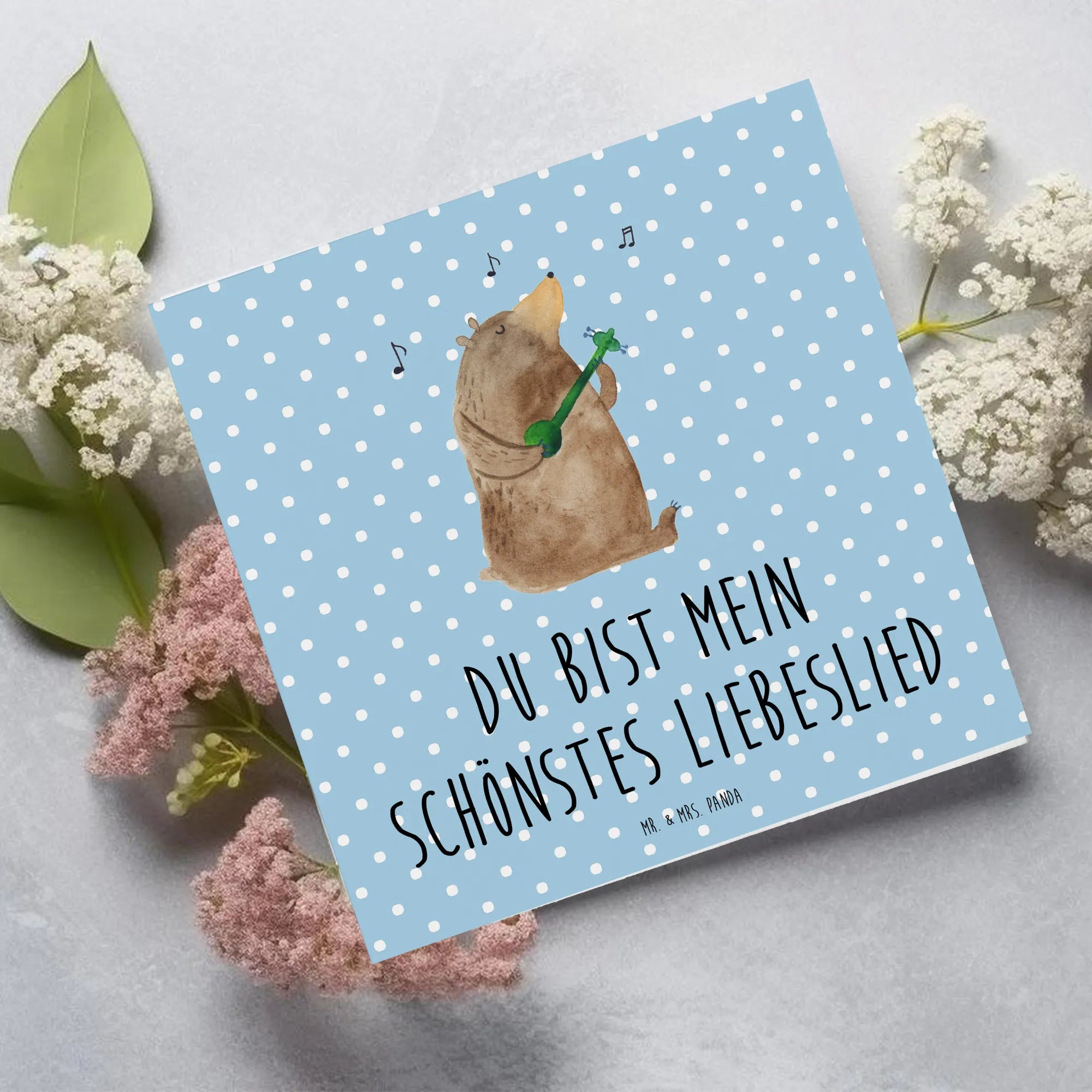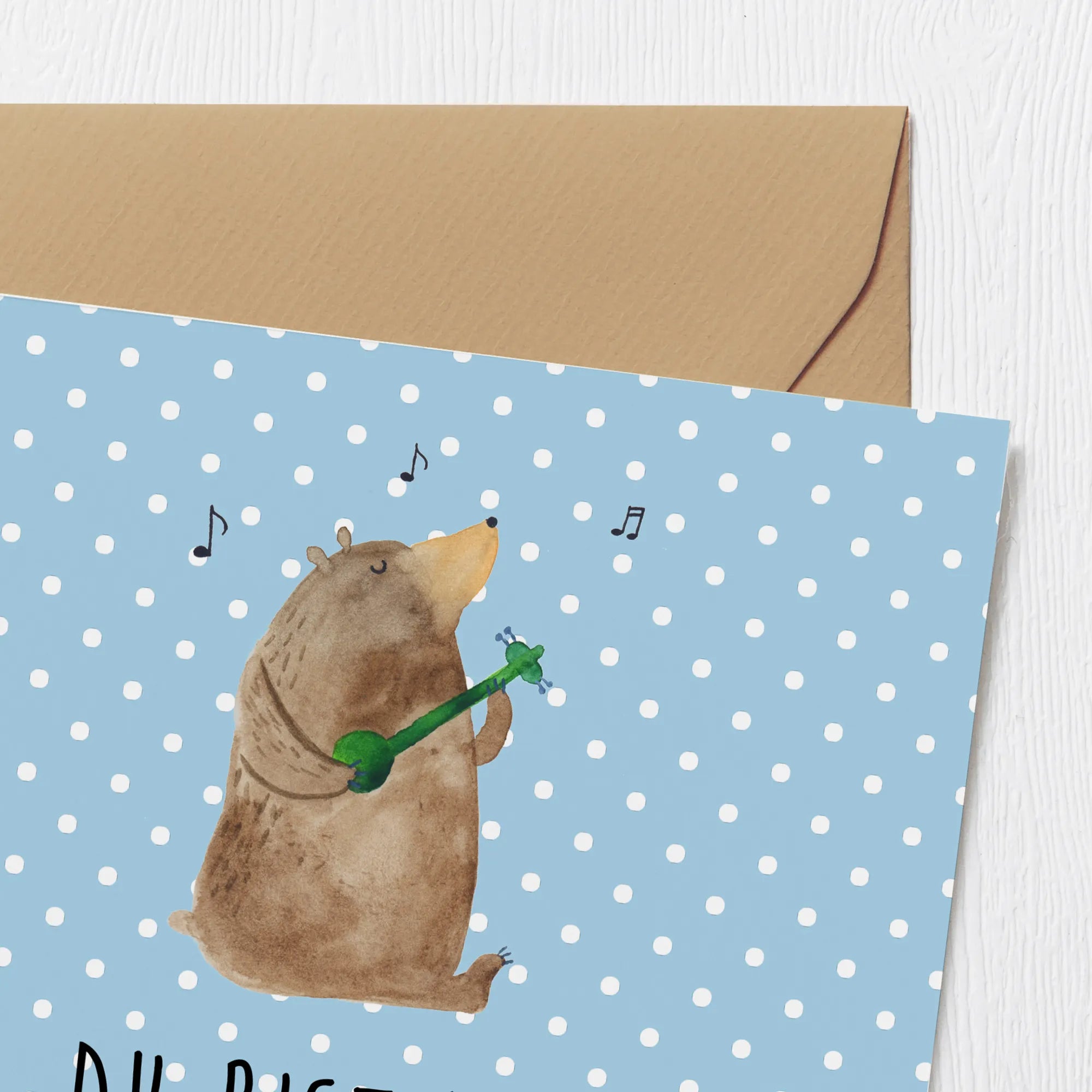 Deluxe Card bear song - with a saying - Blue Pastel