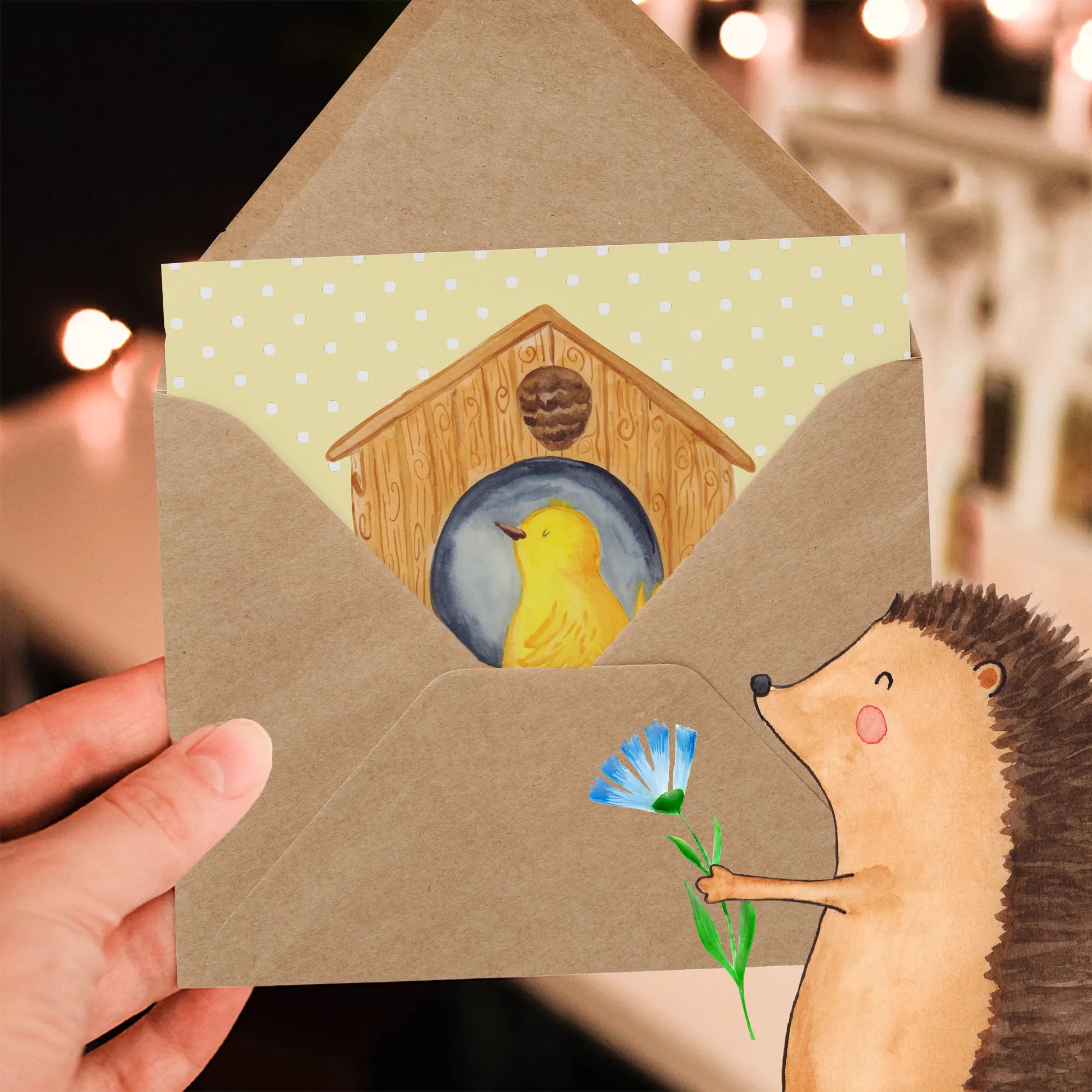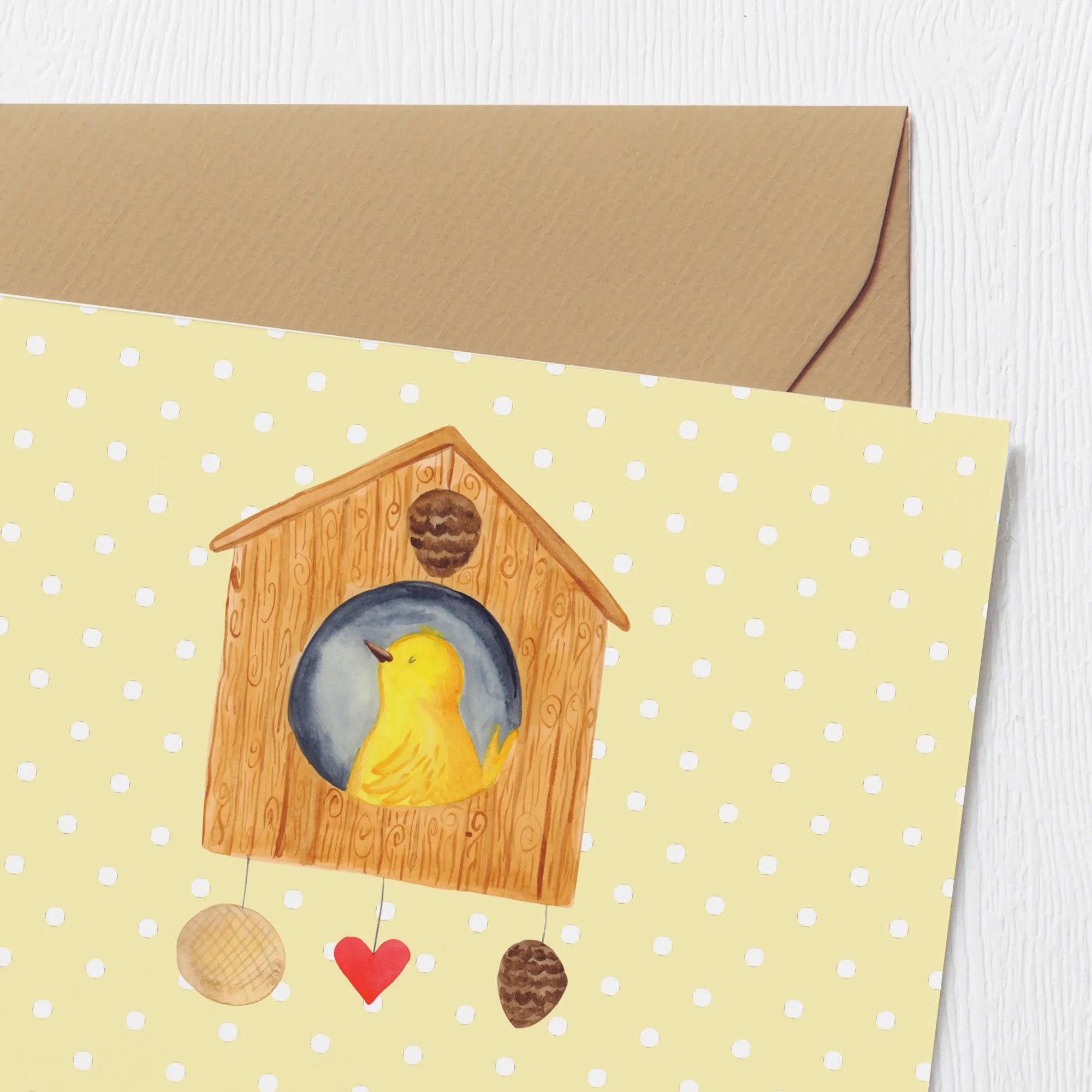 Deluxe Card birdhouse Home - with a saying - Yellow Pastel