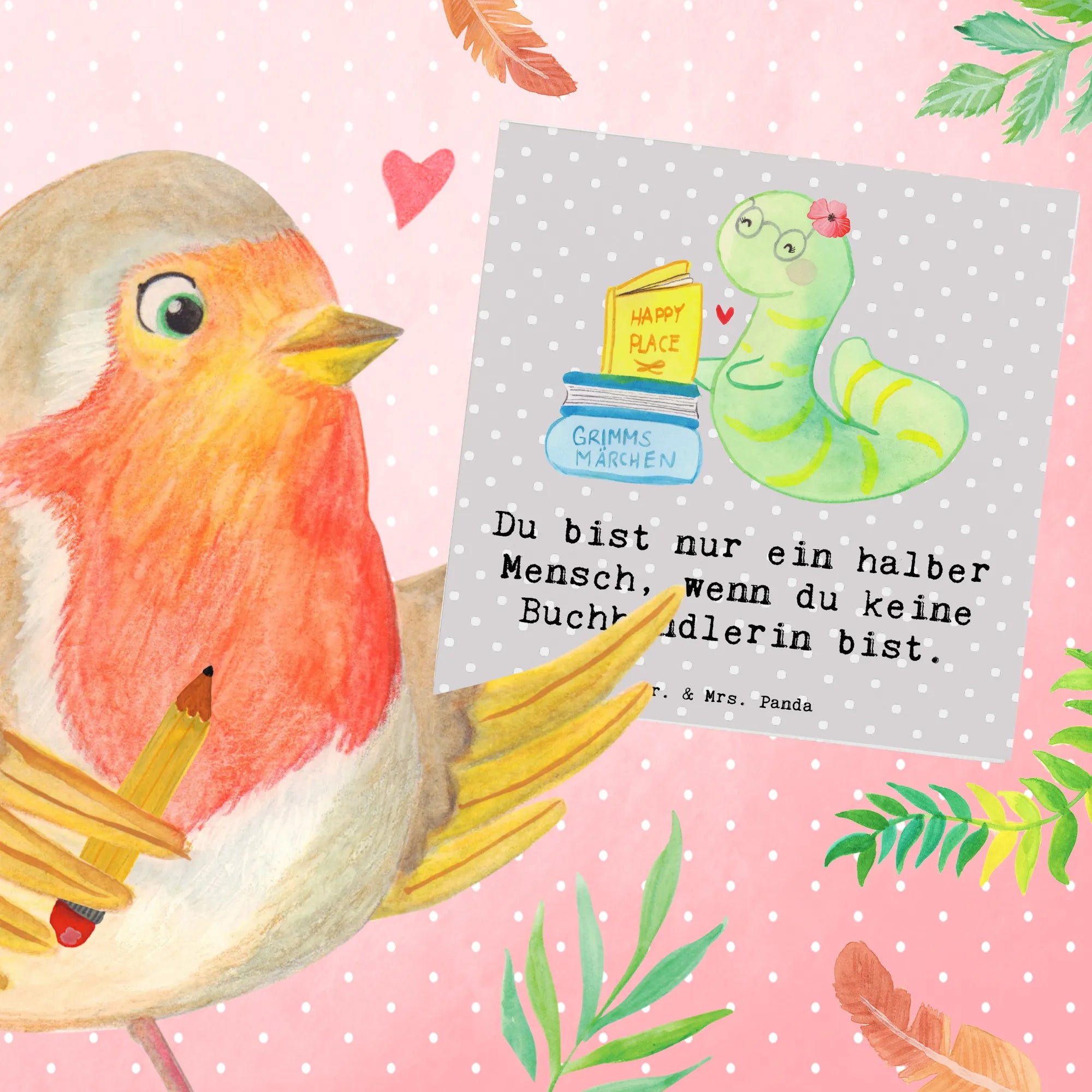 Deluxe Card Bookseller heart - with saying - Pastel Gray