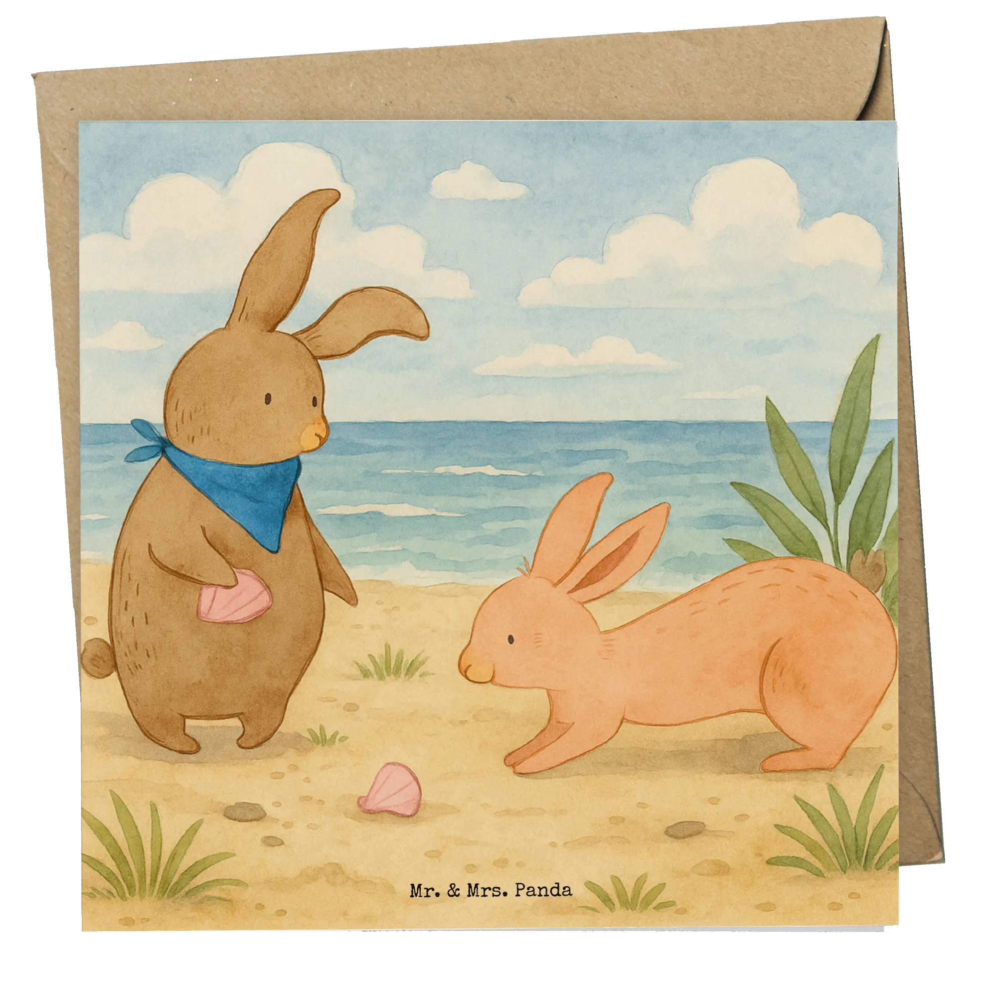 Deluxe Card Bunnies with seashell Design Karte, Grußkarte, Klappkarte, Einladungskarte, Glückwunschkarte, Hochzeitskarte, Geburtstagskarte, Hochwertige Grußkarte, Hochwertige Klappkarte, Familie, Vatertag, Muttertag, Bruder, Schwester, Mama, Papa, Oma, Opa, Hasen, beste Freundin, Freundin, Freundinnen, best friends, BFF, Muscheln sammeln, Muscheln, Meer