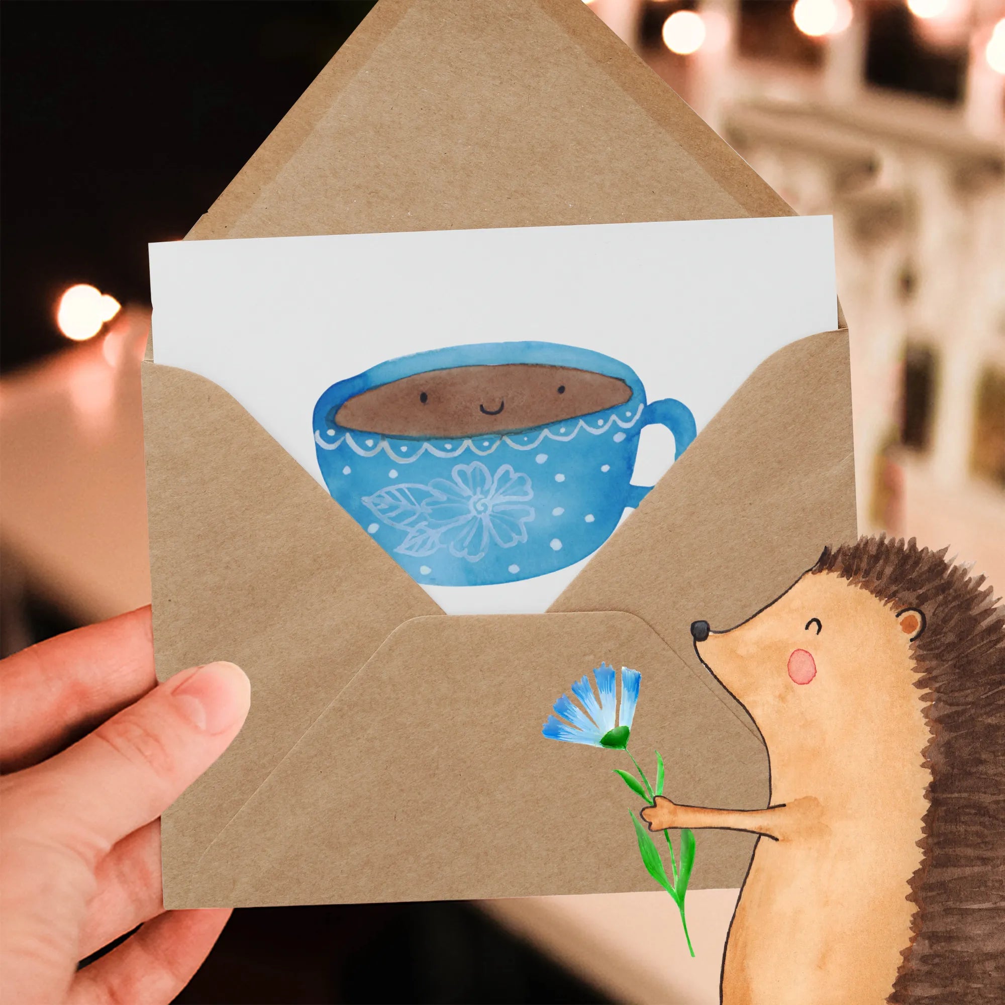 Imagine the happiness on their face as they receive this high-quality greeting card, lovingly crafted to celebrate the little pleasures in life. The front of this stylish card showcases a charming illustration of a happy coffee mug, radiating warmth and positivity. It's perfect for coffee lovers who enjoy those cozy moments spent sipping their favorite brew.
