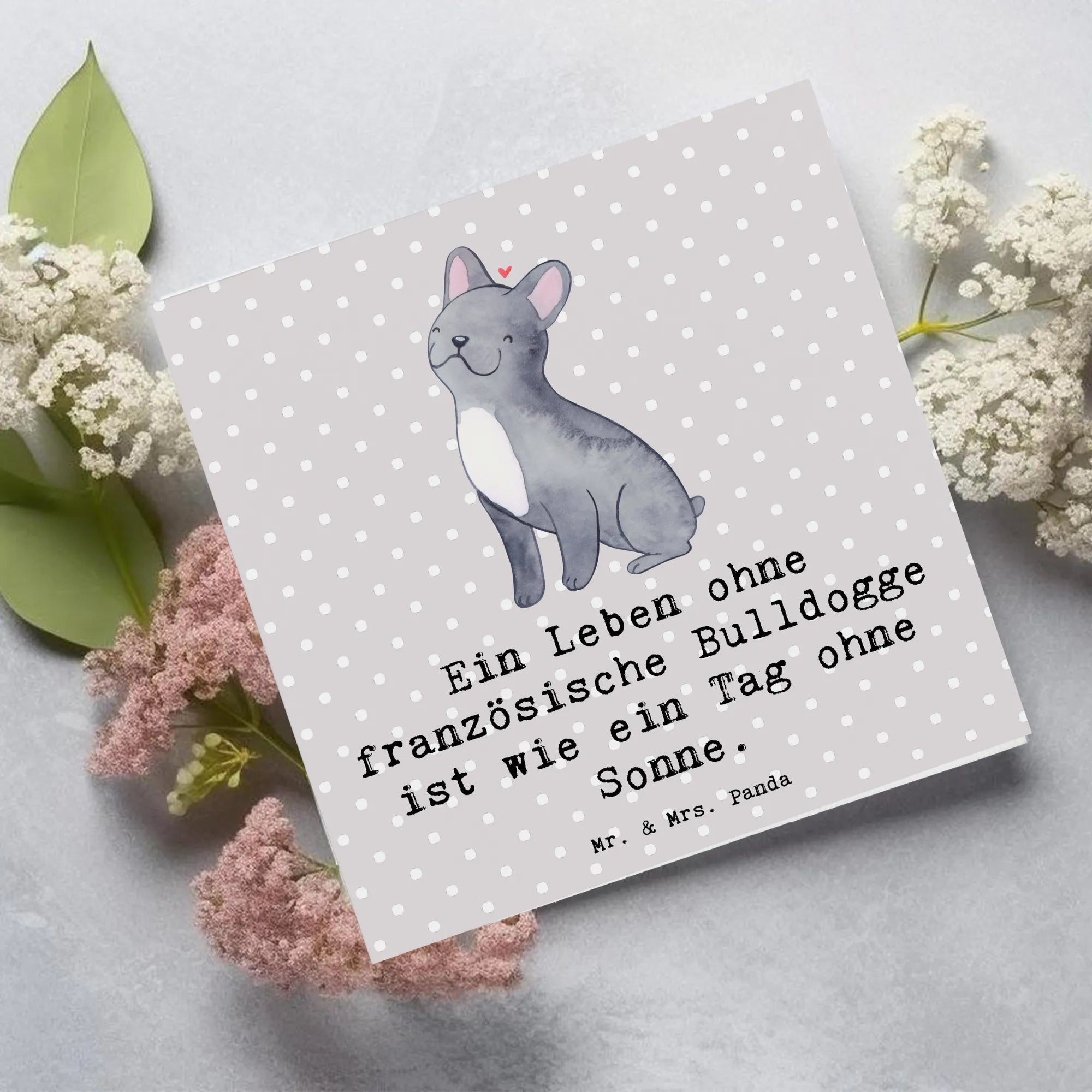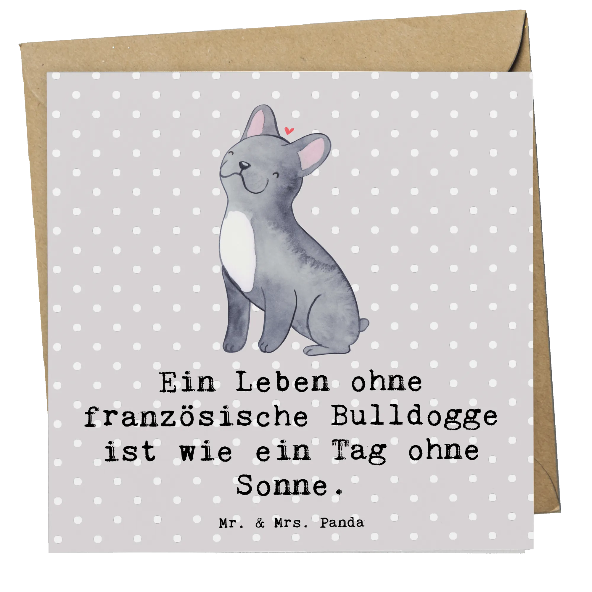 Diese wunderbare Grußkarte ist nicht nur visuell ein echter Hingucker, sondern auch eine perfekte Möglichkeit, um deine Glückwünsche oder Grüße auszudrücken. Die Karte ist mit dem liebevollen Spruch „Ein Leben ohne französische Bulldogge ist wie ein Tag ohne Sonne.“ versehen und wird sicher ein Lächeln auf das Gesicht deines Empfängers zaubern!