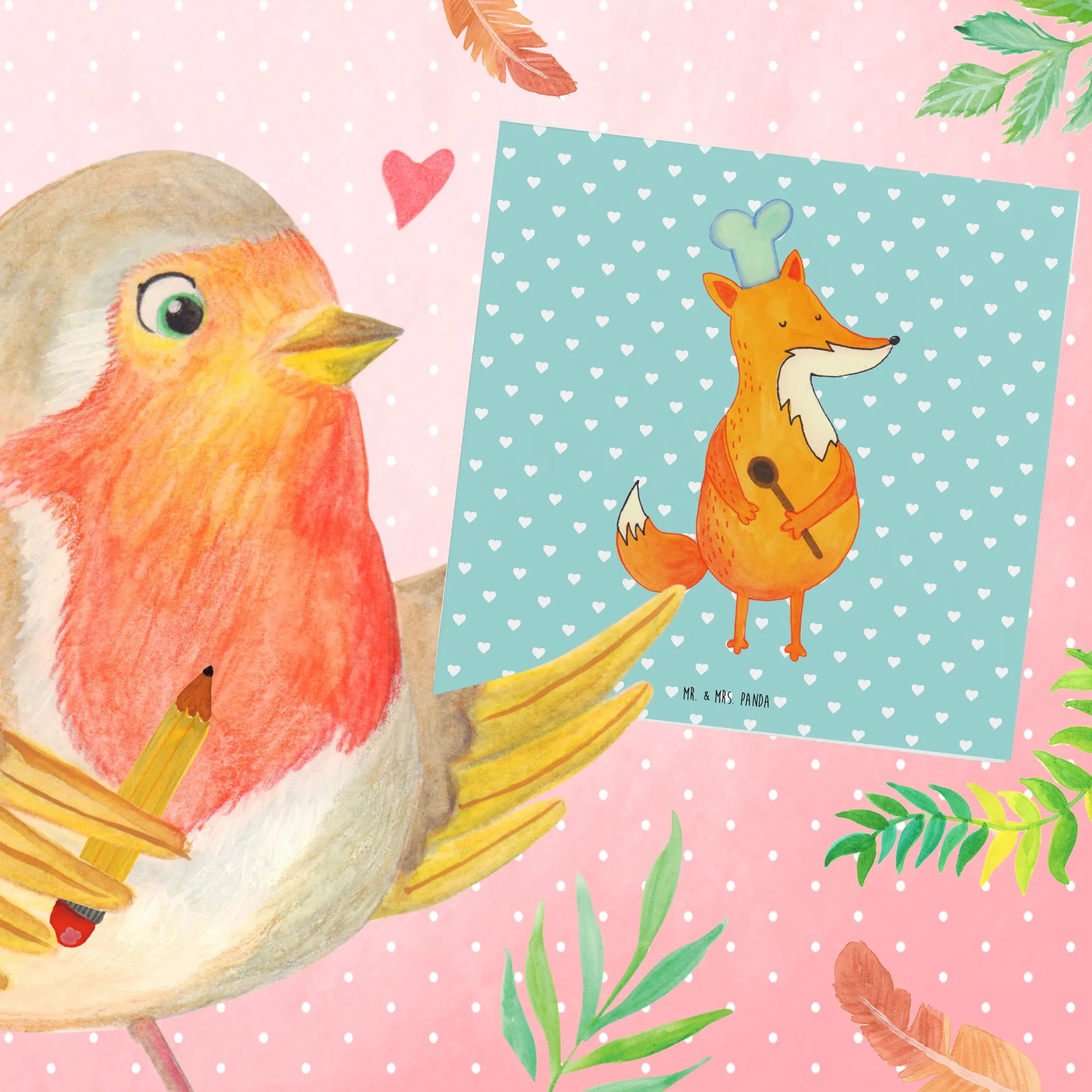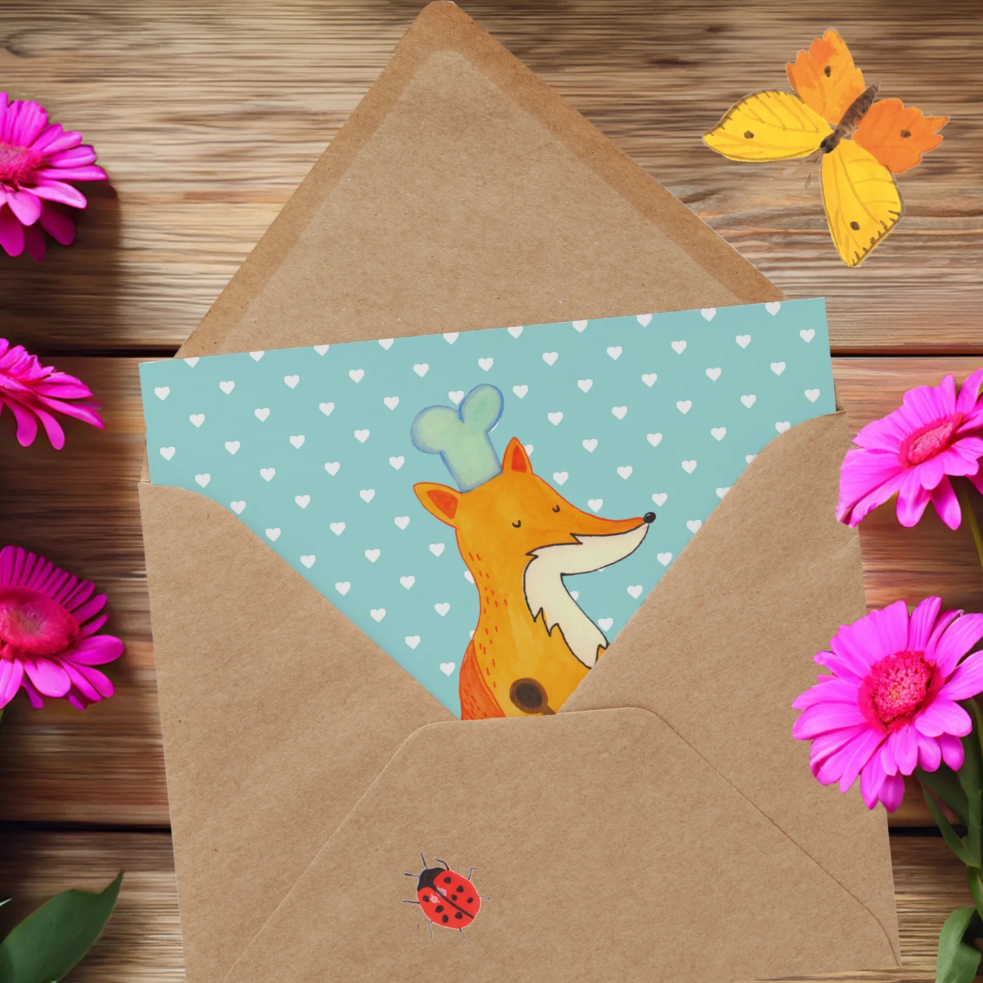 Deluxe Card Fox A cook - with a saying - Turquoise Pastel
