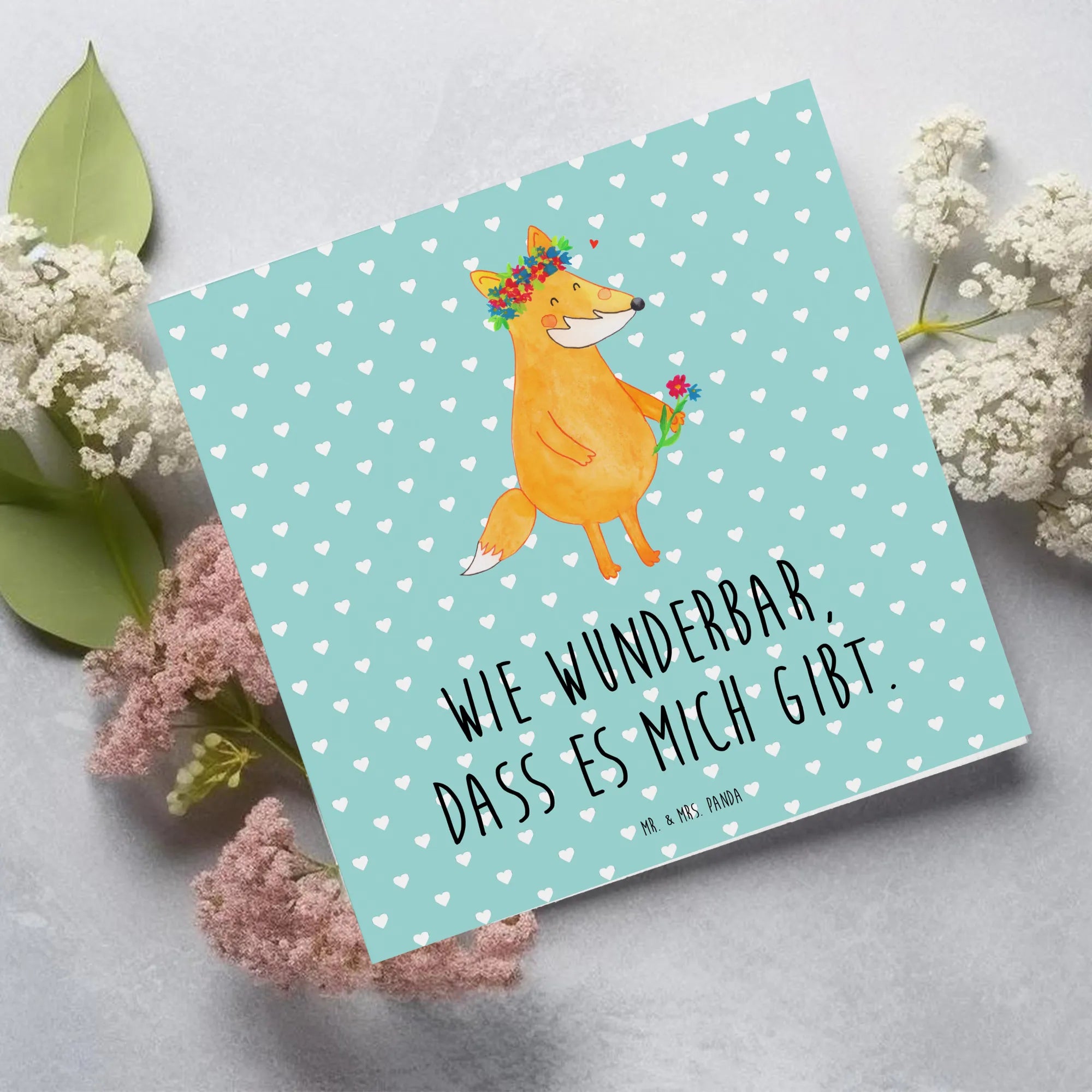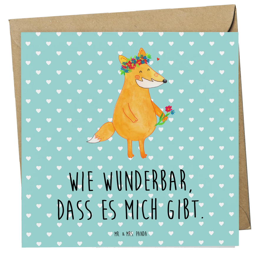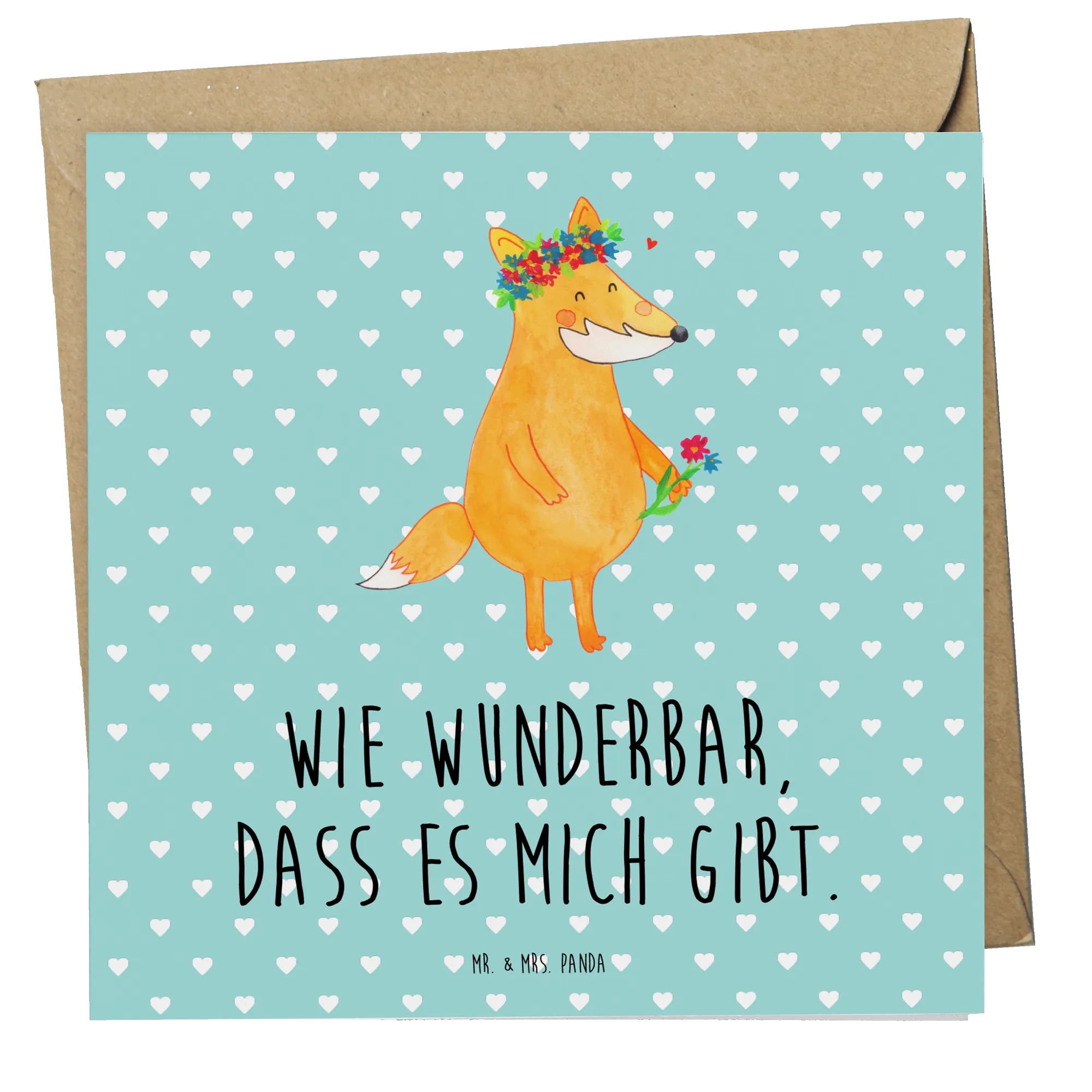 Deluxe Card Fox Flower - with a saying - Turquoise Pastel