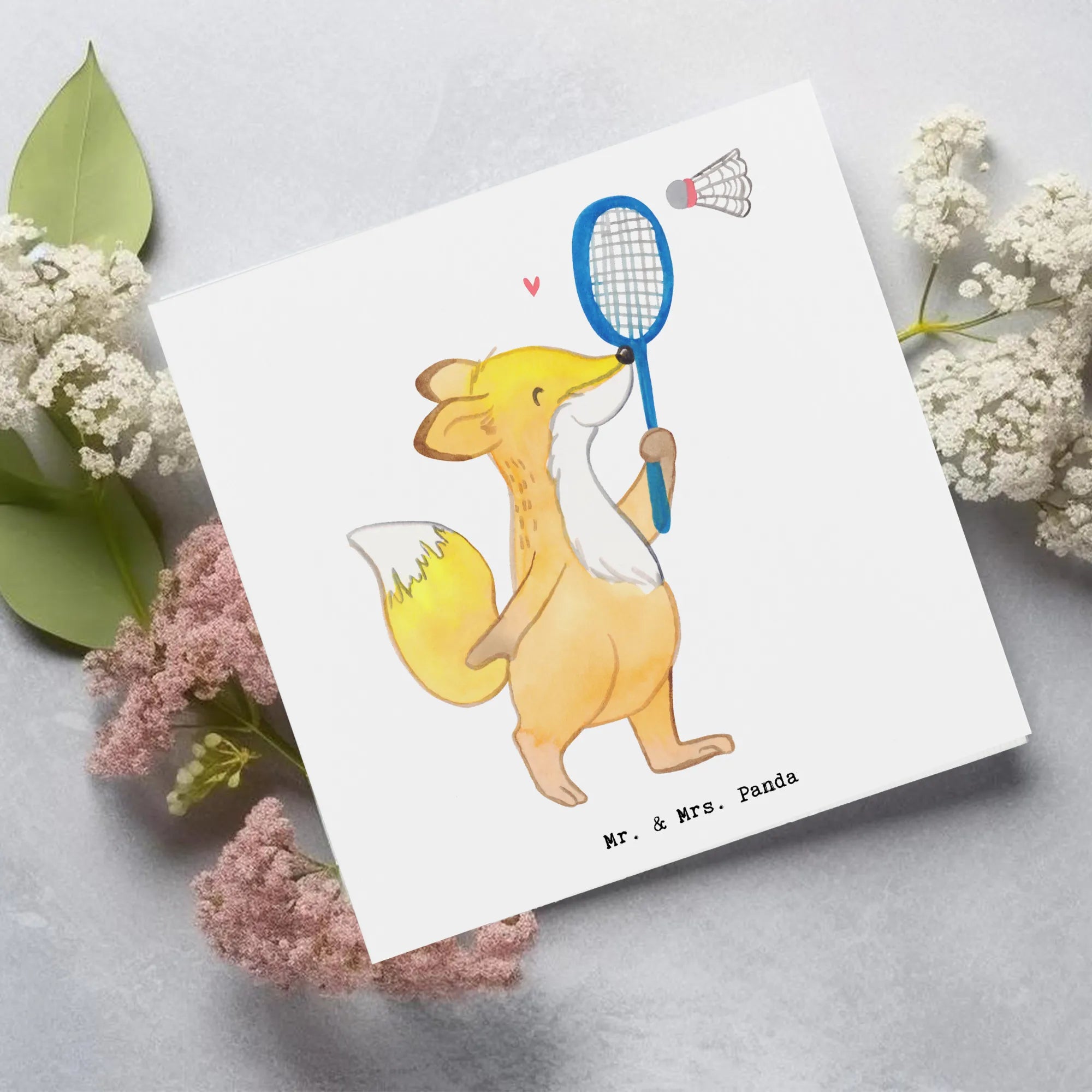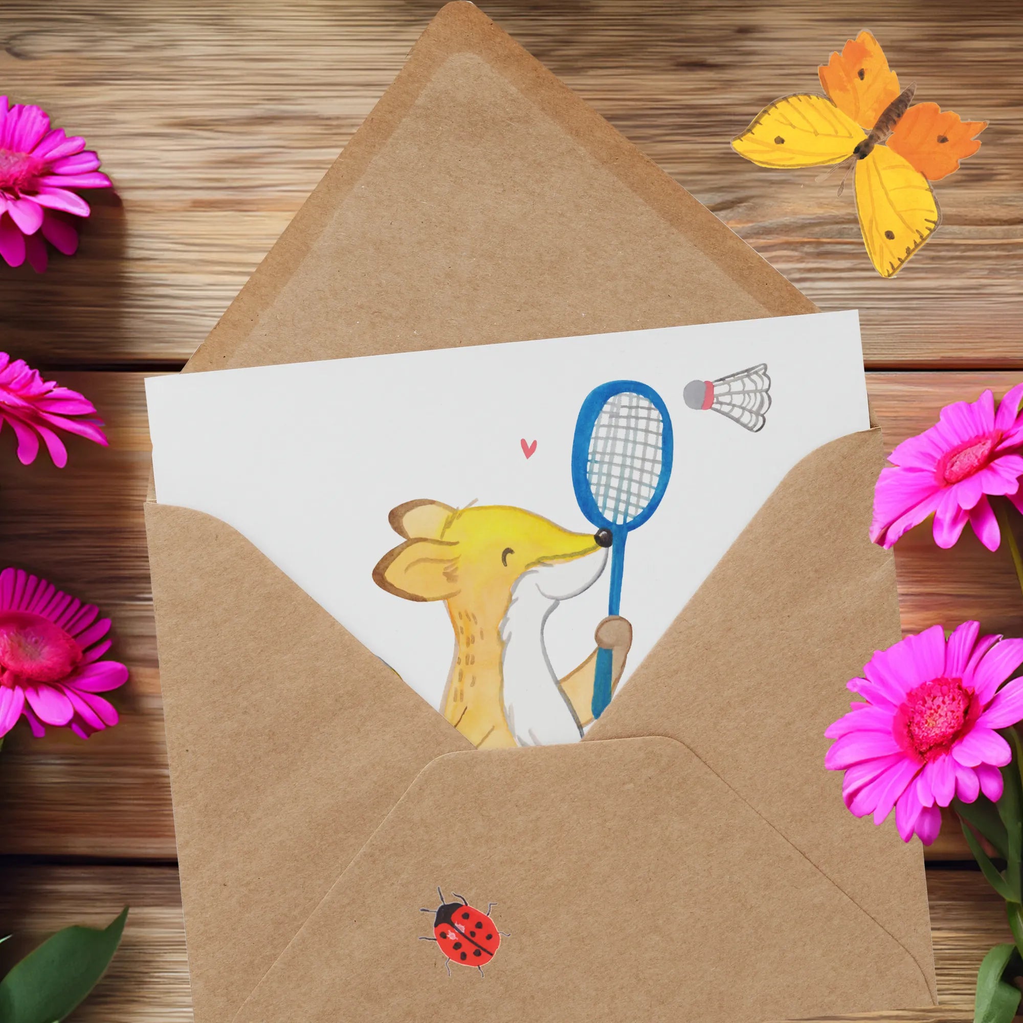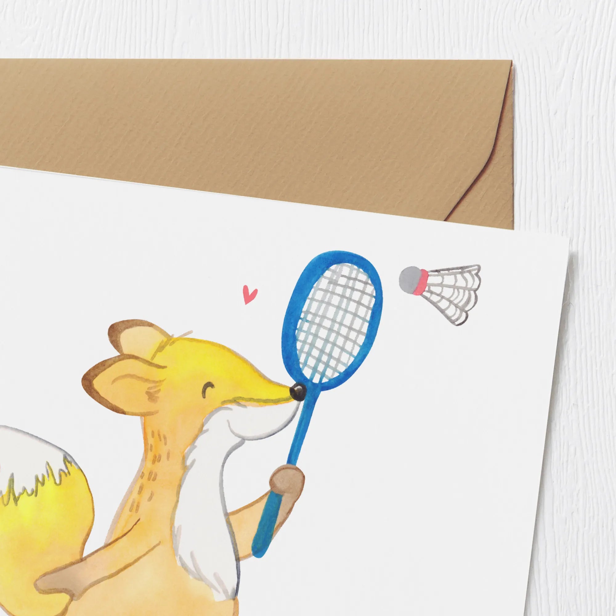 Deluxe Card Fox play badminton Hochwertige Klappkarte, Klappkarte, Hochzeitskarte, Hochwertige Grußkarte, Karte, Grußkarte, Einladungskarte, Geburtstagskarte, Glückwunschkarte, Geschenk, Sport, Sportart, Hobby, Schenken, Danke, Dankeschön, Auszeichnung, Gewinn, Sportler, Federball spielen, Badminton