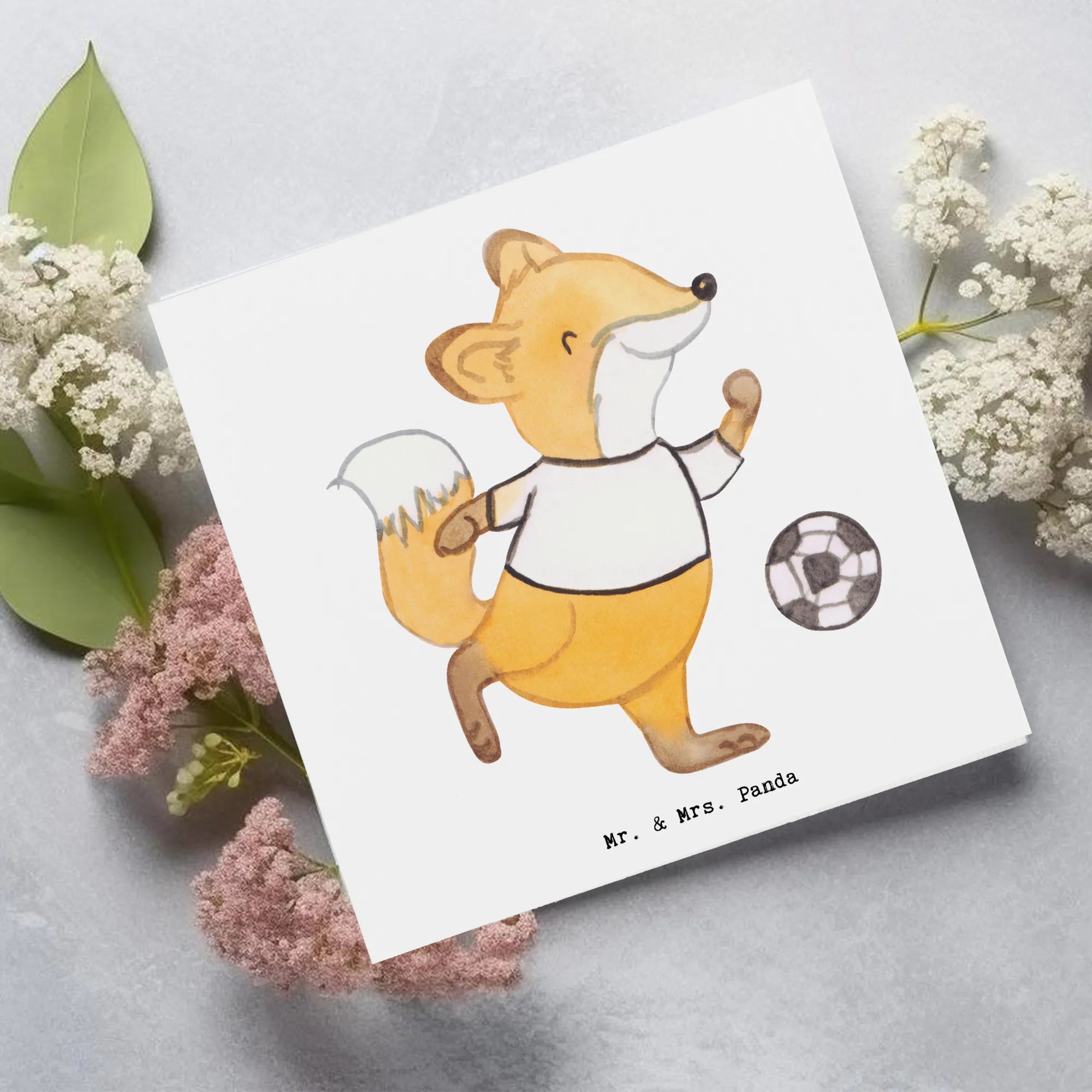 Deluxe Card Fox play soccer - with saying - Pastel Gray