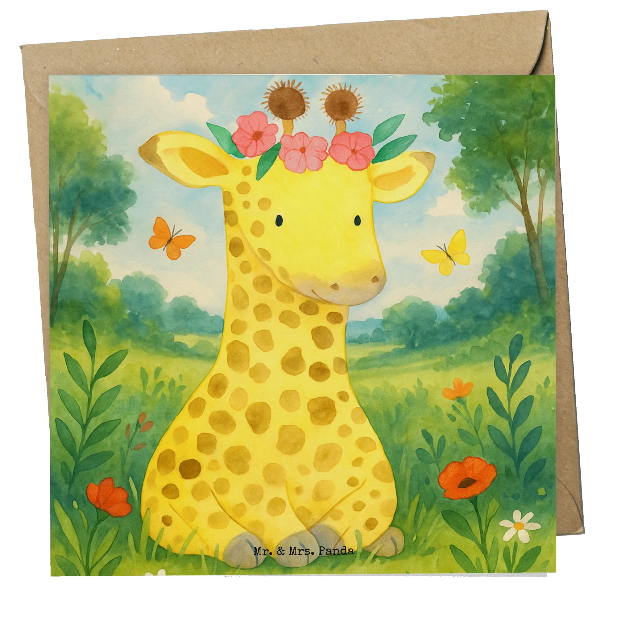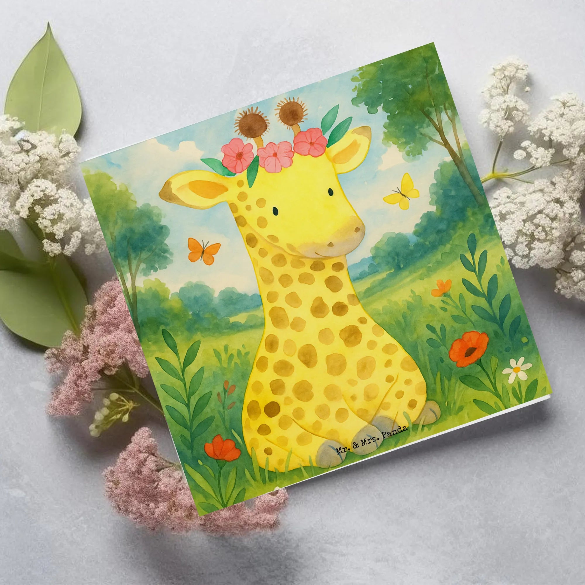 Deluxe Card giraffe flower wreath Design