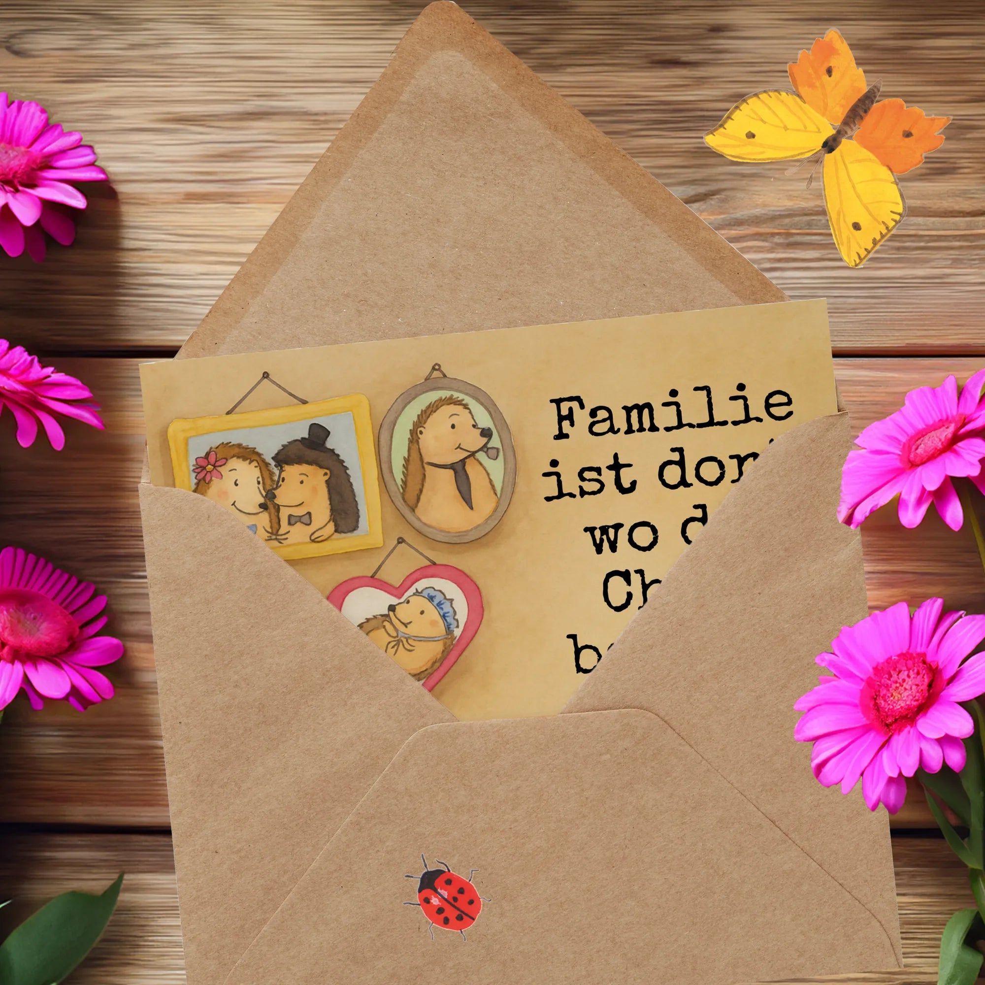 Deluxe Card Hedgehog family Design Karte, Grußkarte, Klappkarte, Einladungskarte, Glückwunschkarte, Hochzeitskarte, Geburtstagskarte, Hochwertige Grußkarte, Hochwertige Klappkarte, Familie, Vatertag, Muttertag, Bruder, Schwester, Mama, Papa, Oma, Opa, Liebe, Igel, Bilder, Zusammenhalt, Glück