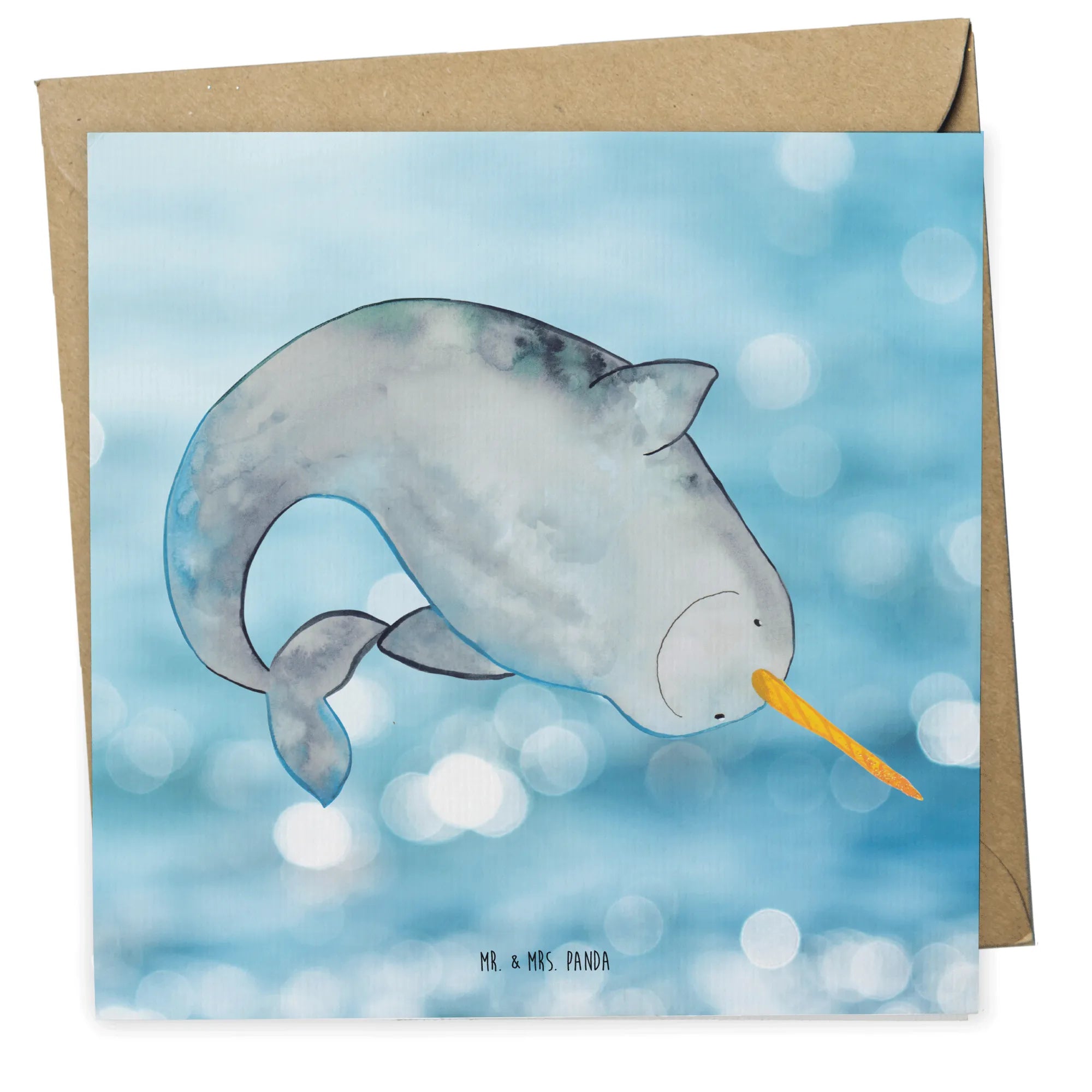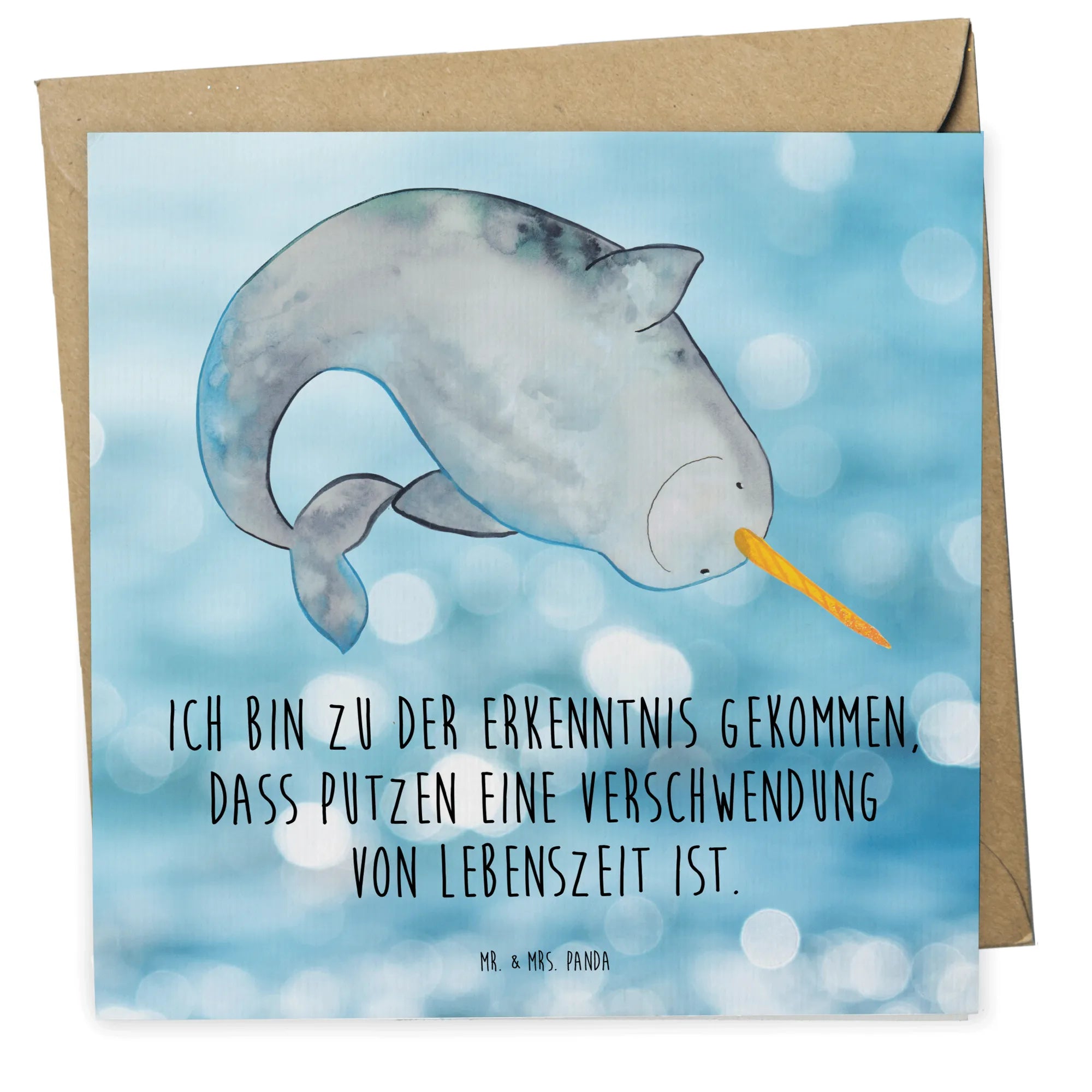Deluxe Card Narwhal Hochwertige Klappkarte, Einladungskarte, Glückwunschkarte, Karte, Hochwertige Grußkarte, Klappkarte, Hochzeitskarte, Grußkarte, Geburtstagskarte, Meerestiere, Meer, Urlaub, Junggesellin, Putzen, Kinderzimmer, Hausfrau, Wal, Narwal, aufräumen