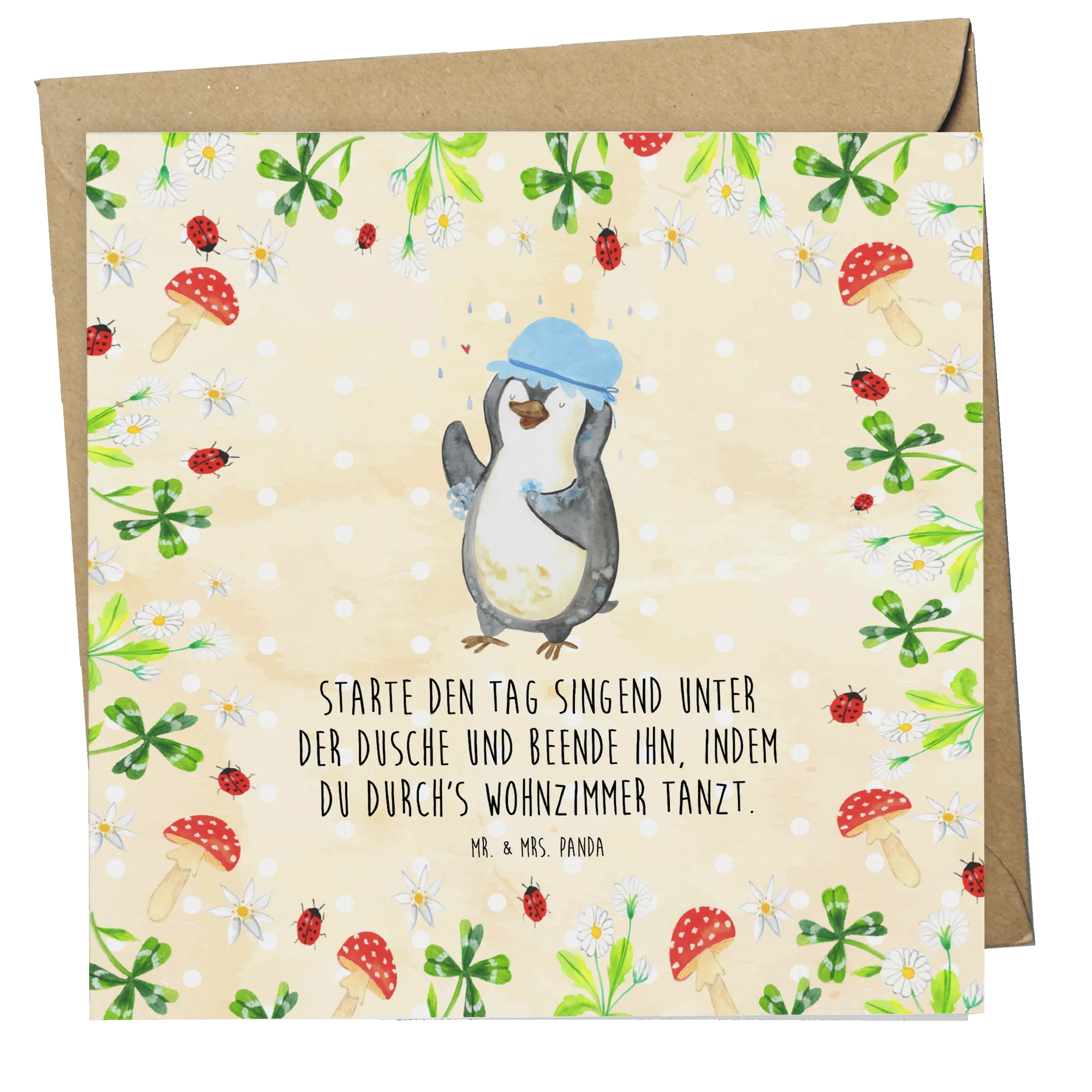 Deluxe Card Penguin have a shower - with a saying - Ice blue