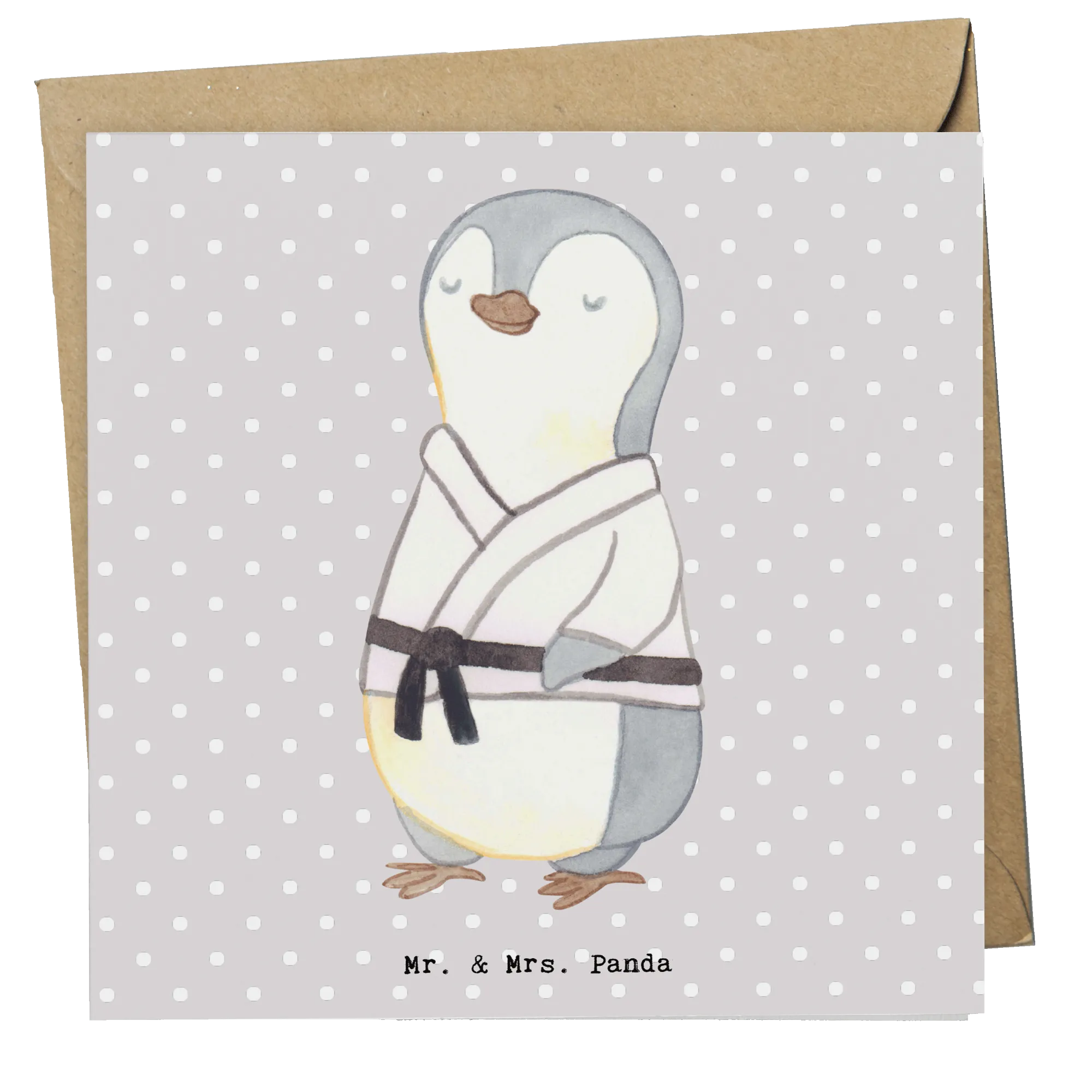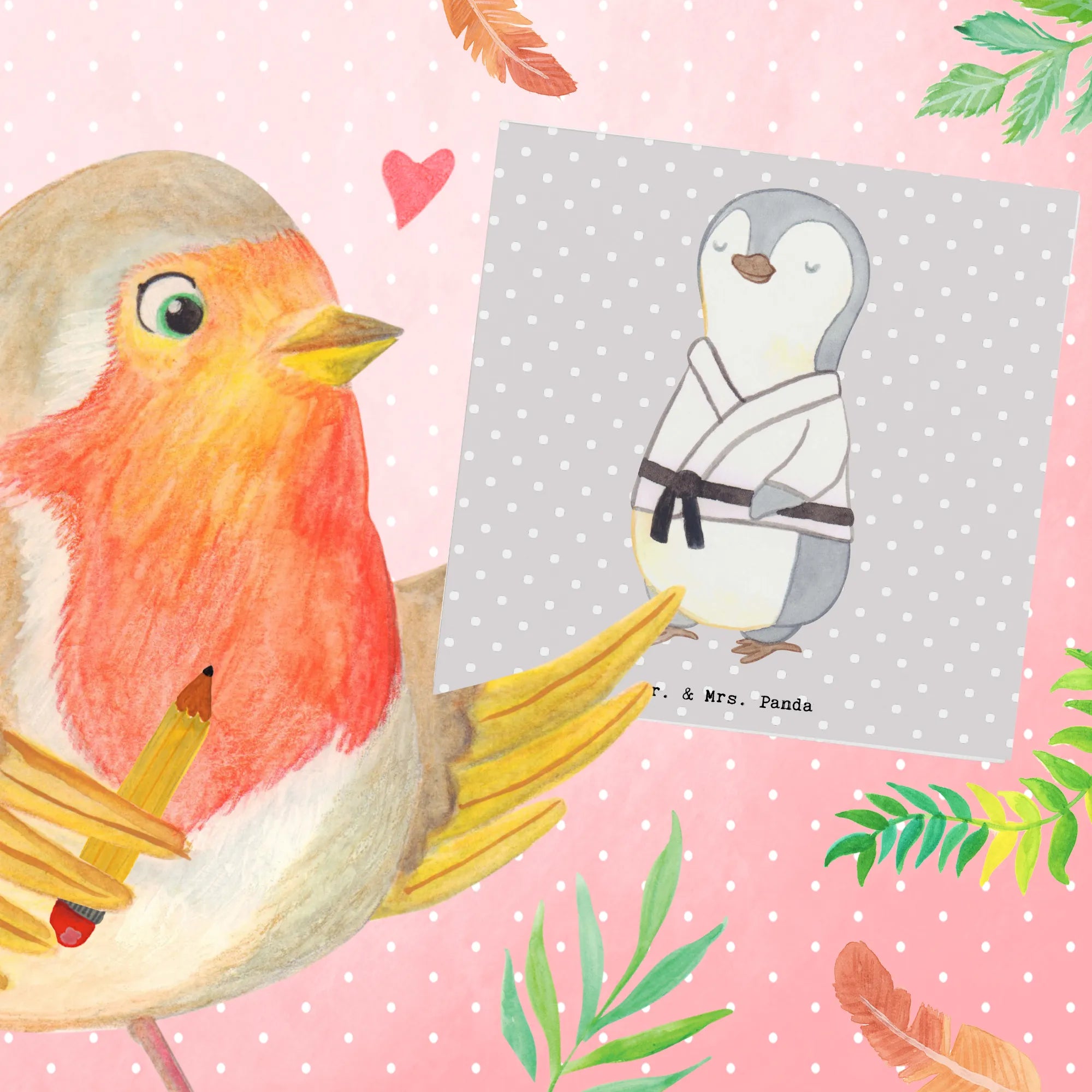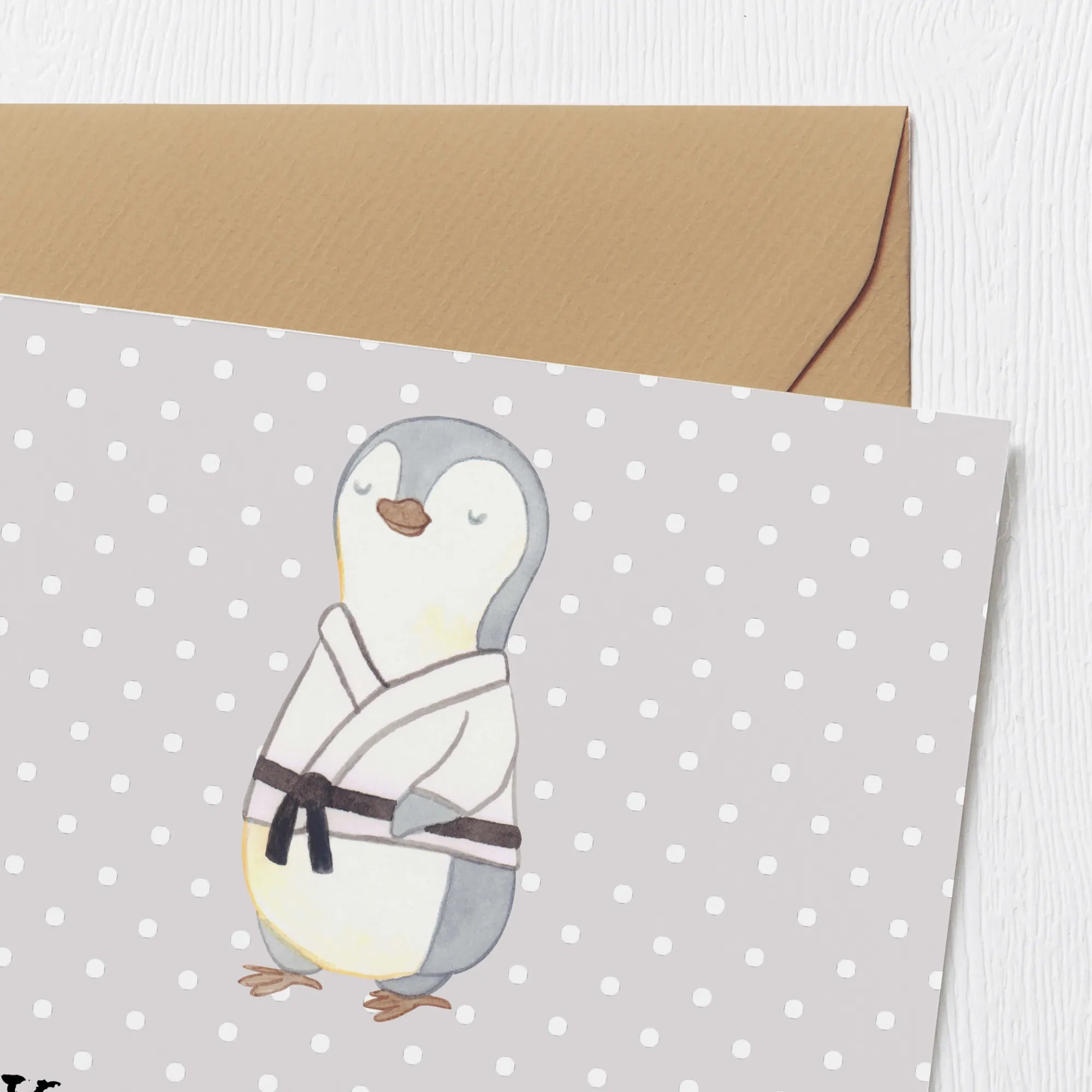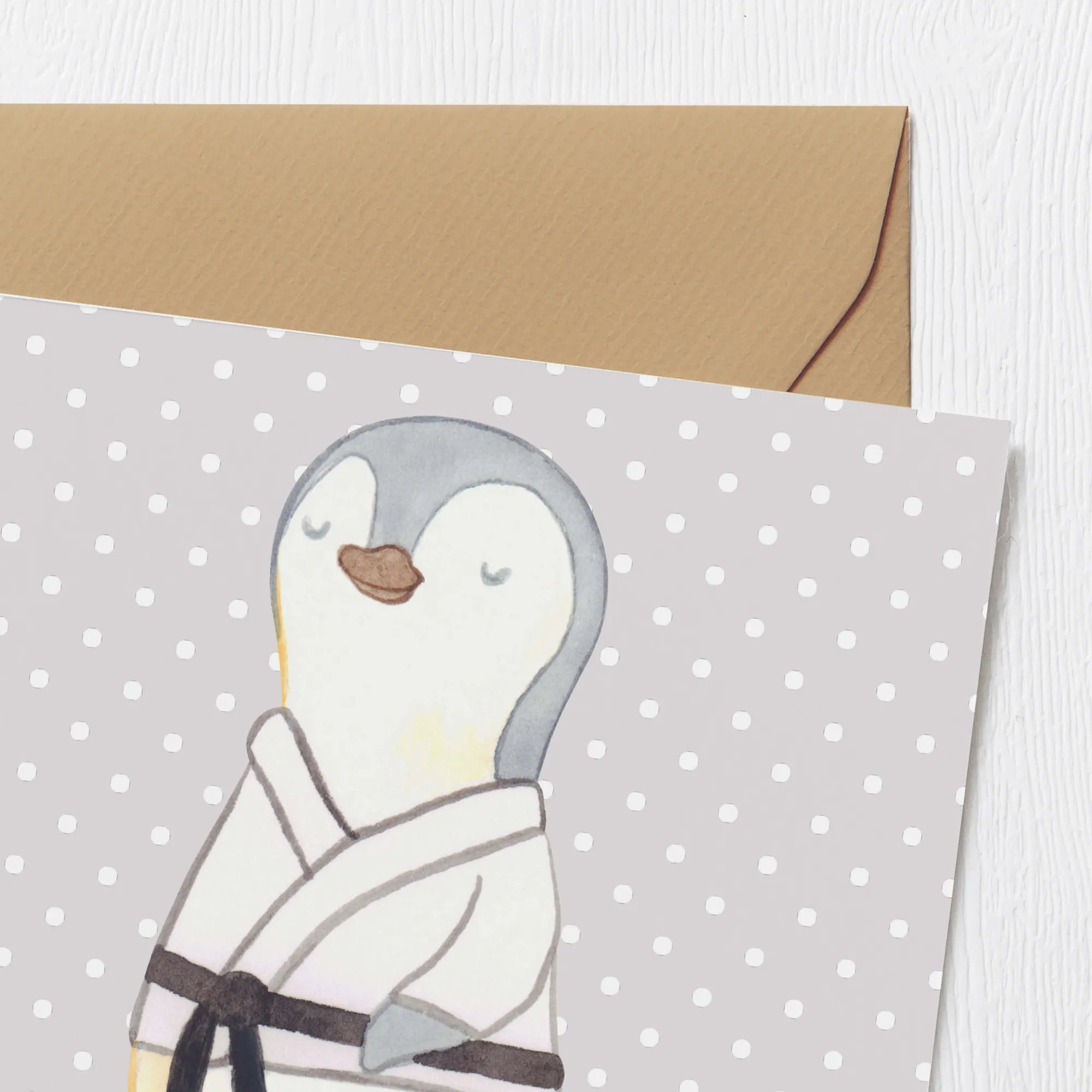 Deluxe Card penguin karate - with a saying - Grey Pastel