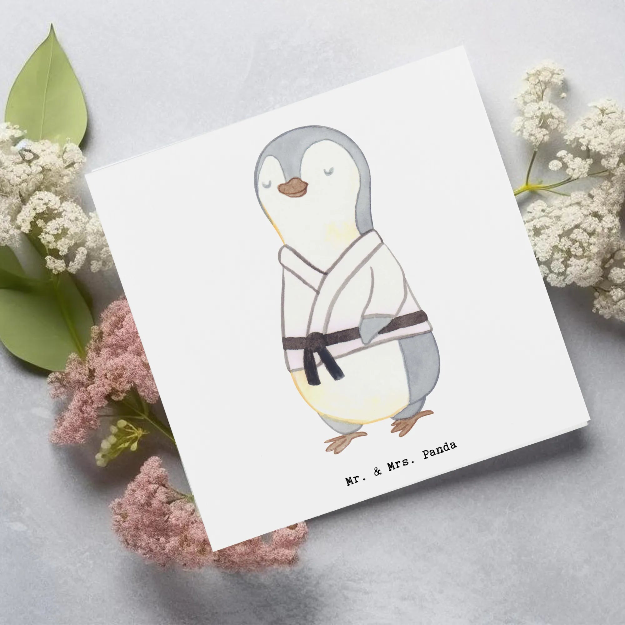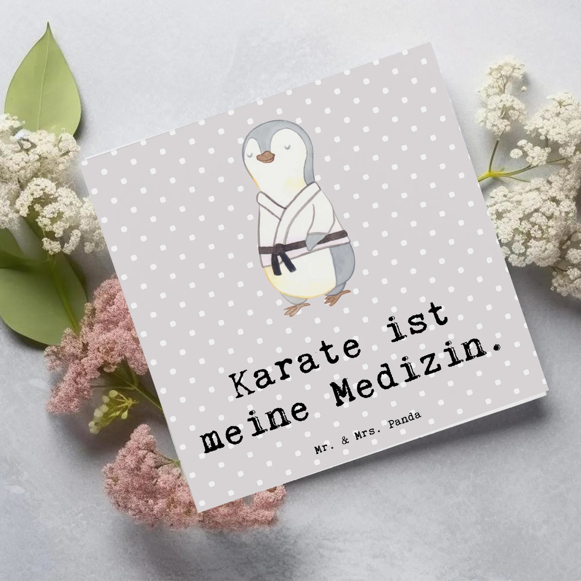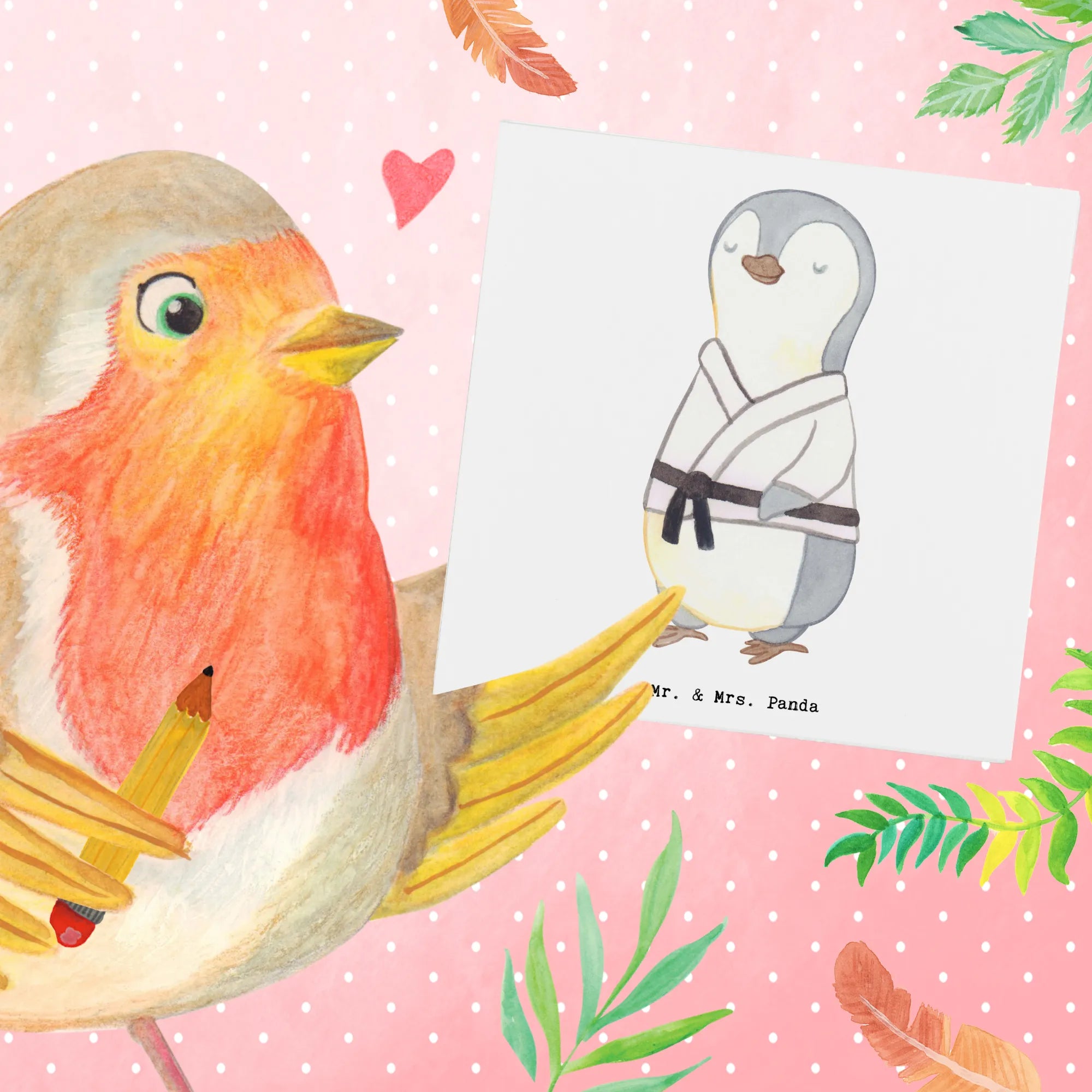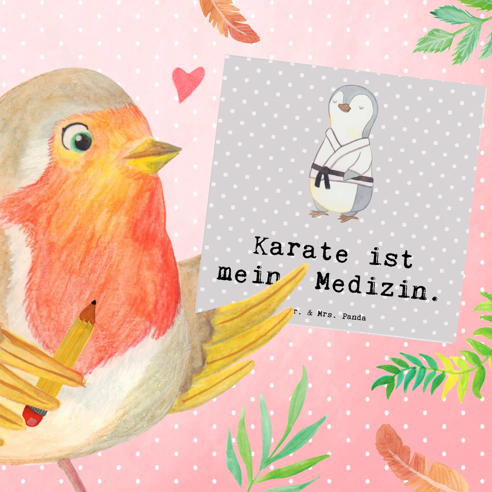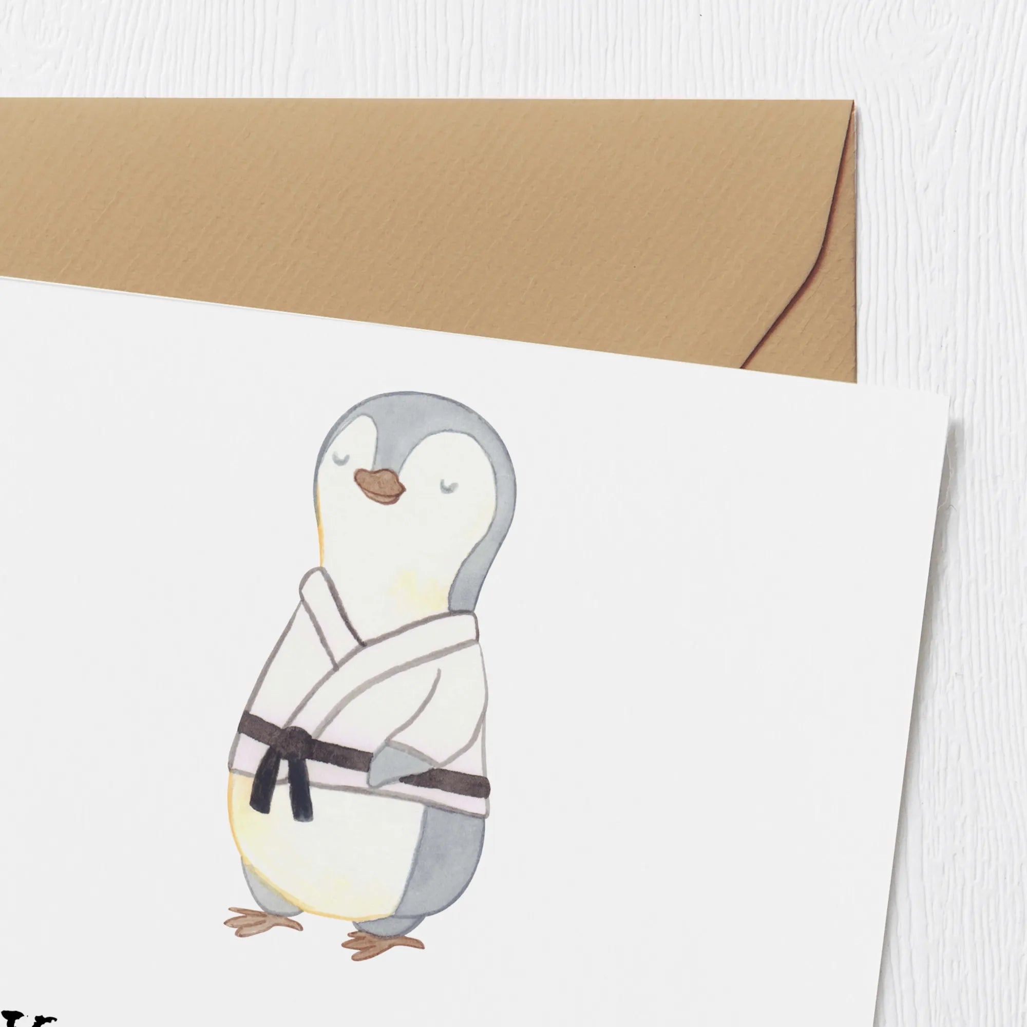 Deluxe Card penguin karate - with a saying - Grey Pastel
