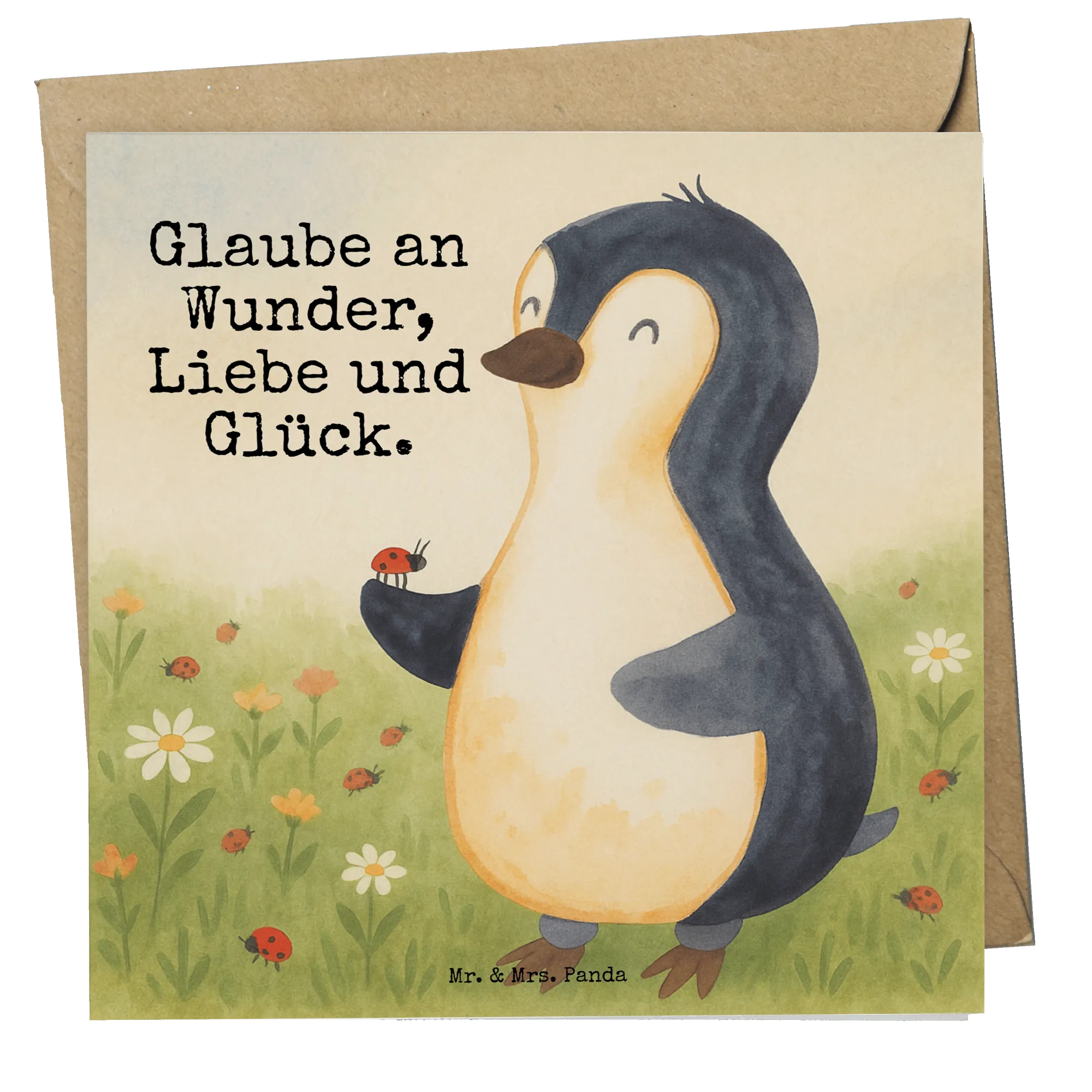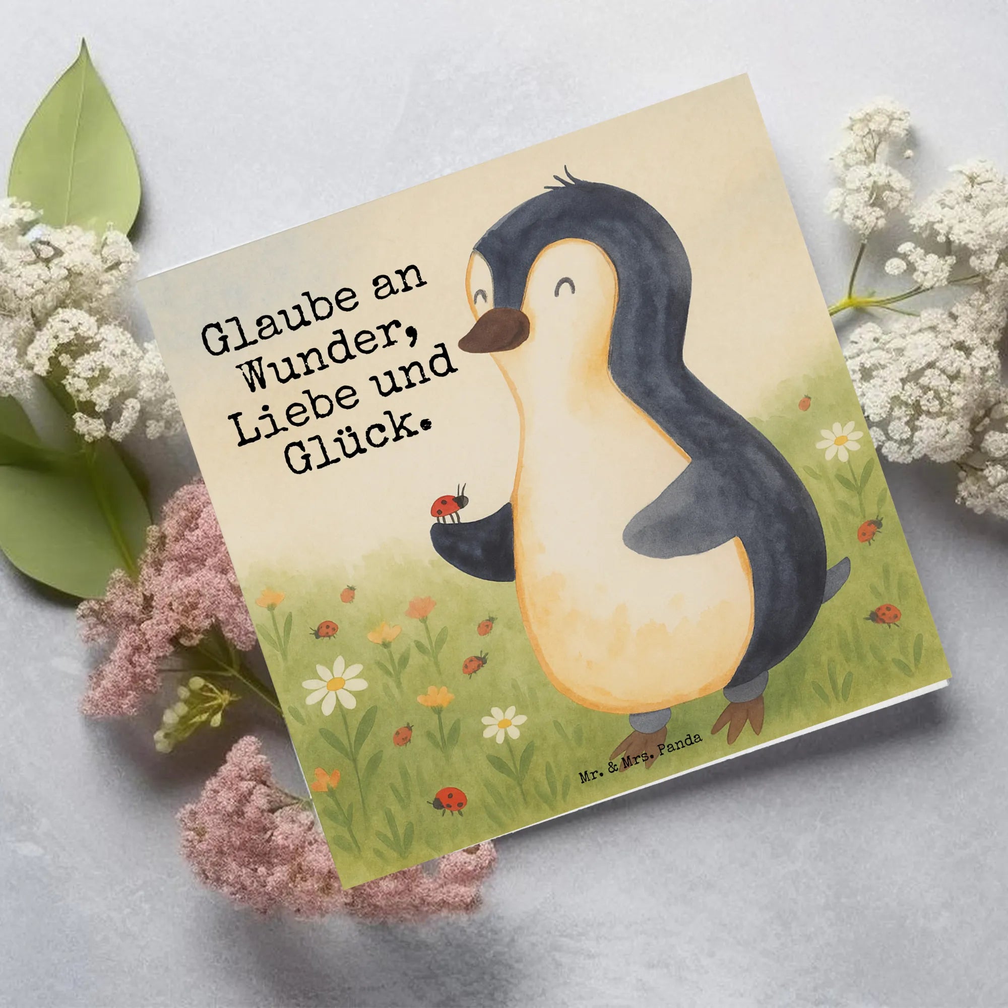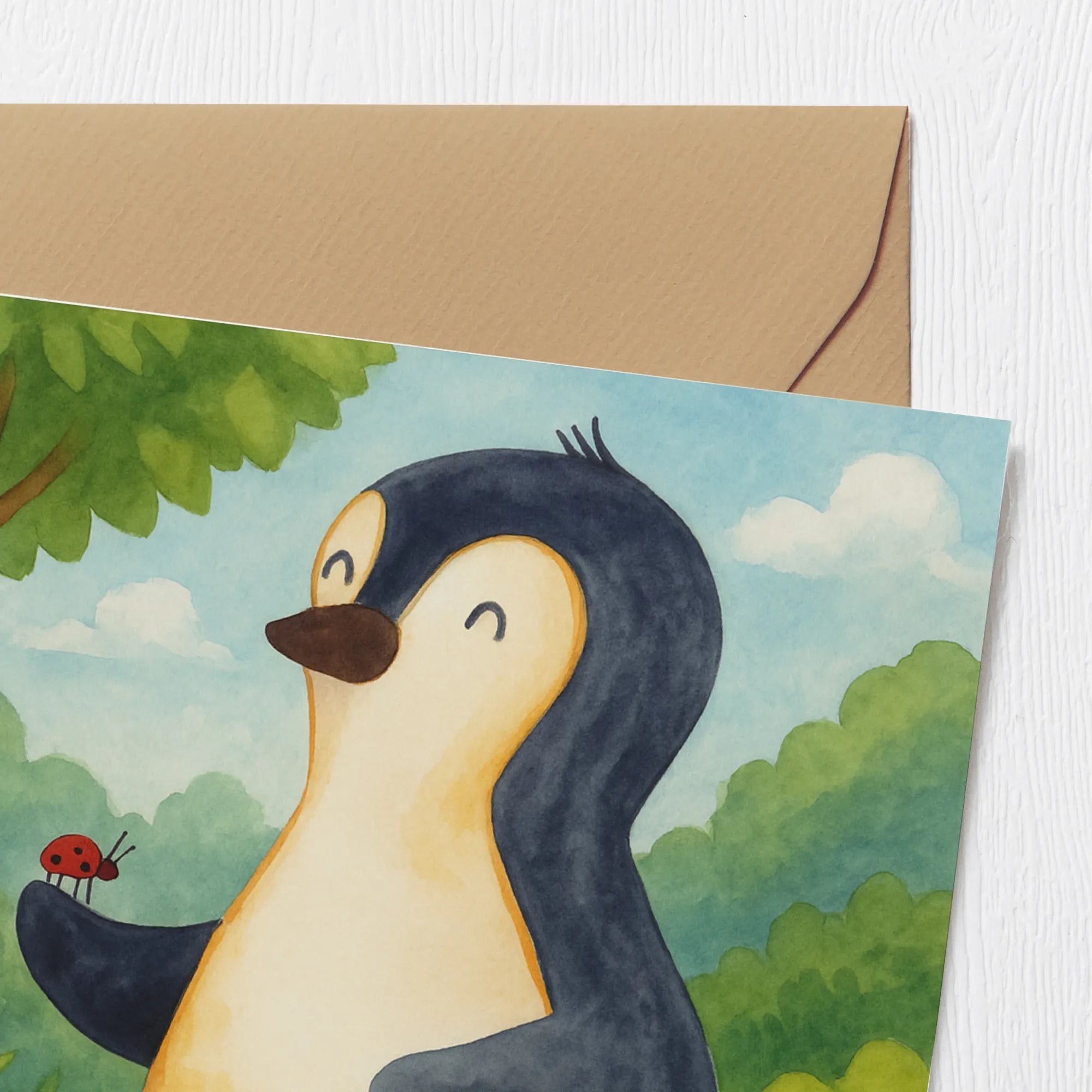 Deluxe Card Penguin ladybug Design Karte, Grußkarte, Klappkarte, Einladungskarte, Glückwunschkarte, Hochzeitskarte, Geburtstagskarte, Hochwertige Grußkarte, Hochwertige Klappkarte, Pinguin, Pinguine, Marienkäfer, Liebe, Wunder, Glück, Freude, Lebensfreude