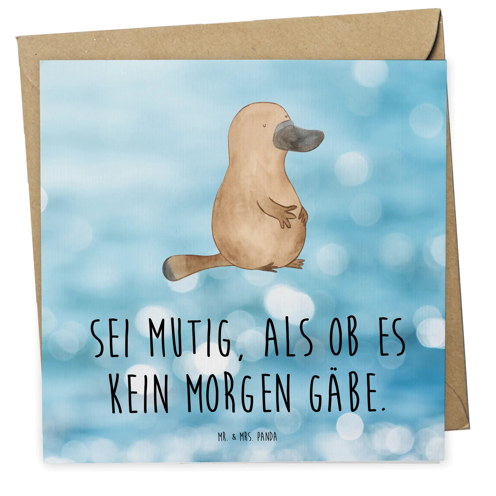Deluxe Card platypus courage - with a saying - Oceanblue