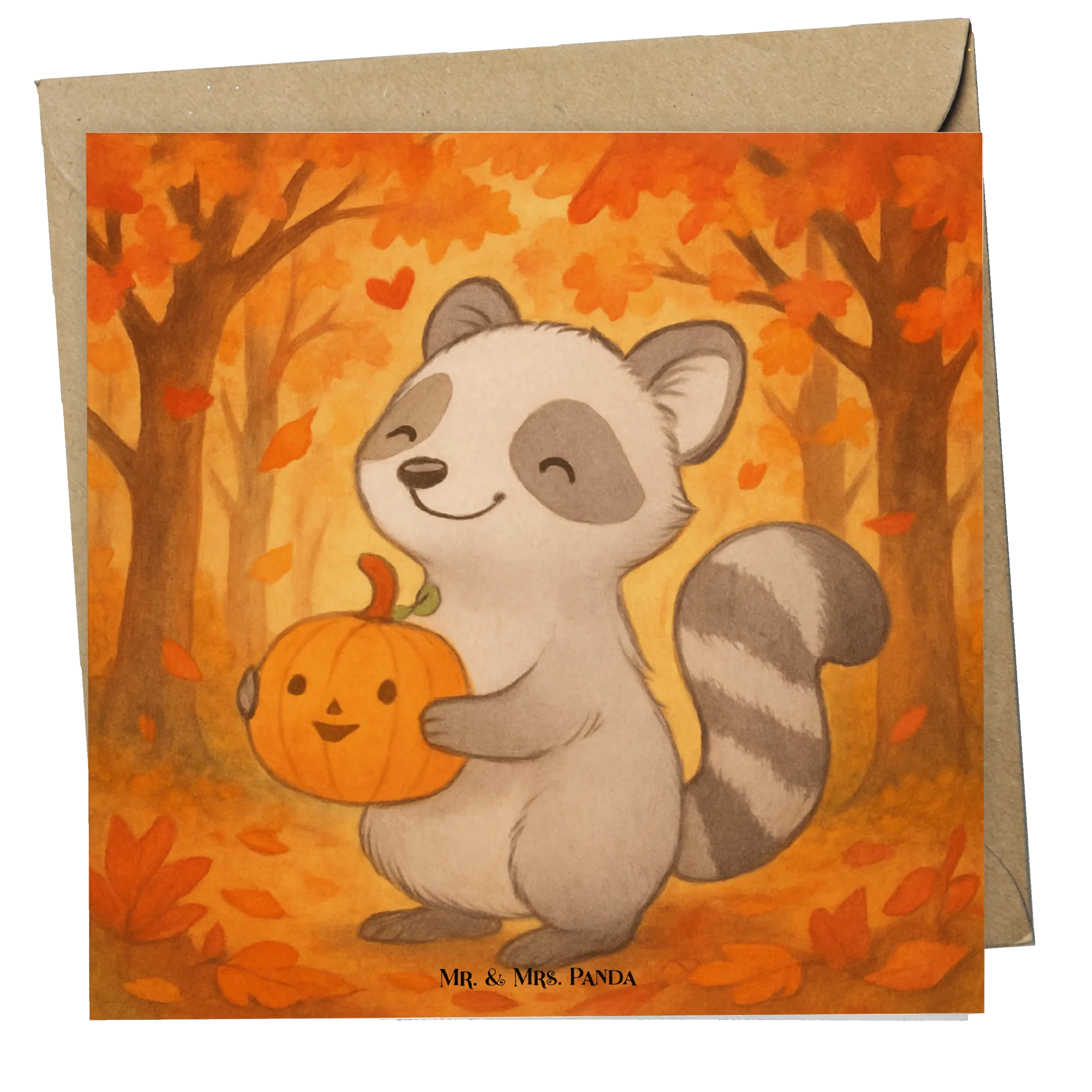 Deluxe Card Raccoon Pumpkin Design - with saying