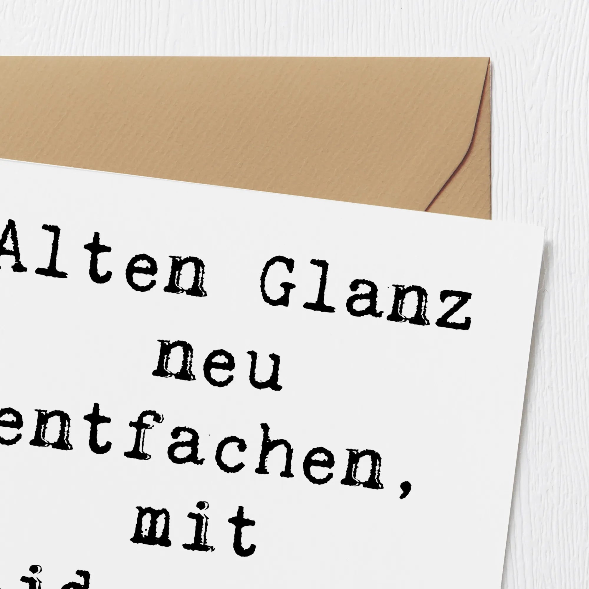 Deluxe Card Saying Alten Glanz neu entfachen, mit Leidenschaft gemacht. Karte, Klappkarte, Hochwertige Klappkarte, Hochzeitskarte, Glückwunschkarte, Geburtstagskarte, Einladungskarte, Hochwertige Grußkarte, Grußkarte, Beruf, Ausbildung, Jubiläum, Abschied, Rente, Kollege, Kollegin, Geschenk, Schenken, Arbeitskollege, Mitarbeiter, Firma, Danke, Dankeschön