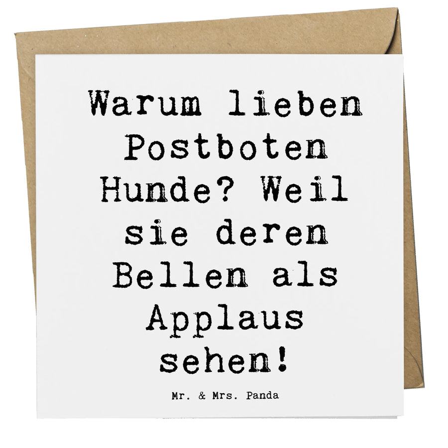 Deluxe Card Saying Warum lieben Postboten Hunde? Weil sie deren Bellen als Applaus sehen! - White