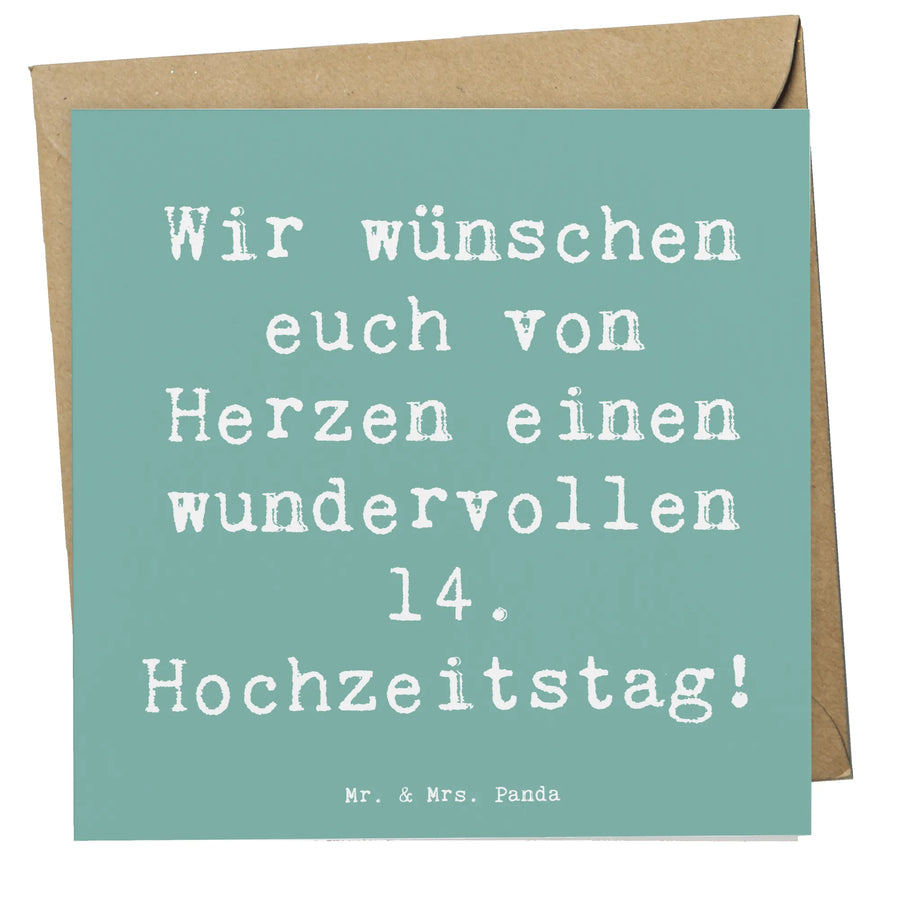 Deluxe Card Saying Wir wünschen euch von Herzen einen wundervollen 14. Hochzeitstag! - Sea Breeze