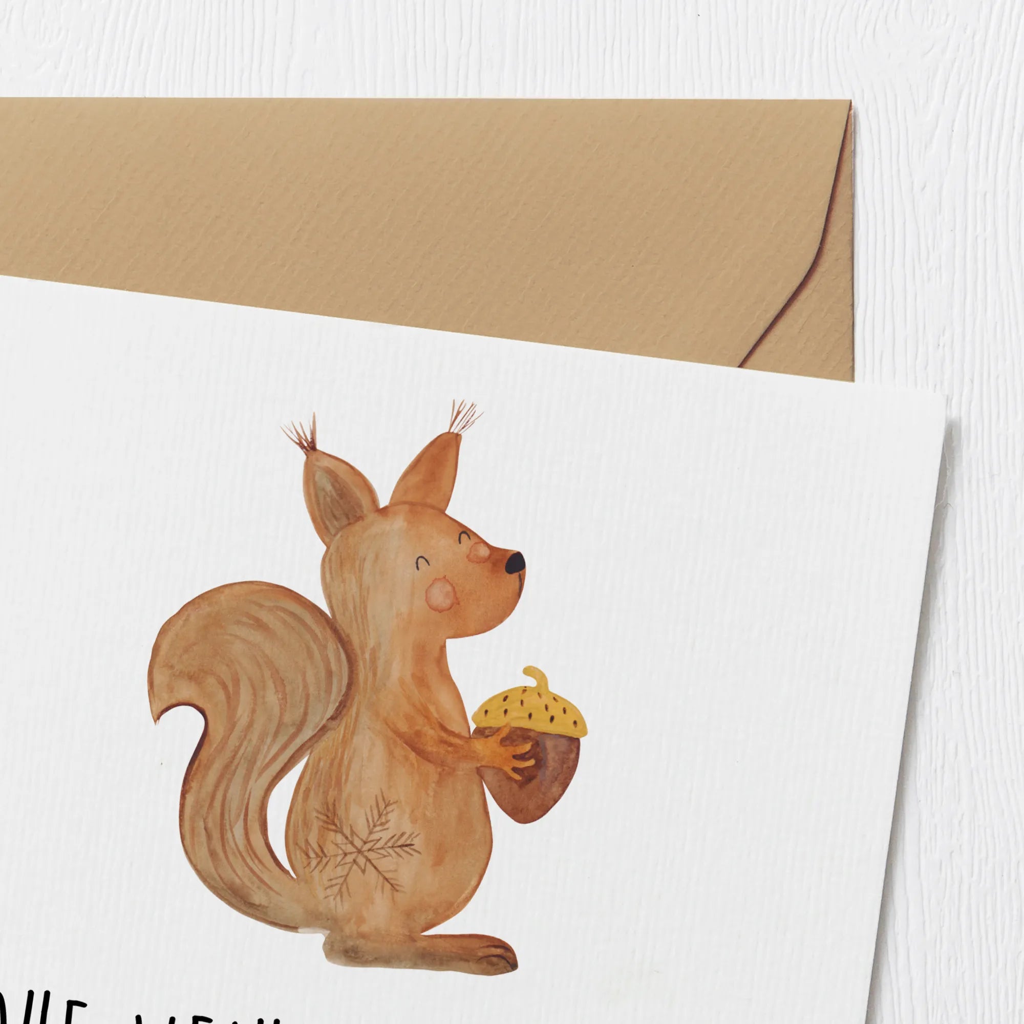 The front of the card showcases our lovable squirrel, standing proud and holding an acorn, ready to bring smiles to the faces of those you love. Its soft, earthy colors and cozy details evoke the essence of winter, while the festive imagery reminds us of the joyous moments this season brings. With its high-gloss finish on the front and back, complemented by a matte inside for easy writing, this card is perfect for your personalized messages.
