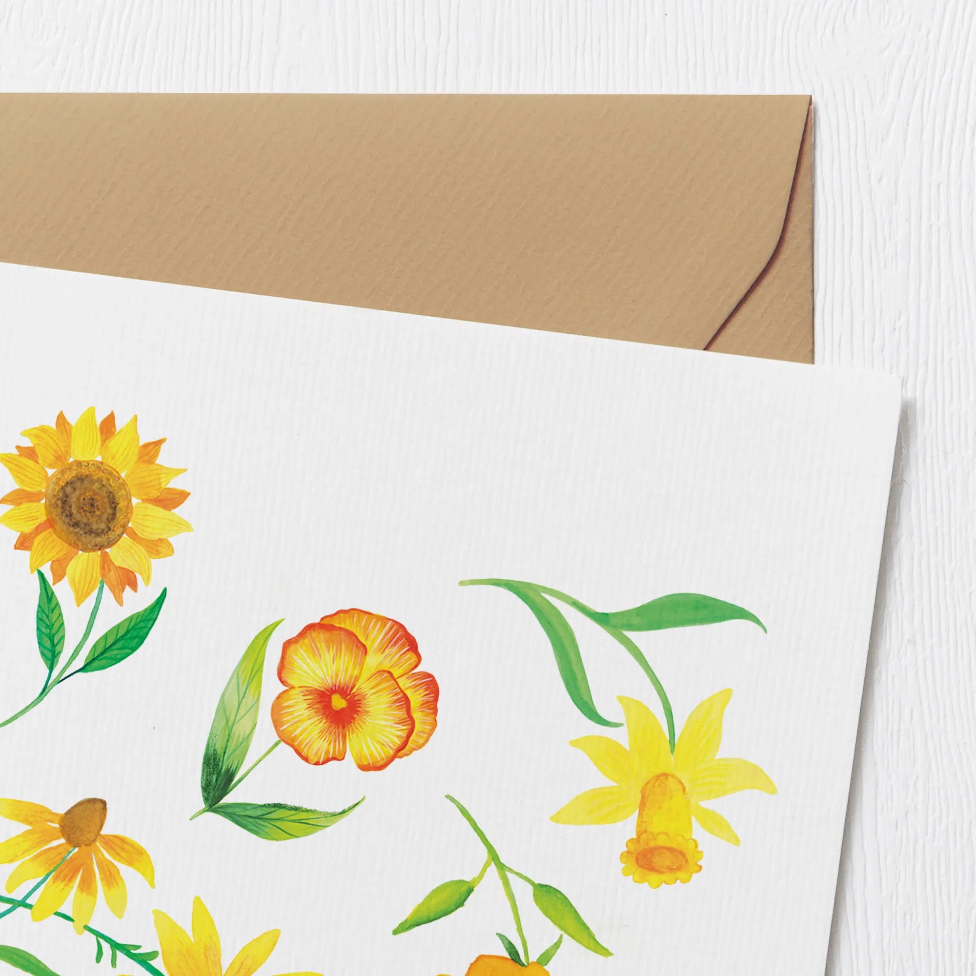 Deluxe Card Sun Salutation Design Glückwunschkarte, Hochwertige Grußkarte, Grußkarte, Klappkarte, Karte, Hochzeitskarte, Einladungskarte, Geburtstagskarte, Hochwertige Klappkarte, Muster, Blumen, Sonnenblume, gelbe Blumen, Osterglocke