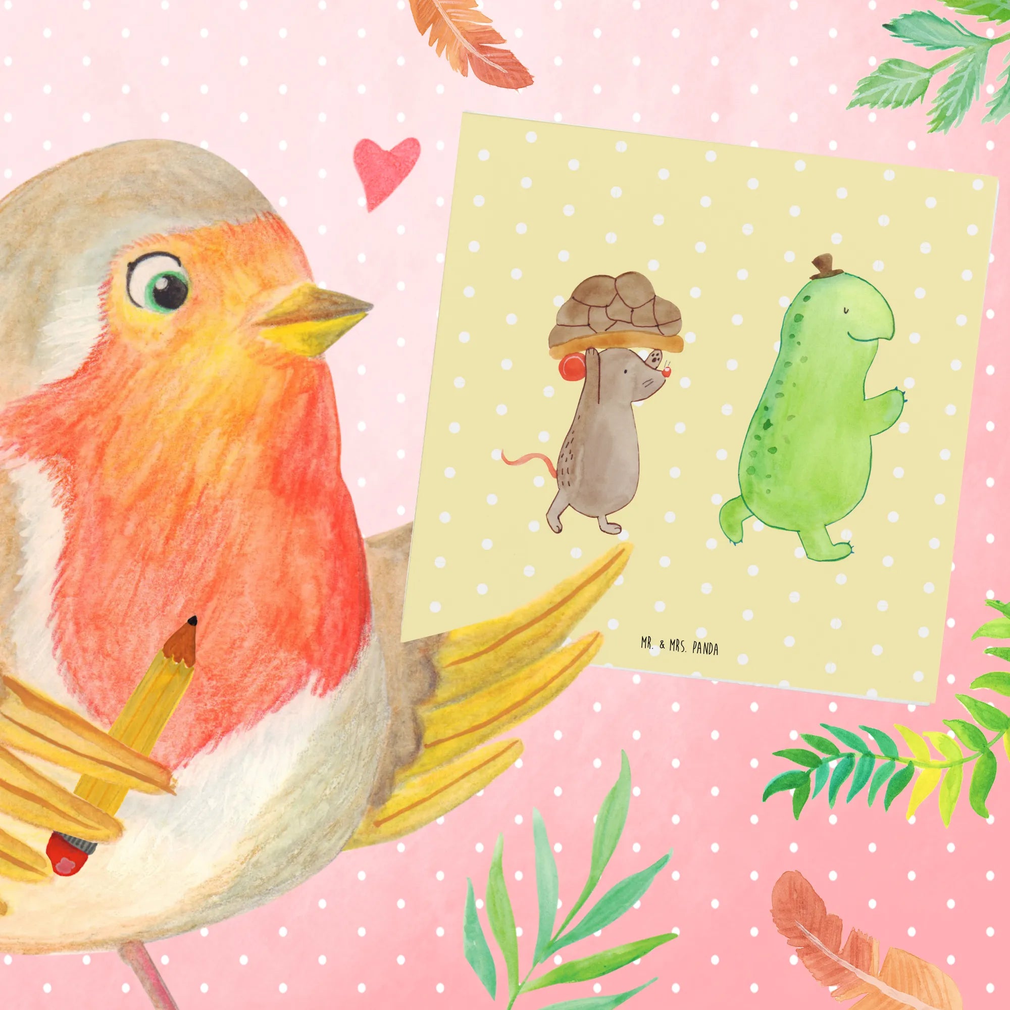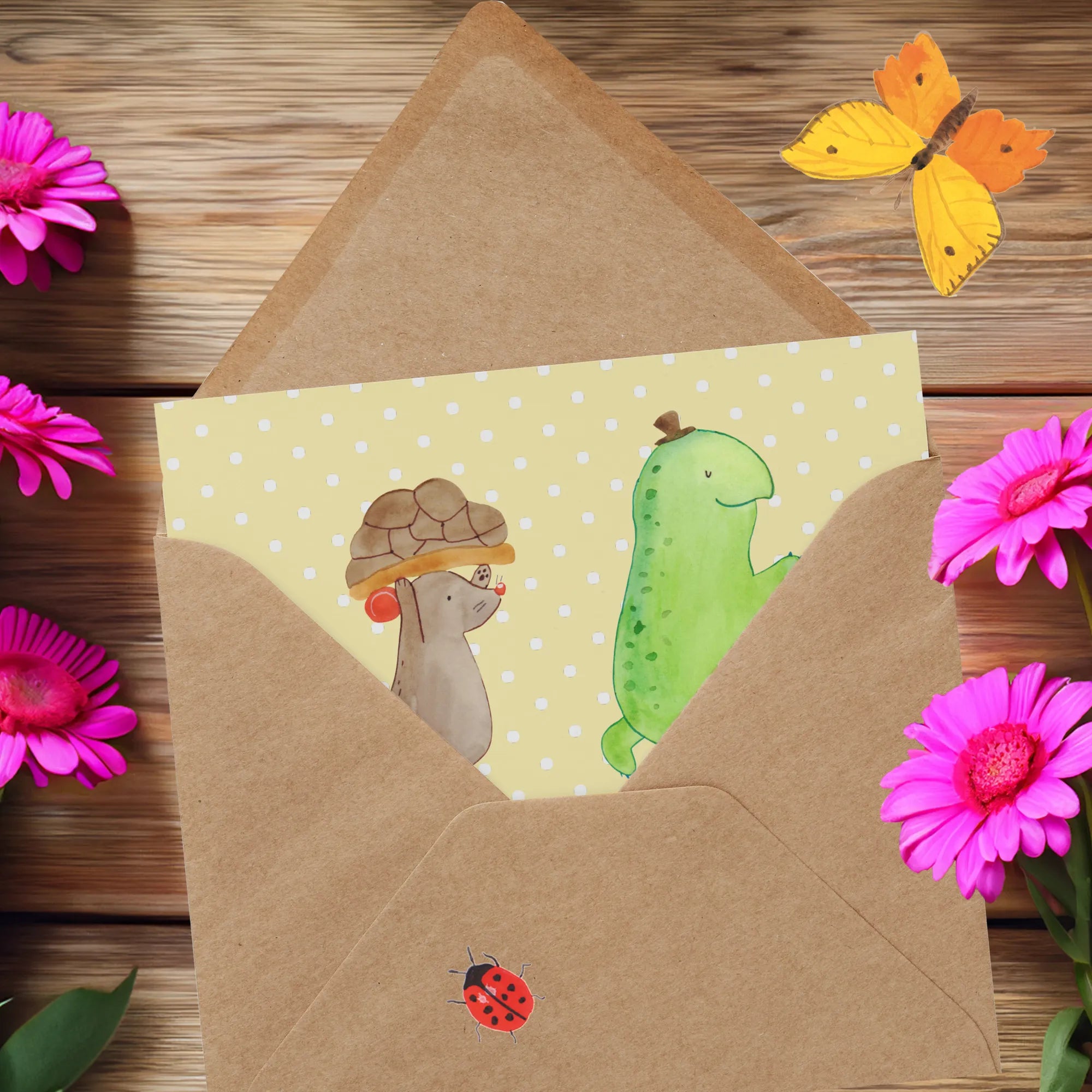 Deluxe Card tortoise Mouse - with a saying - Yellow Pastel