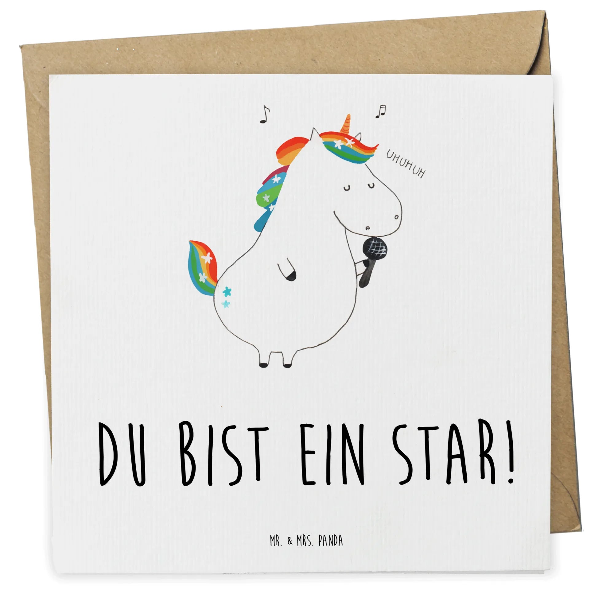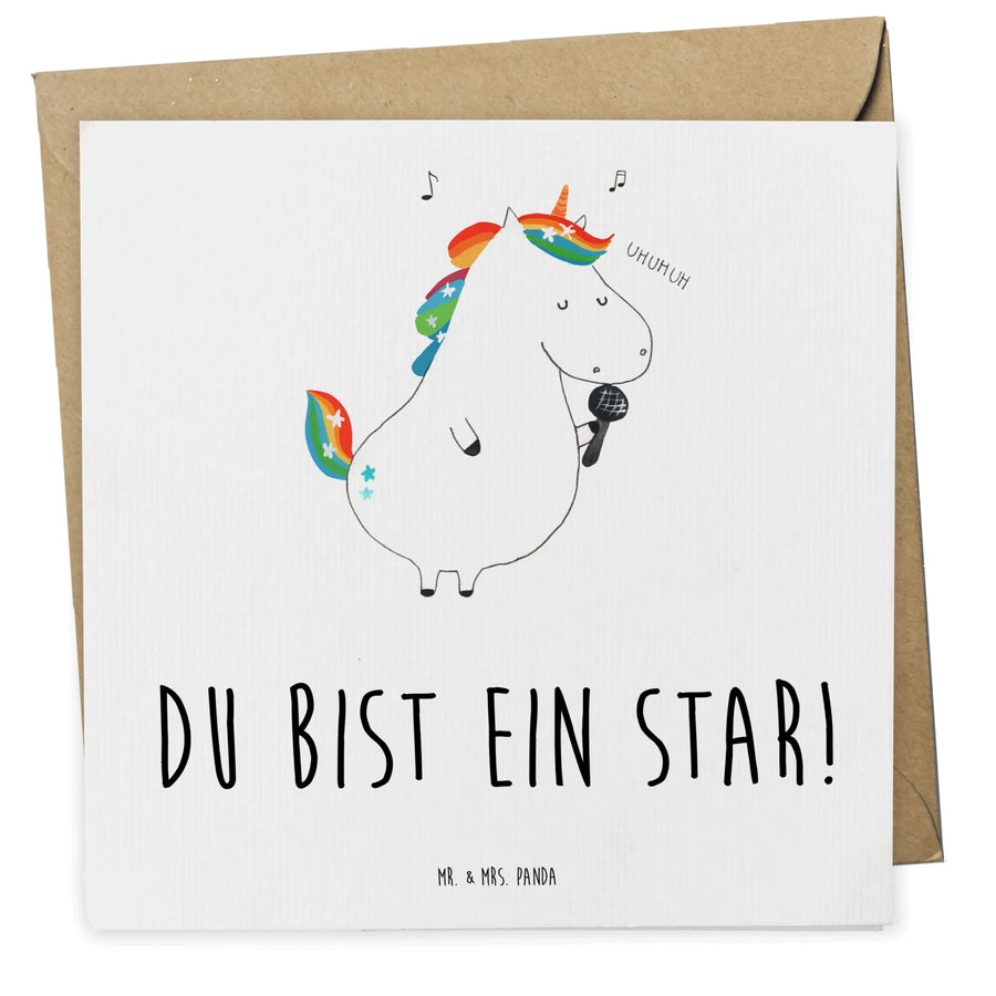Are you looking for the perfect birthday card that stands out and speaks from the heart? Meet our Deluxe Card featuring the delightful Unicorn Singer design from the Mr. & Mrs. Panda Unicorn Collection! With its vibrant, hand-drawn artwork and heartfelt sentiments, this card is not just a card; it's a treasure that your loved ones will cherish. Imagine the joy on their face when they open this beautifully crafted card, adorned with a whimsical unicorn joyfully singing into a microphone, conveying the message "Du bist ein Star!" (You're a star!). It’s more than a card; it’s a celebration in itself!