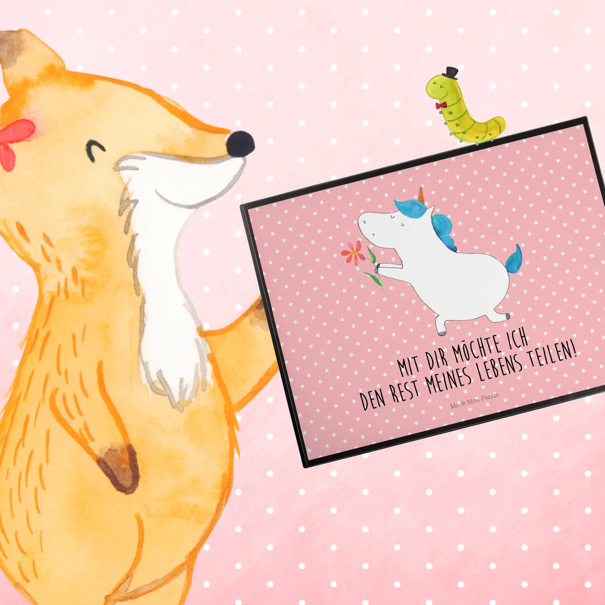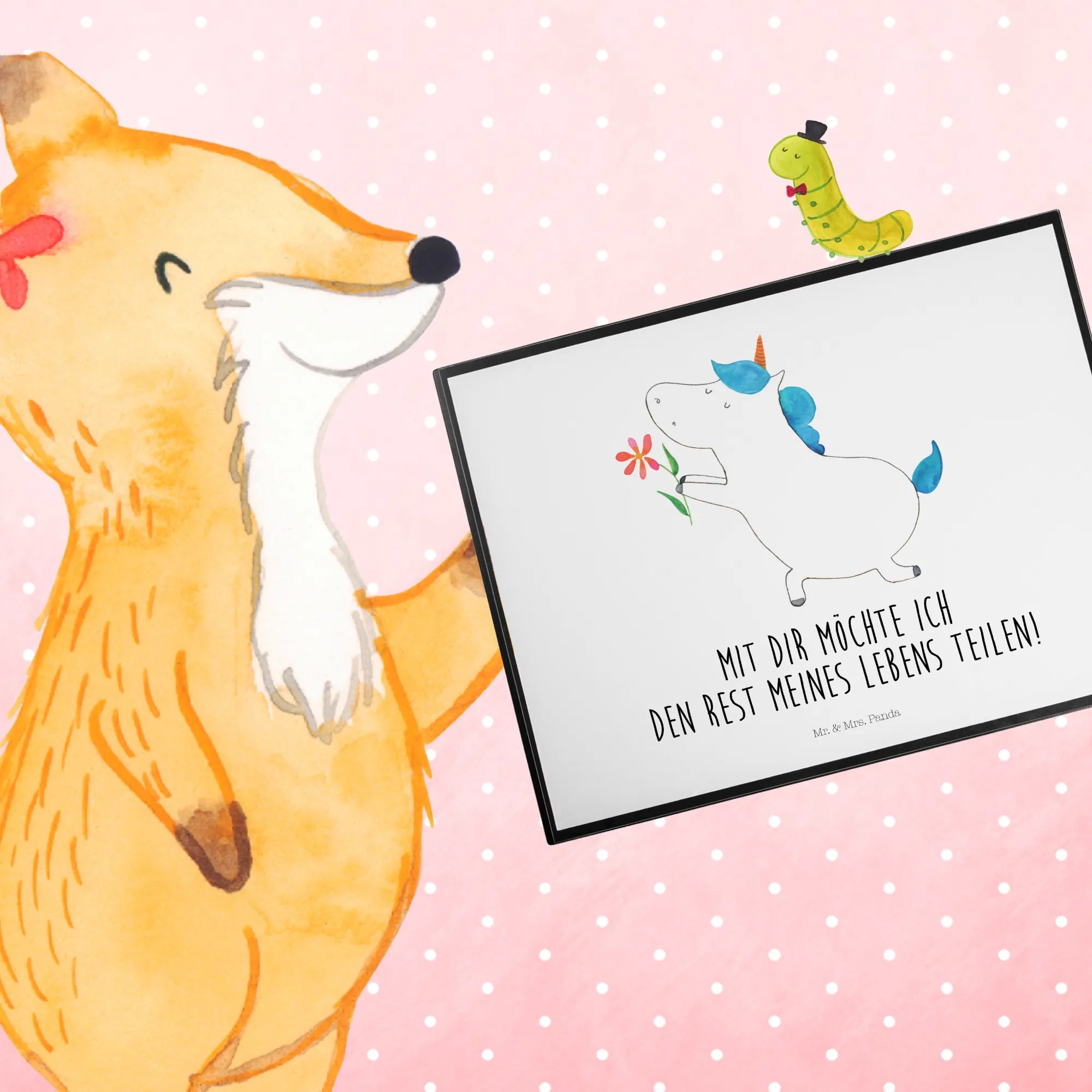 Visualize a whimsical scene where a vibrant unicorn kneels gently, offering a stunning flower, symbolizing love and commitment! This lovely motif eloquently speaks the words, 'Mit dir möchte ich den Rest meines Lebens teilen!' It’s a visual celebration of partnership, the perfect image for expressing your feelings during an engagement or a heartwarming marriage proposal. The unicorn embodies dreams and enchantment, and the flower adds a touch of elegance, making this motif a beautiful reminder of the joys of love. It captures the sweetness of those cherished moments spent with your special someone, where a simple gesture blooms into a promise for the future. Whether it's a keepsake for yourself or a thoughtful gift for someone dear, this motif is a wonderful way to express your wishes for a life forged together, filled with adventure and shared dreams.