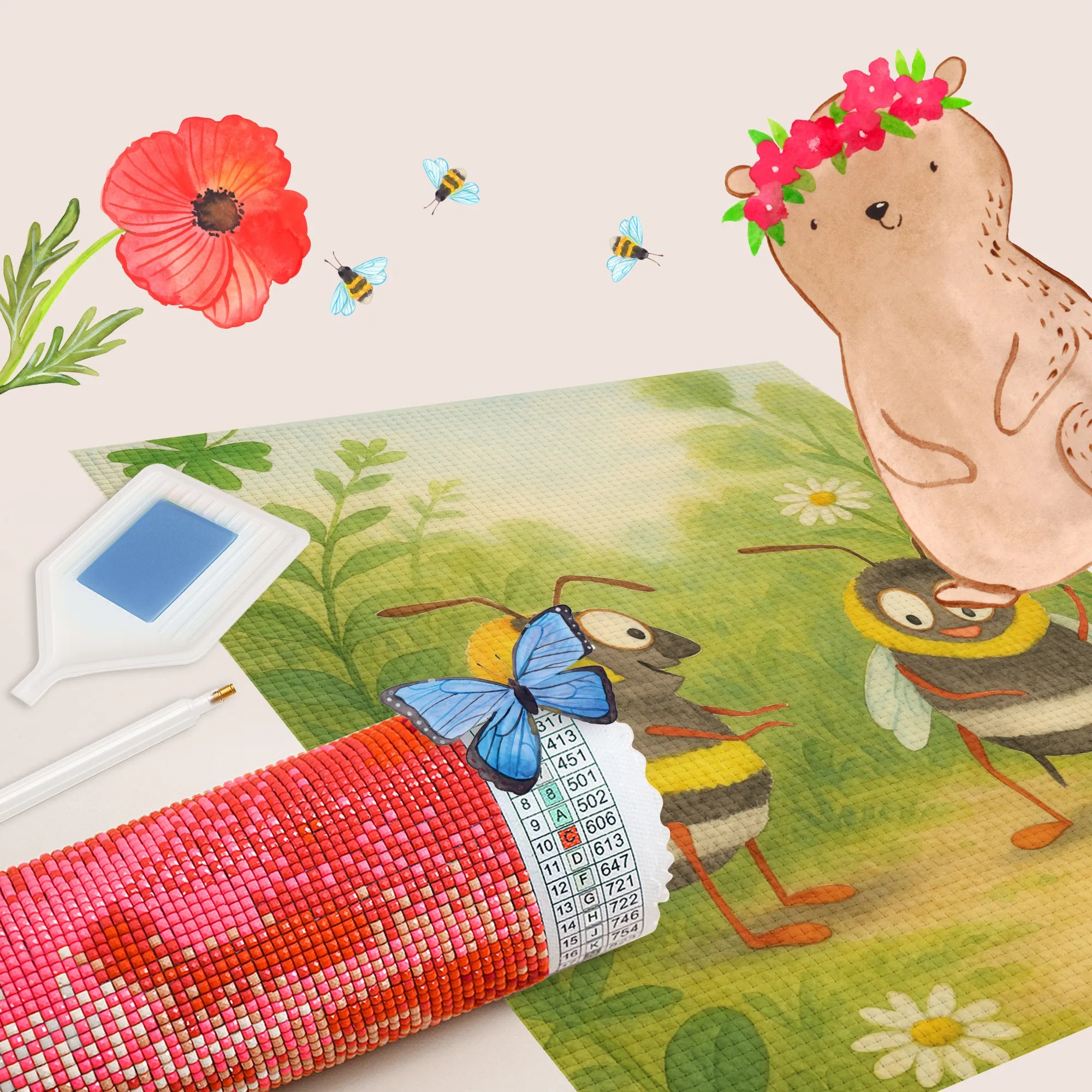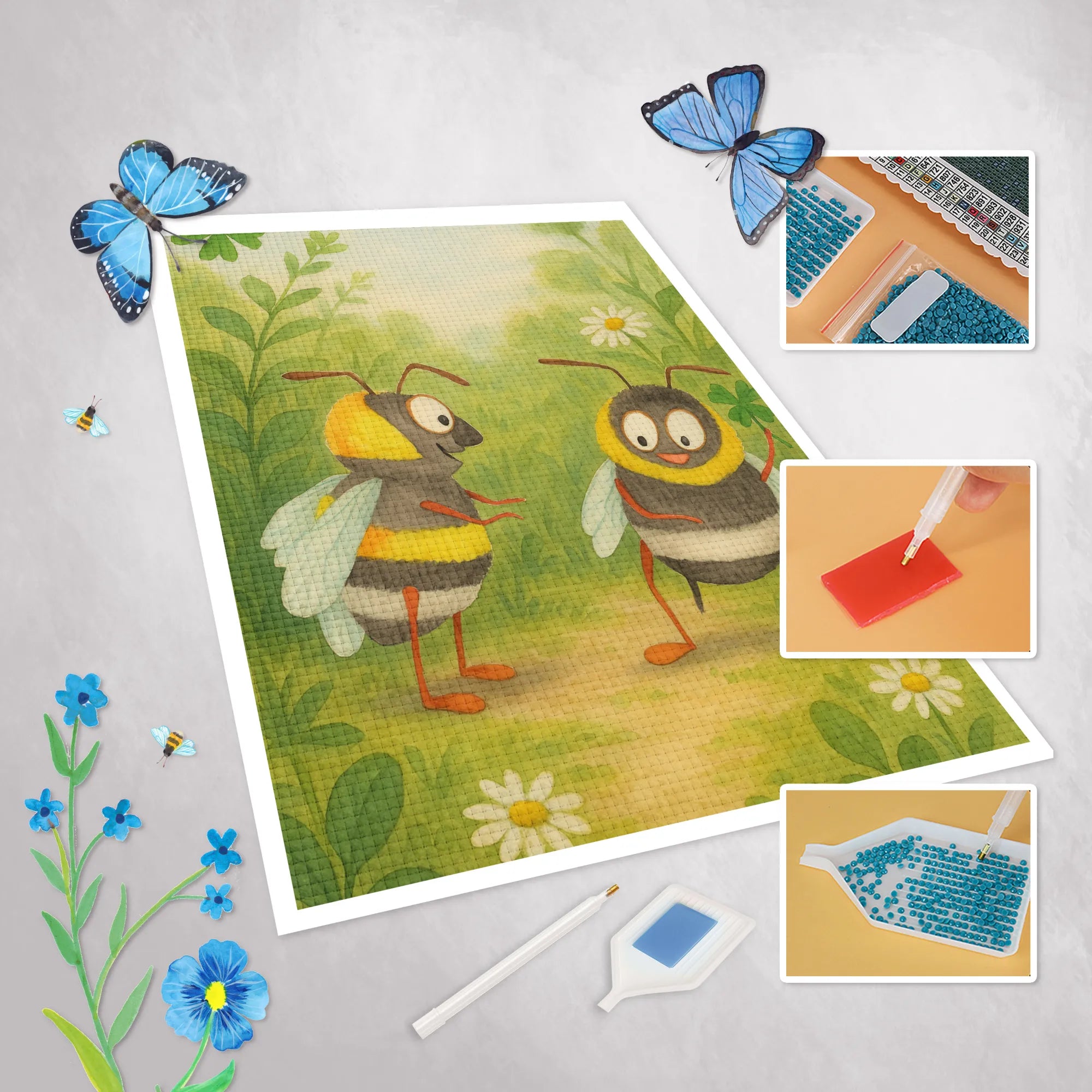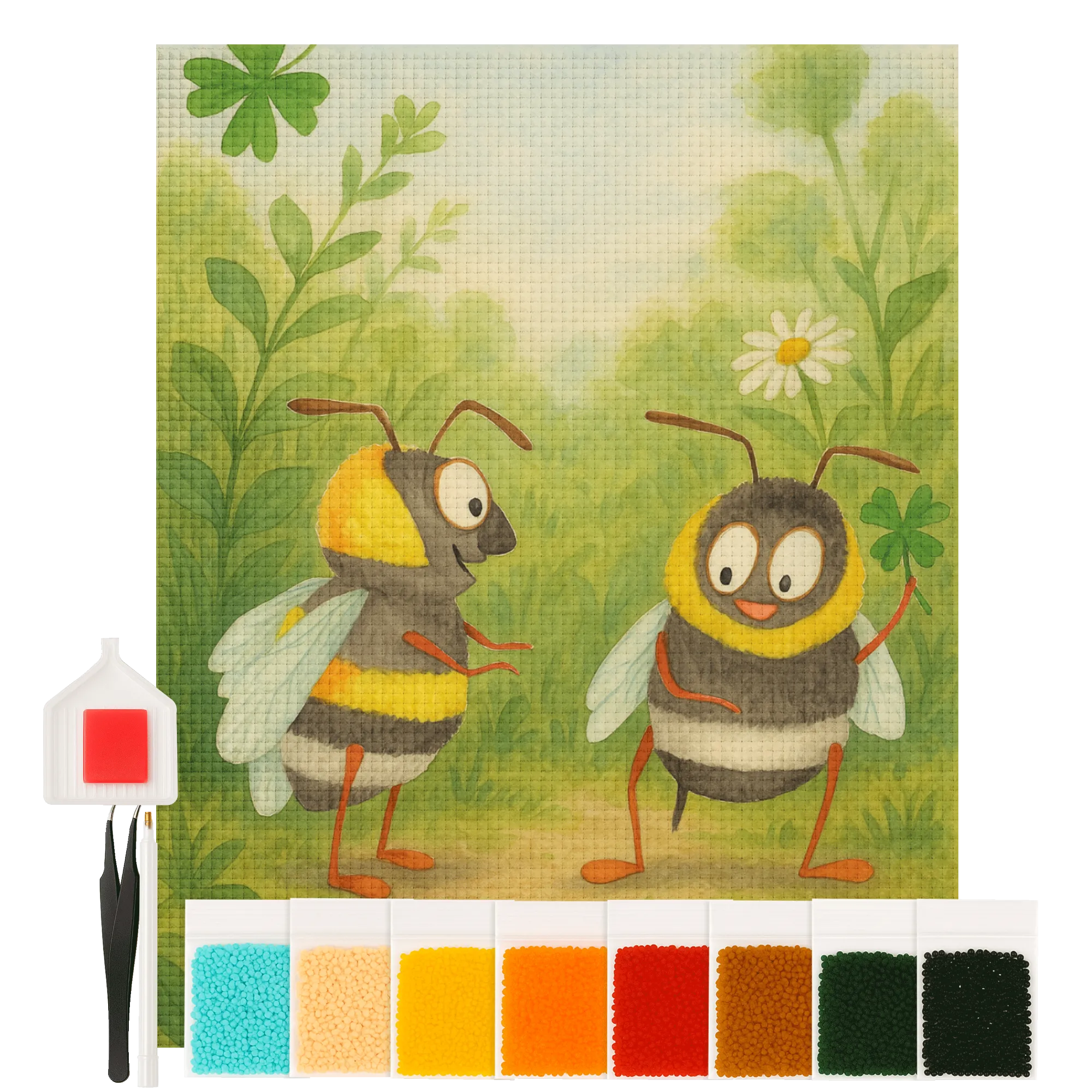 - Complete Set: Canvas (self-adhesive), colored resin diamonds (square), pen, wax, sorting tray & instructions