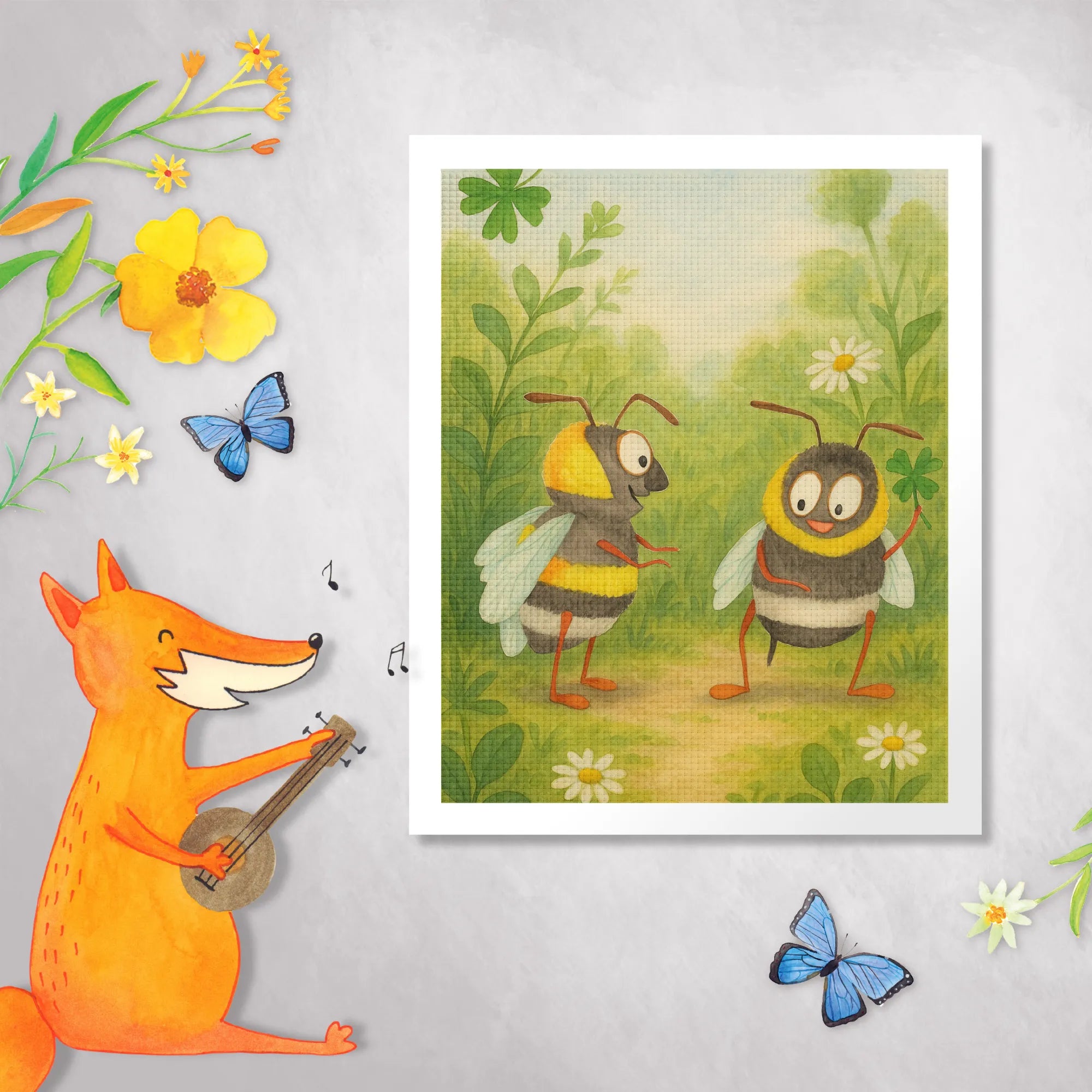 Step into a world of sweetness with these lovely bees! With their bright colors and playful expressions, they tell a story of love and joy. One bee proudly holds a four-leaf clover, a symbol of luck and companionship. This motif is a wonderful choice for a Valentine's Day gift for women or to express admiration for your partner. Designed with warmth in mind, these cheerful bees embody connection, making them perfect for anniversaries, weddings, or simply as a delightful gift for your husband or boyfriend. They remind us that love can be found in the simplest of things, much like how turtles show their affection. Perfect for those who appreciate art that brings positivity into their lives.