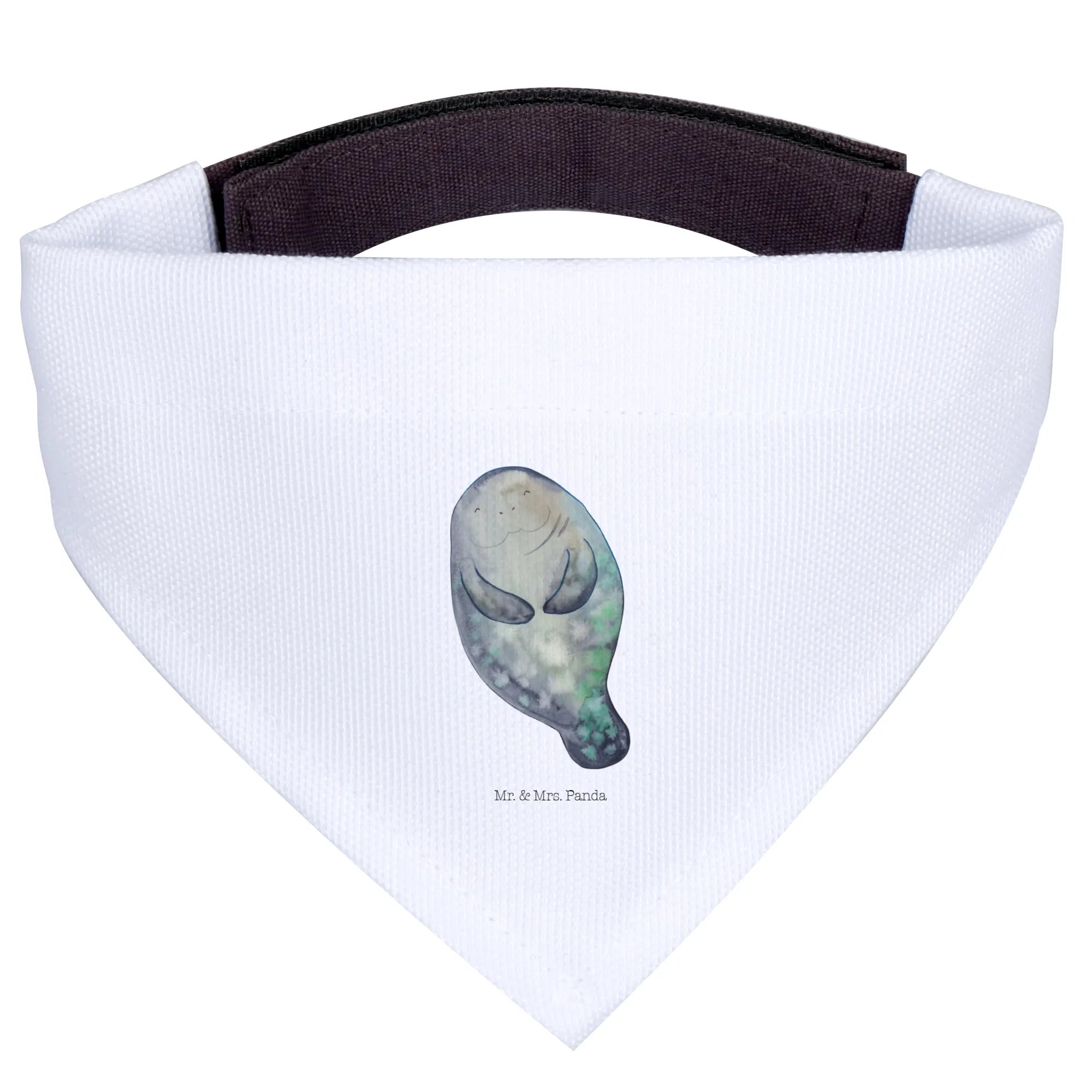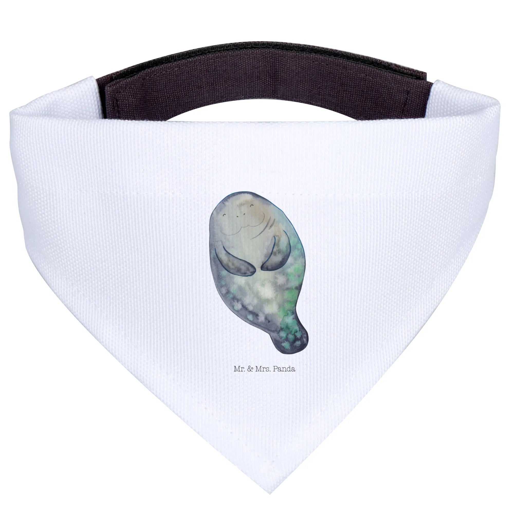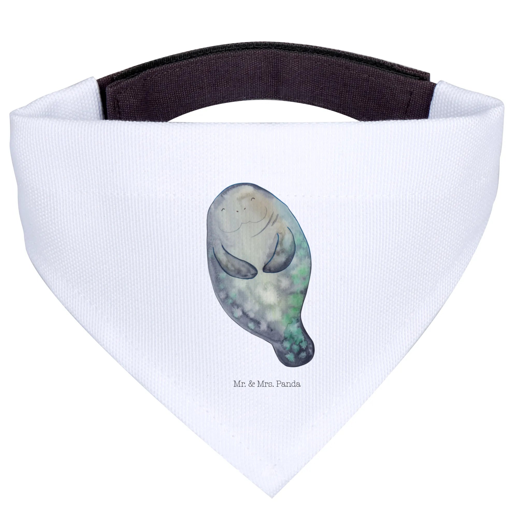 Dog neckerchief manatee happy - Dog neck scarf M - with saying - White