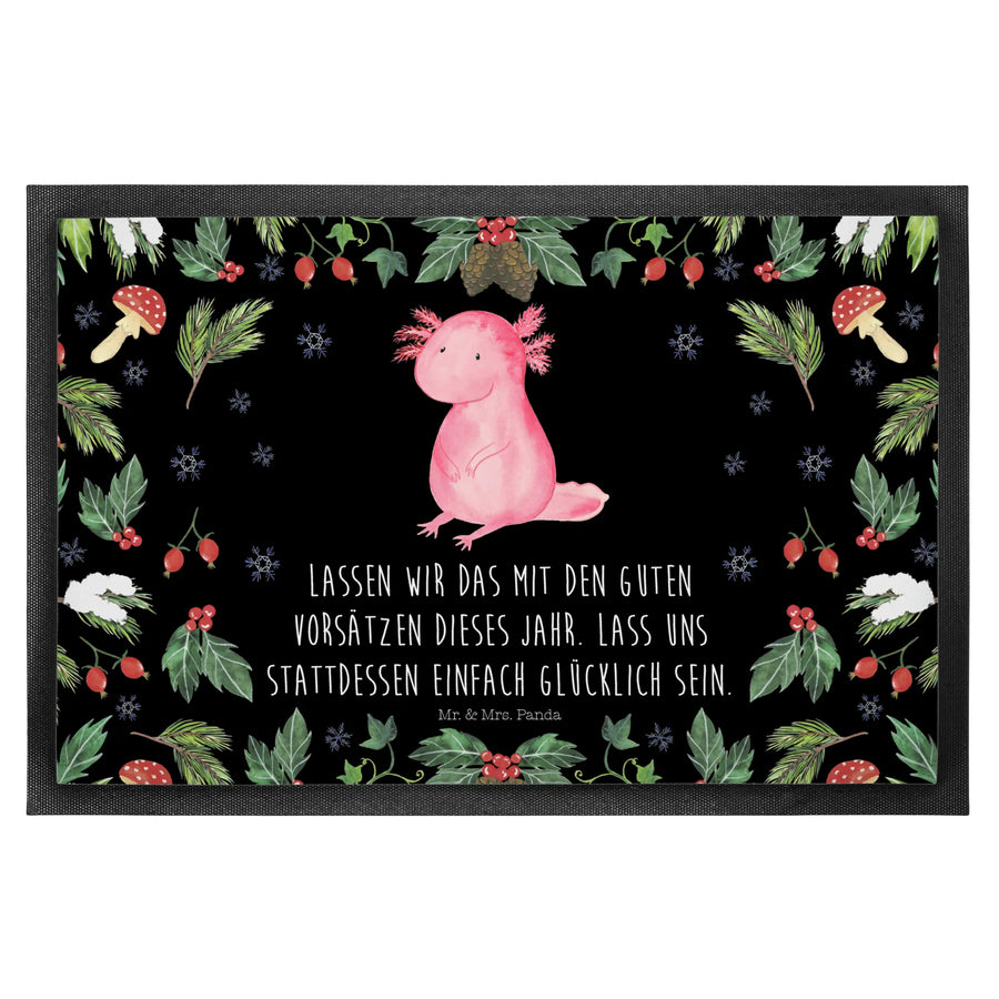 Doormat axolotl Happy - 50 x 75 cm - with saying - Black