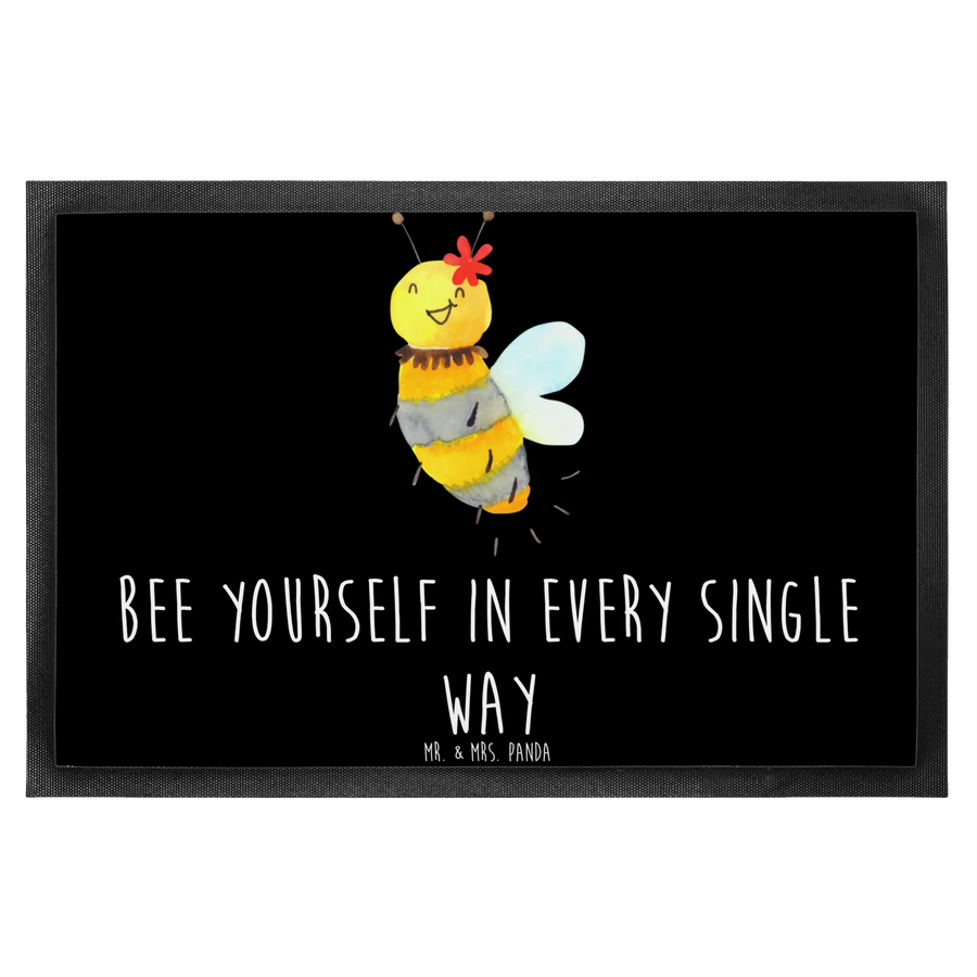 Doormat bee flower - 60 x 90 cm - with saying - Black