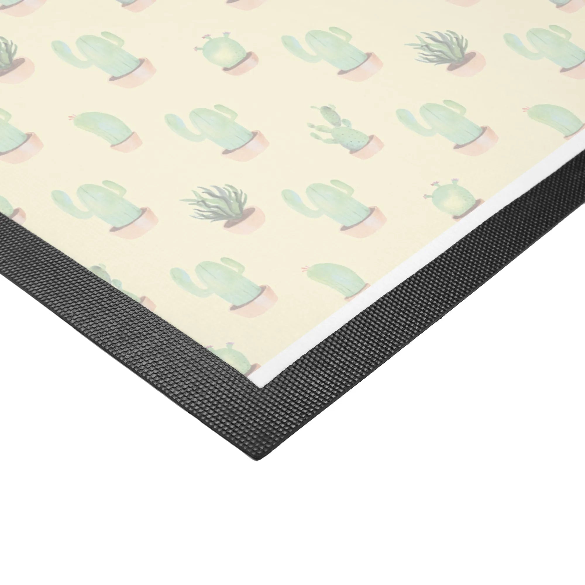Introducing the delightful Cactus Happy Doormat from the Mr. & Mrs. Panda Cactus Collection! This charming doormat is not just a fabulous way to keep your home clean; it’s also a sprinkle of joy for every guest that comes through your door. Hand-drawn by the talented Mrs. Panda, this design features cheerful cacti wearing smiling faces in beautiful watercolor splashes, preparing your home to give a warm welcome every time.