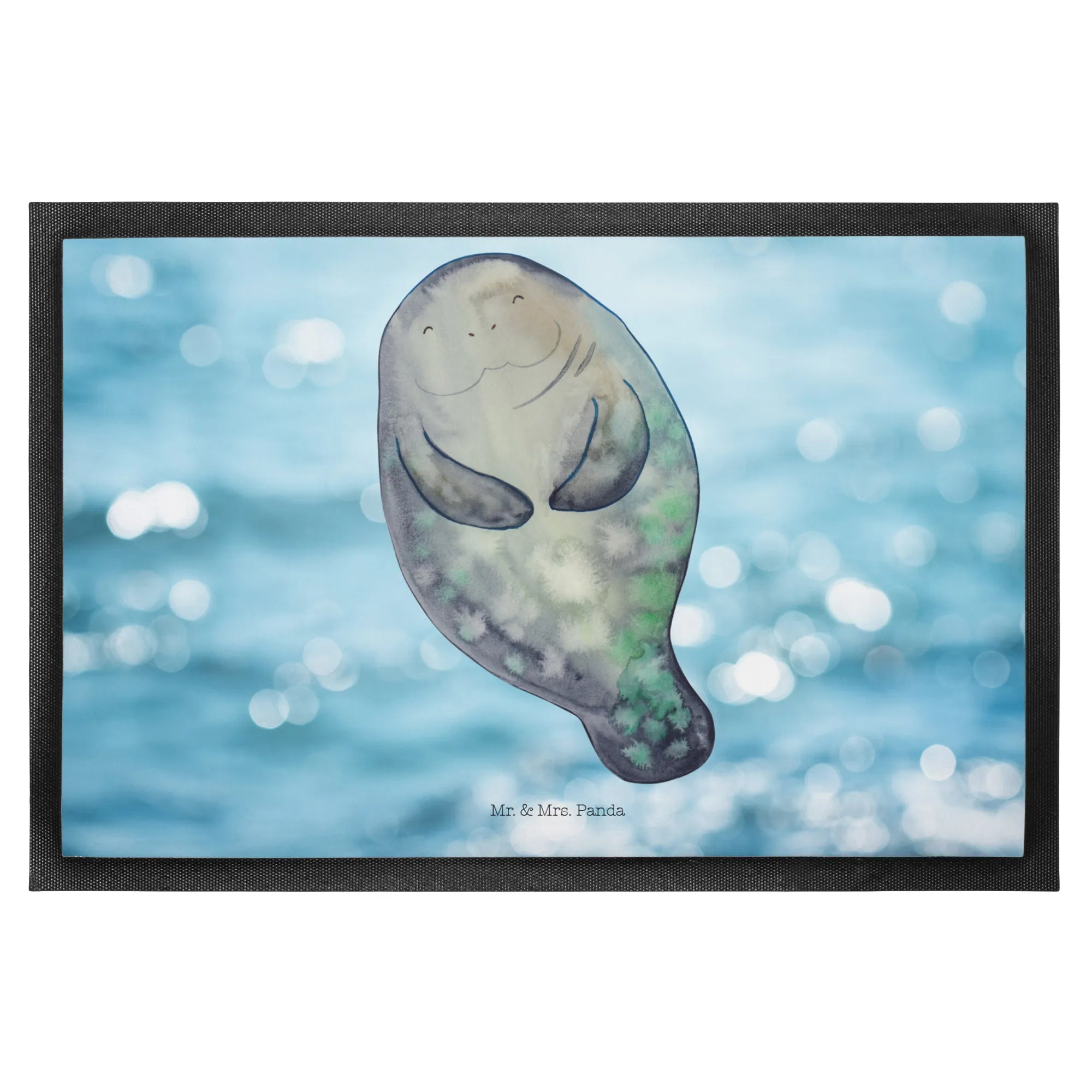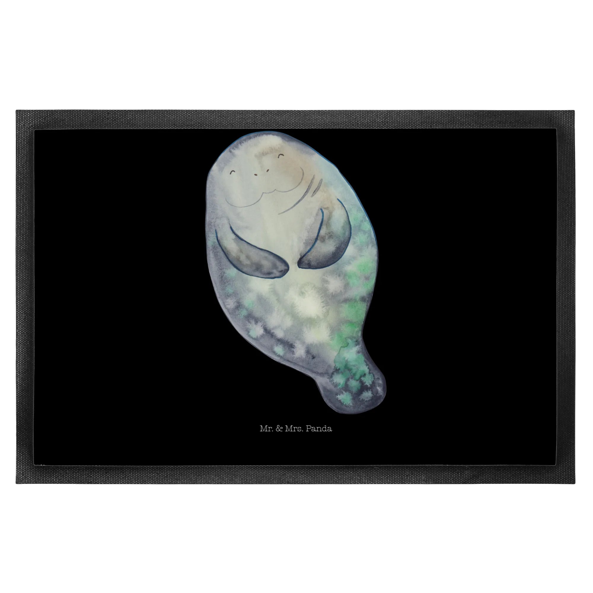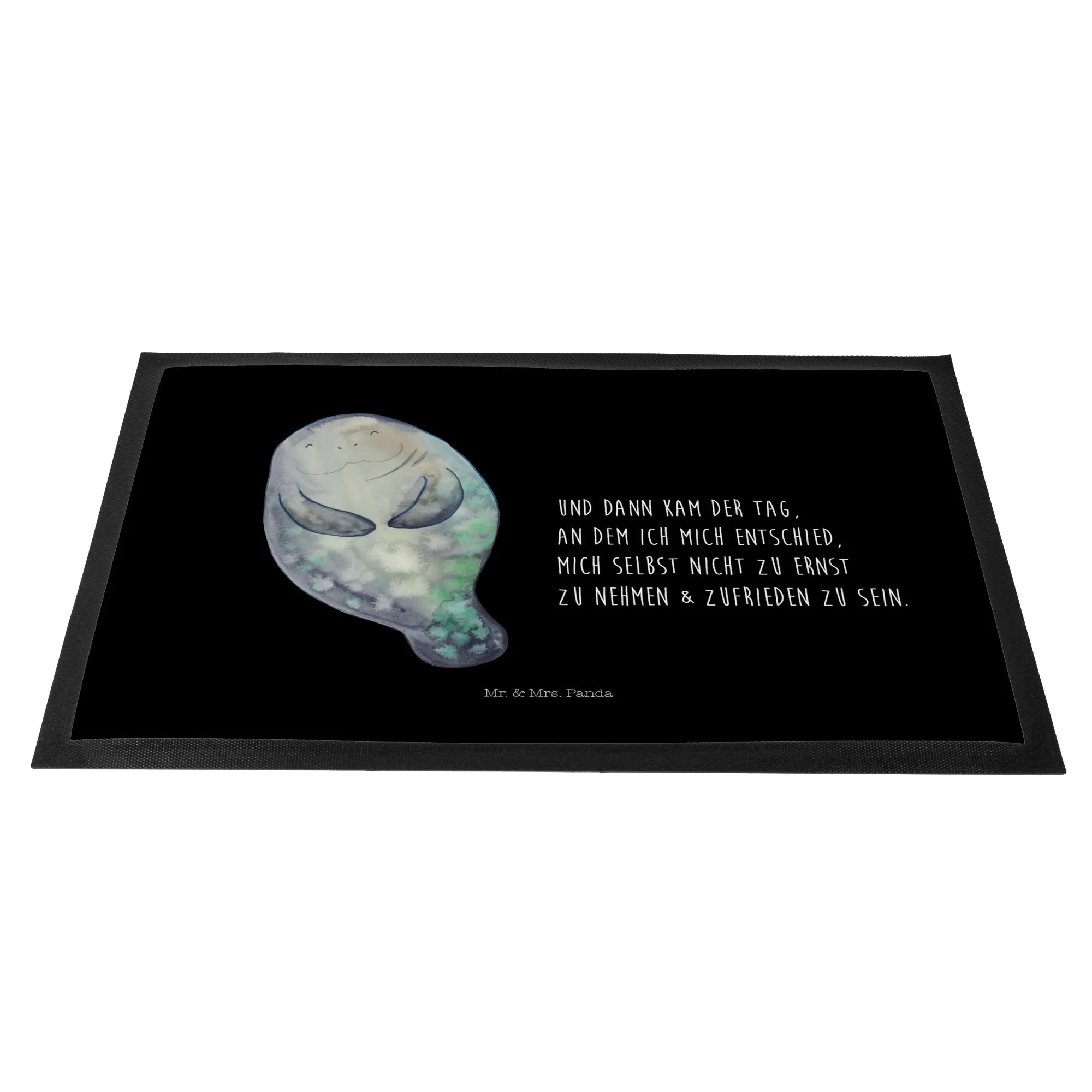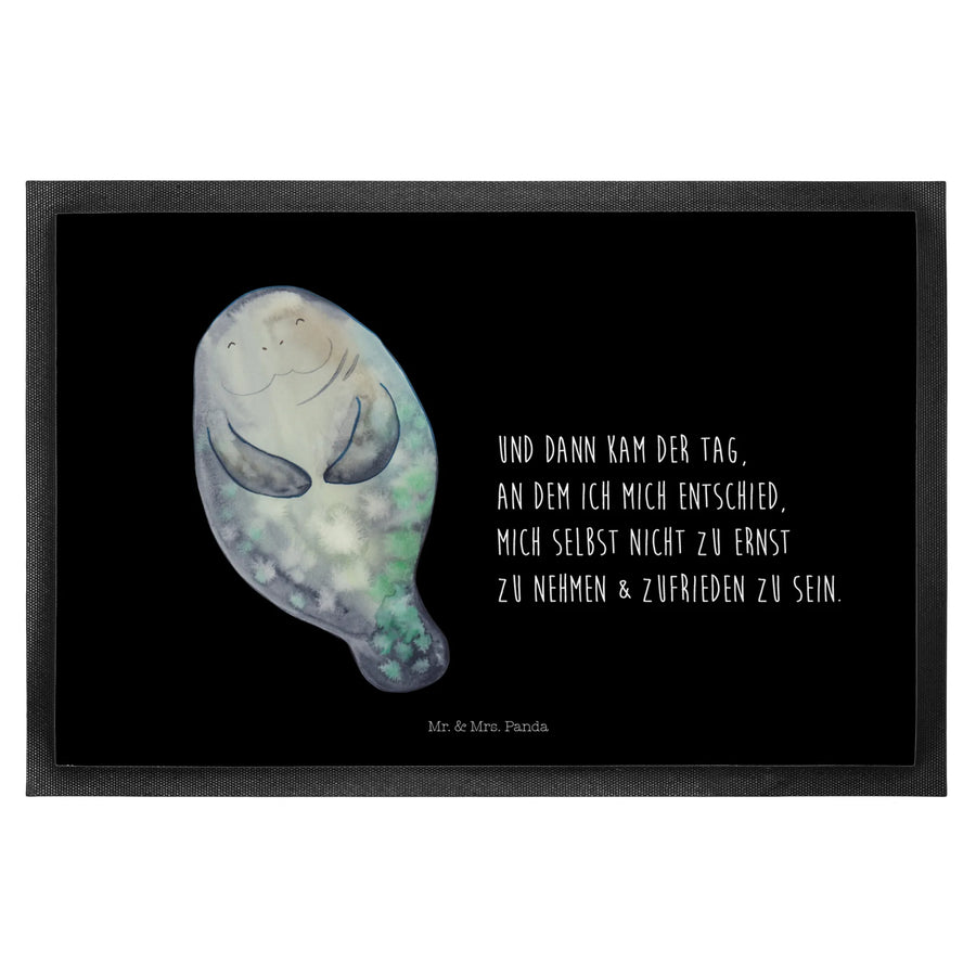 Doormat manatee happy - 60 x 90 cm - with a saying - Black