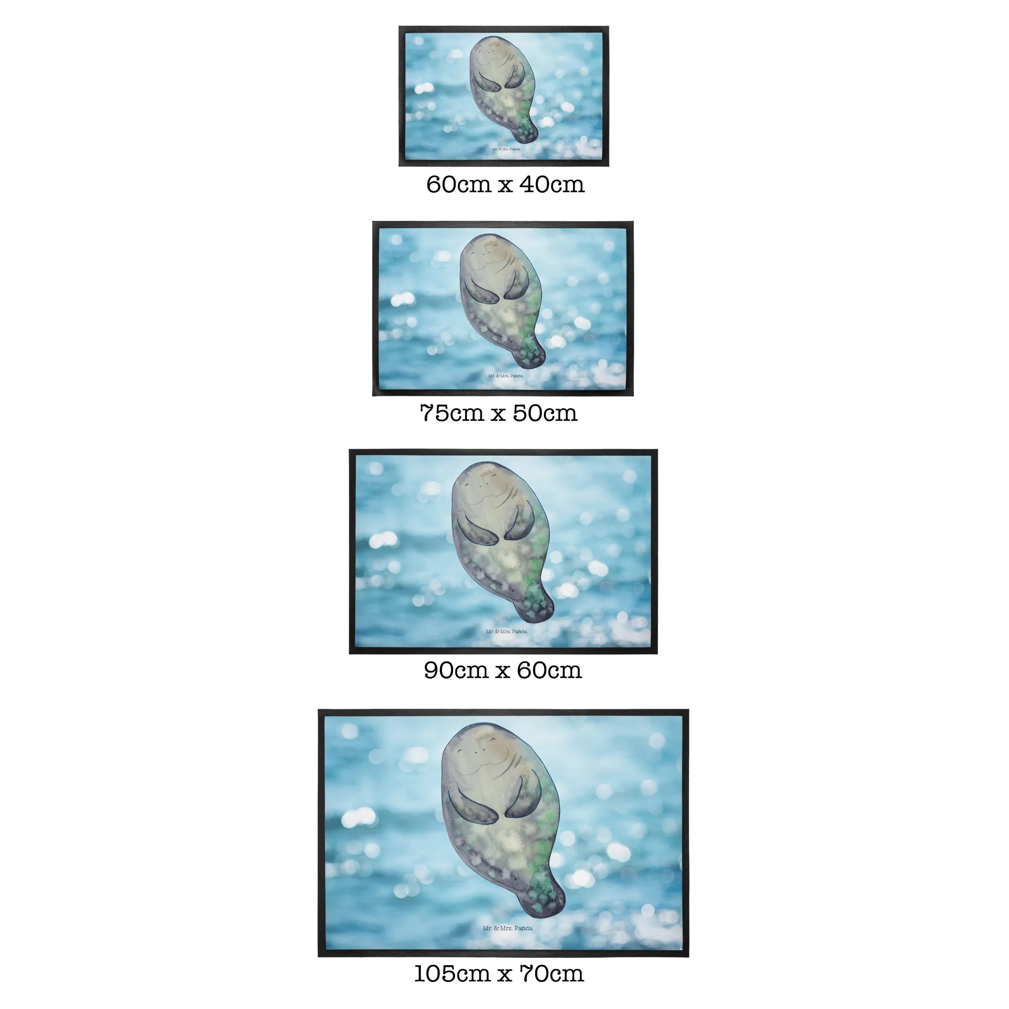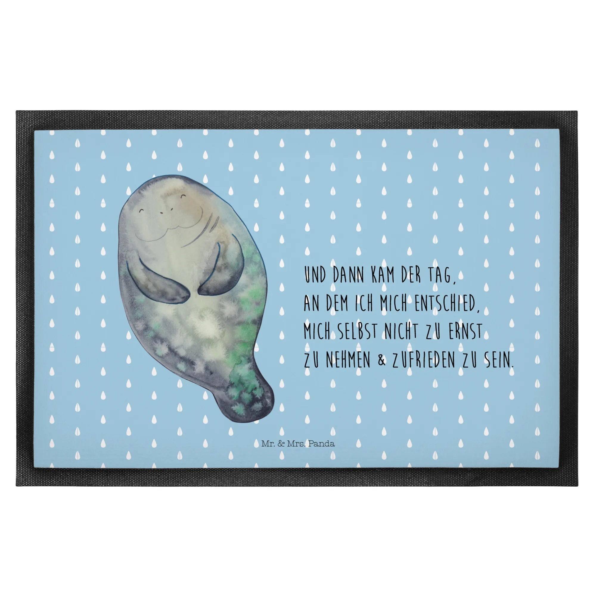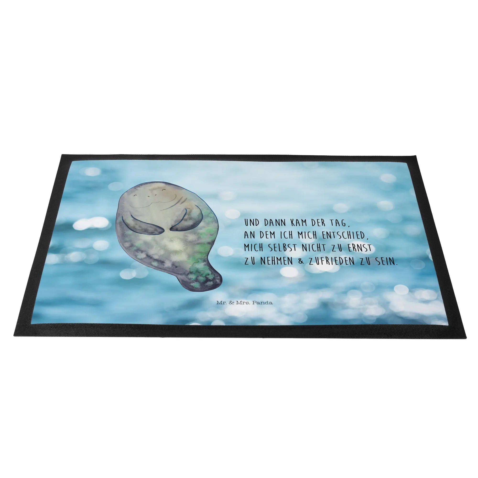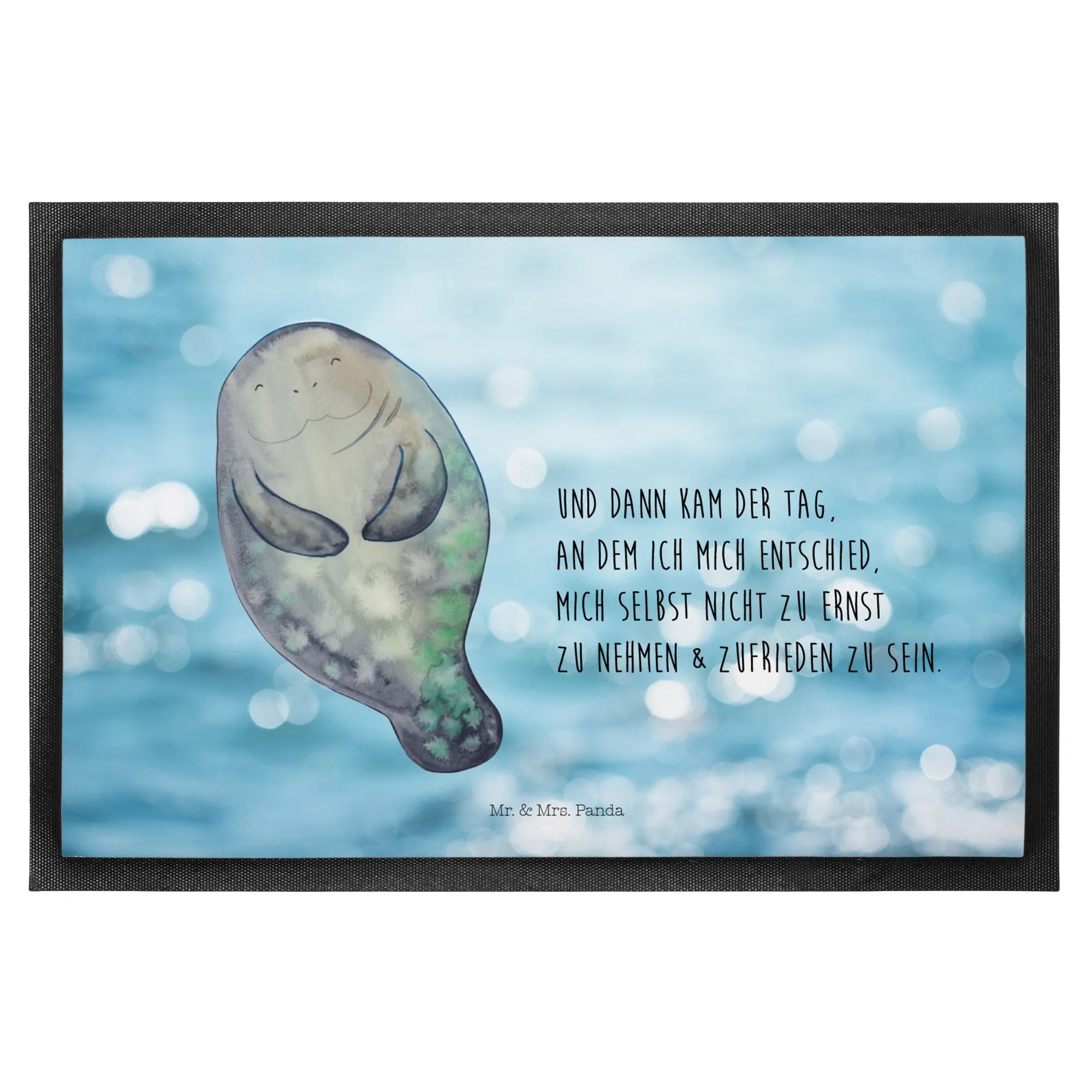 Doormat manatee happy - 60 x 90 cm - with a saying - Black