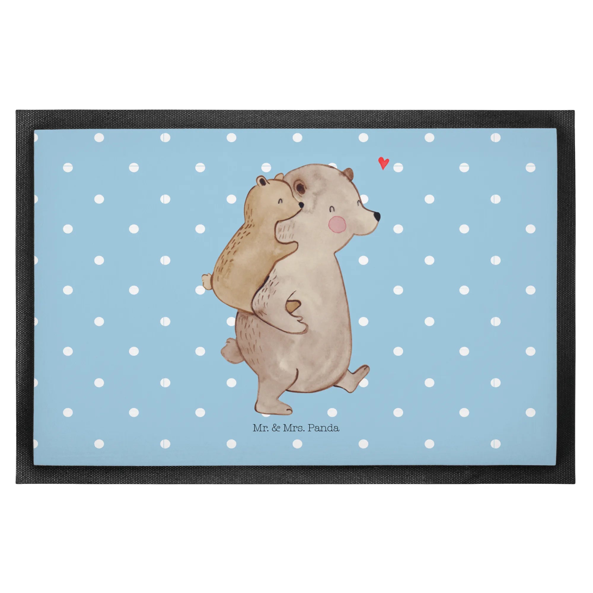 Featuring the adorable motif of a Papa Bear carrying a smaller bear, this design captures the essence of kinship and warmth. The loving expressions of the bears evoke a sense of togetherness, making this doormat a perfect addition to any household that values family bonds. It conveys a message of love that is beautifully printed on high-quality durable material, and the soft blue pastel color adds a gentle touch that complements any home decor.