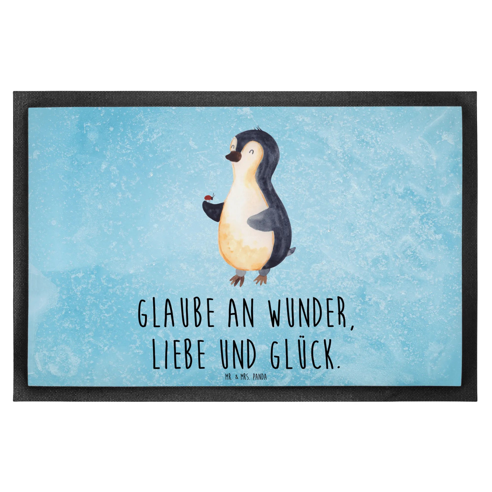 Doormat Penguin ladybug - 60 x 90 cm - with a saying - Ice blue