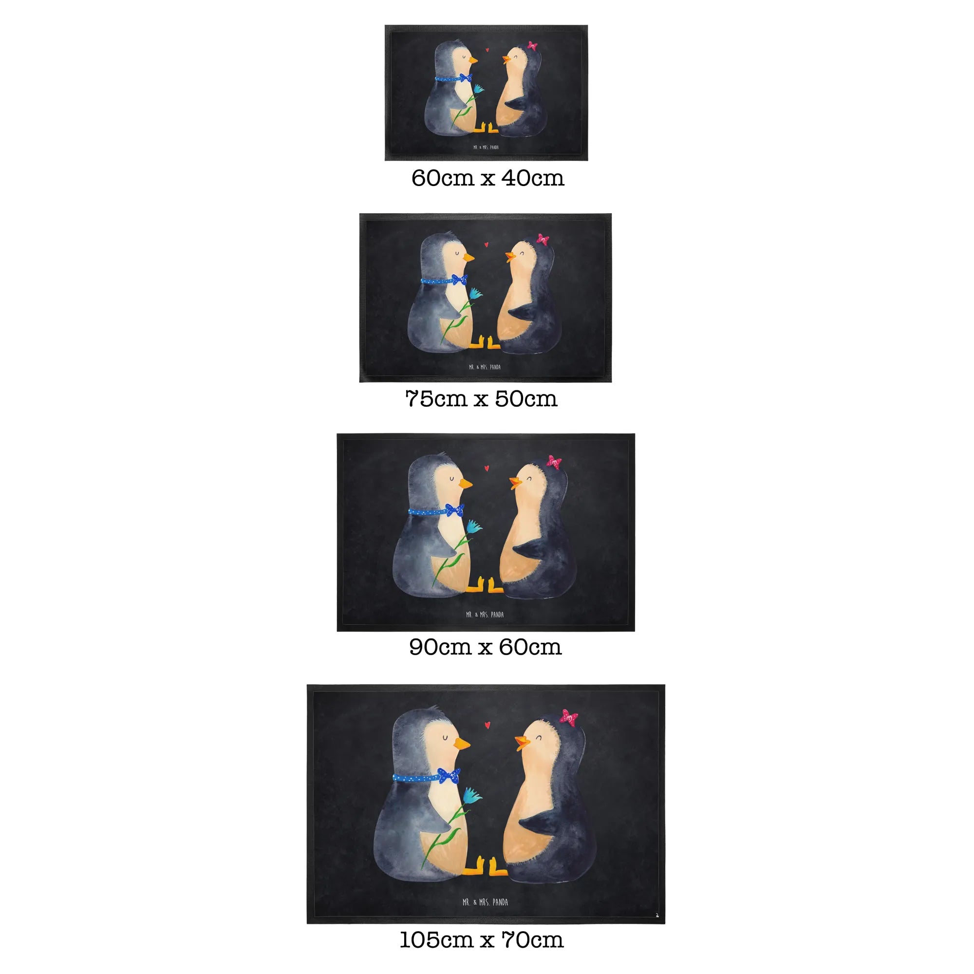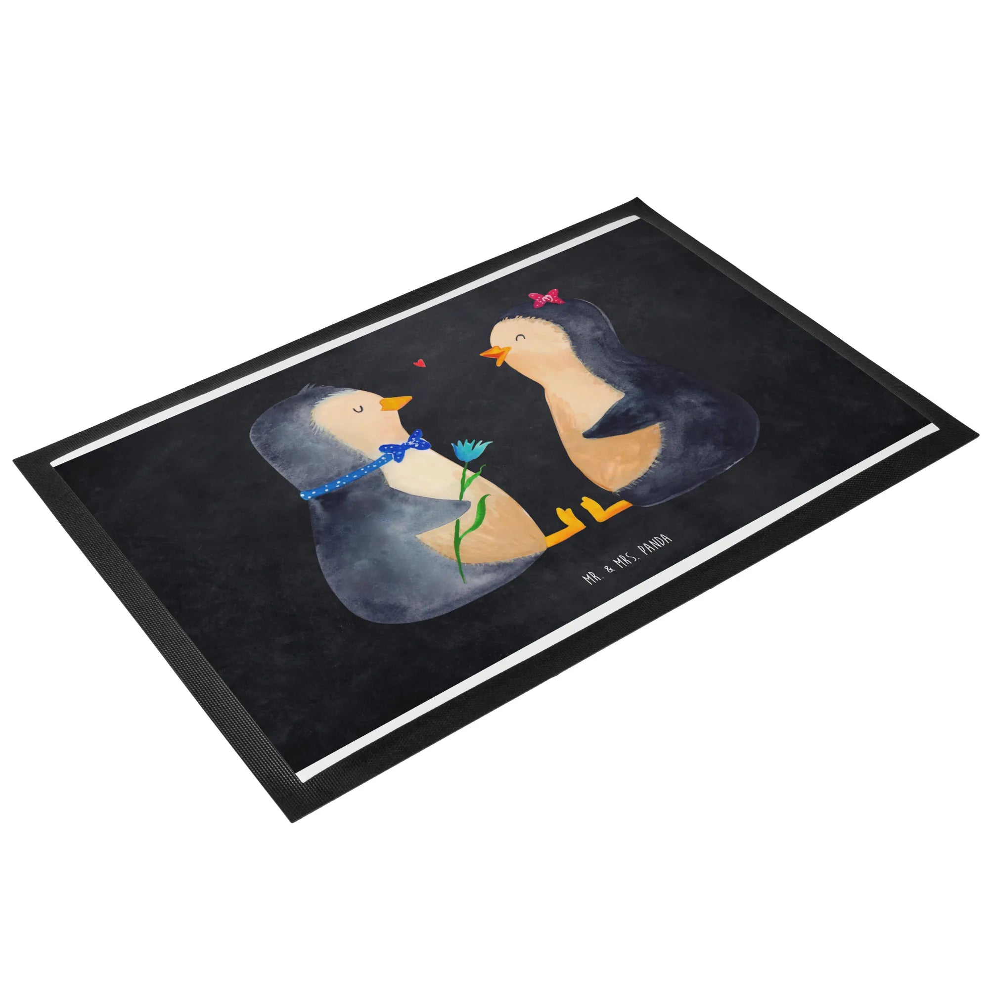 Doormat Penguin pair - 60 x 90 cm - with a saying - Black